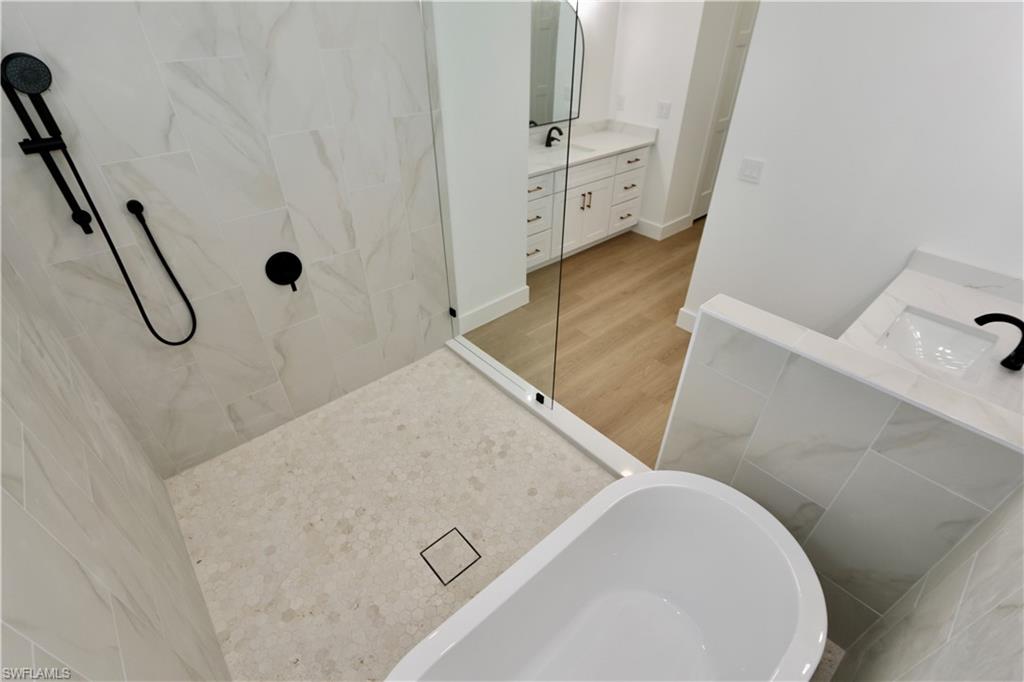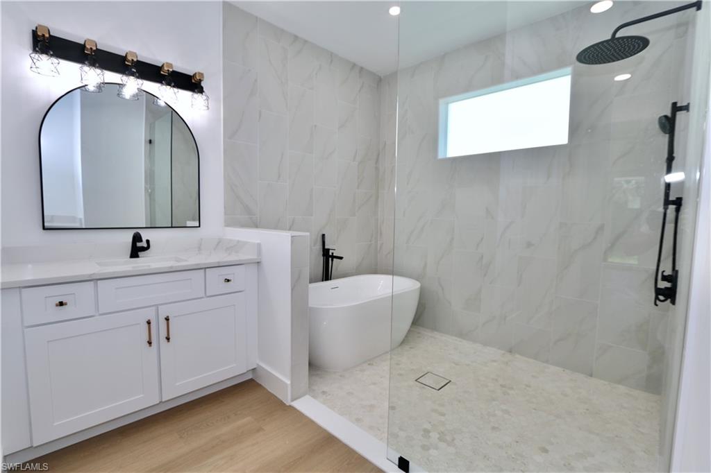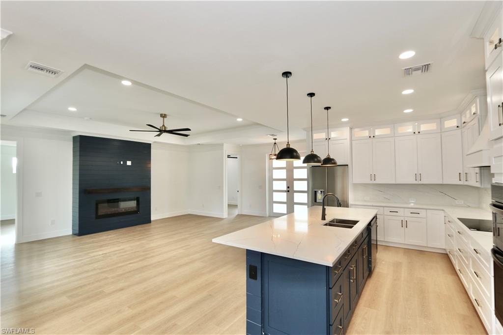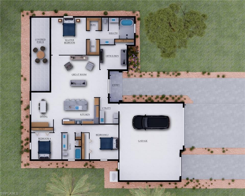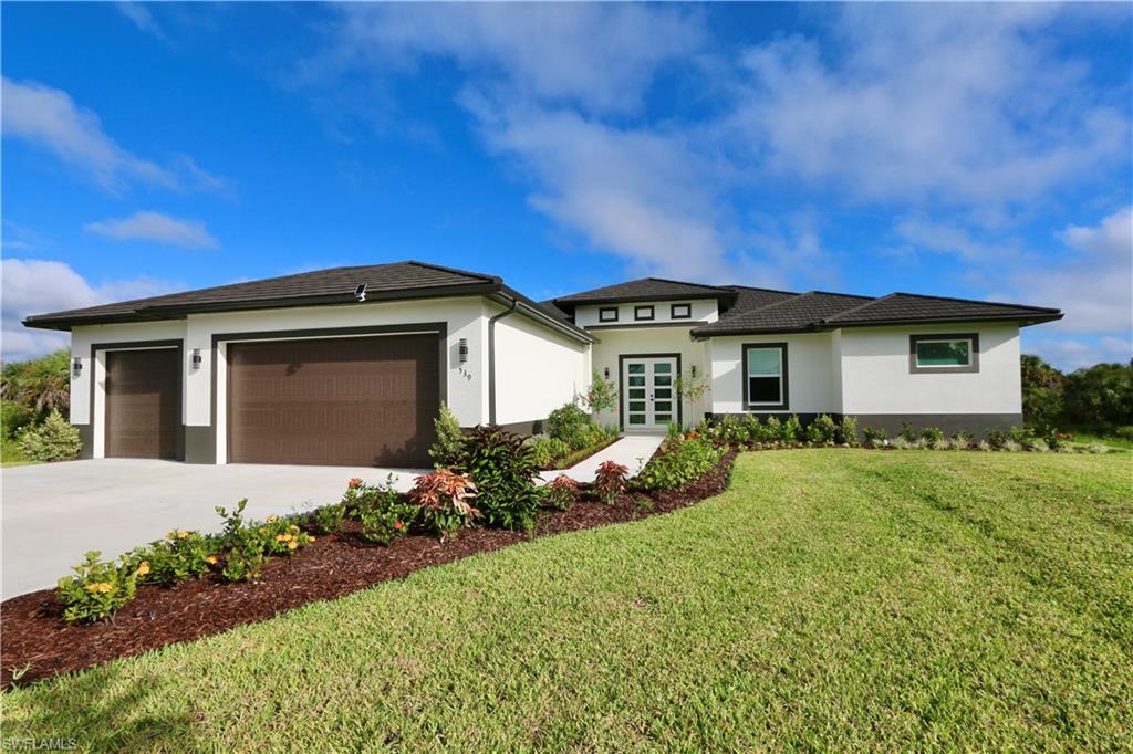 Stunning New Construction Home on 2.27 Acres | 4 Bed | 2 Bath | 3-Car Garage ‘Stone Coated shaker style’ Metal Tile Roof. Welcome to your dream home—where modern design meets thoughtful luxury! This brand-new 4-bedroom, 2-bathroom residence sits on a peaceful 2.27-acre lot near the end of a quiet dead-end street, offering both privacy and convenience. Step inside and be captivated by the spacious open floor plan, adorned with elegant crown molding, tray ceilings, and beautiful COREtec luxury vinyl plank flooring throughout—professionally installed by Floor Miesters for lasting quality and style. The huge modern kitchen is a chef’s dream, complete with black stainless-steel appliances, a dry bar with wine fridge, and additional custom cabinetry in the dining area—perfect for entertaining. The centerpiece living area features an electric fireplace, adding a cozy and contemporary touch. Retreat to the luxurious main suite, where you'll find a spa-like wet room with a soaking tub and walk-in shower, and a custom wood closet organizer system that brings both beauty and functionality. French doors open up to your private backyard, where you'll enjoy ample space, drip tube irrigation, and a full sprinkler system to keep your planting beds and lawn lush year-round. The home also includes a whole-house reverse osmosis (RO) water system for the purest water possible. With an oversize 3-car garage, high-end finishes, and countless custom upgrades, this is not your average builder-grade home. Every detail has been thoughtfully chosen to provide style, comfort, and uniqueness. Located in Golden Gate Estates, you'll relish the tranquility of rural living while still being within easy reach of all that Naples has to offer, including pristine beaches, top-rated schools, and vibrant shopping and dining destinations. Complete list of features is available. Don’t miss the chance to own this extraordinary property.