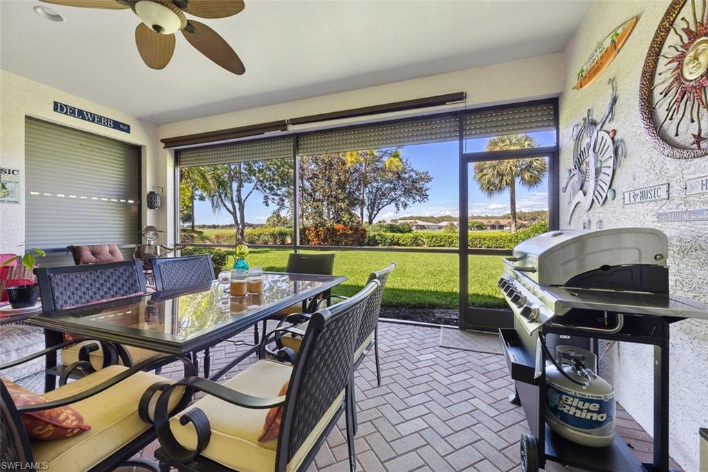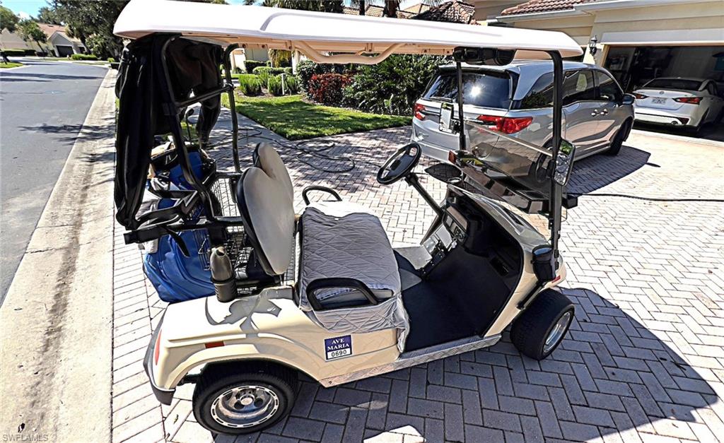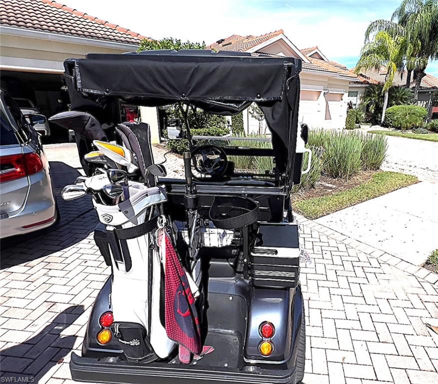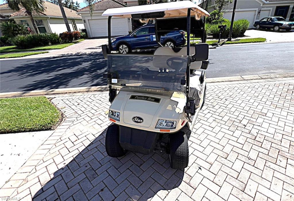 Panther Run Golf Course Club Membership IS INCLUDED!! Seller is also INCLUDING 2 GOLF CARTS (package deal). Home has the most PREMIER GOLF COURSE VIEWS - NOW Featuring this fully FURNISHED & Stylish 2496sf Three (3) BEDROOM plus DEN/Office, 3 Full Bathrooms - ESTATE Series "DUNWOODY TRAIL" Model— It is located on the 2nd Fairway which boasts Breathtaking WESTERN EXPOSURE SUNSETS. Includes GOURMET KITCHEN w/spacious CENTER ISLAND, DOUBLE OVEN WALL UNIT, UPGRADED APPLIANCES, and LOTS of Cabinet Space. SCREENED-IN LANAI and a Lush Yard w/ Mature Landscaping; Plenty of Room for a POOL. Hurricane Roll Down Shades on Lanai & Front Door Plus ACCORDIAN STYLED SHUTTERS on ALL Windows. Master Bathroom has a luxurious Tub, Dual Vanities and a Separate Spacious Walk-in Shower. The EXTENDED 3 Car GARAGE provides that extra needed room for the included 2023 EVOLUTION Lithium Golf Cart, PLUS another smaller Standard Golf Cart & 4 EXTRA Garage Refrigerators. Golf Course Dining is close by at the Rusty Putter Restaurant. You will also enjoy the DEL WEBB RESORT-STYLE POOL and State-of-the-Art FITNESS CENTER PLUS 2 Social Clubhouses. Additional amenities include Pickleball, Tennis, Bocce, Billiards—even a GOLF SIMULATOR! Welcome to one of Southwest Florida’s most Active Lifestyle 55+ Communities.