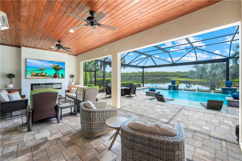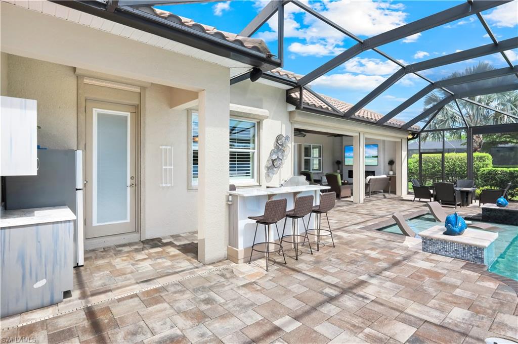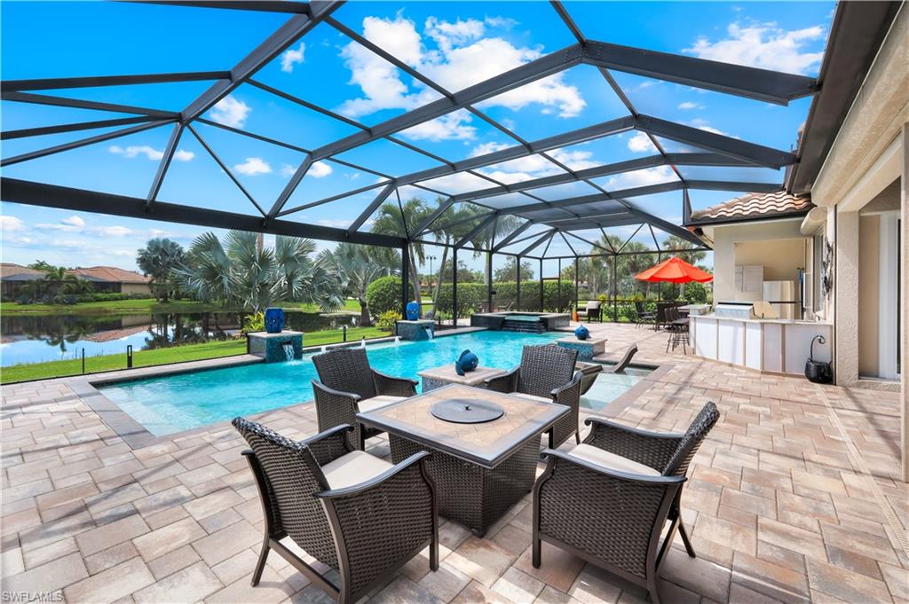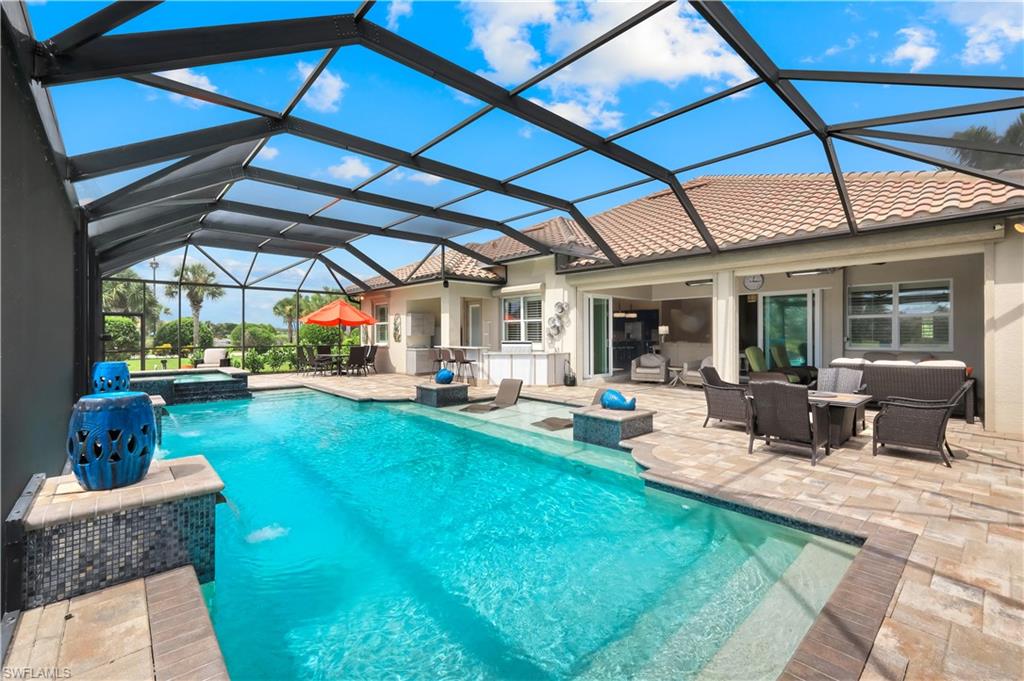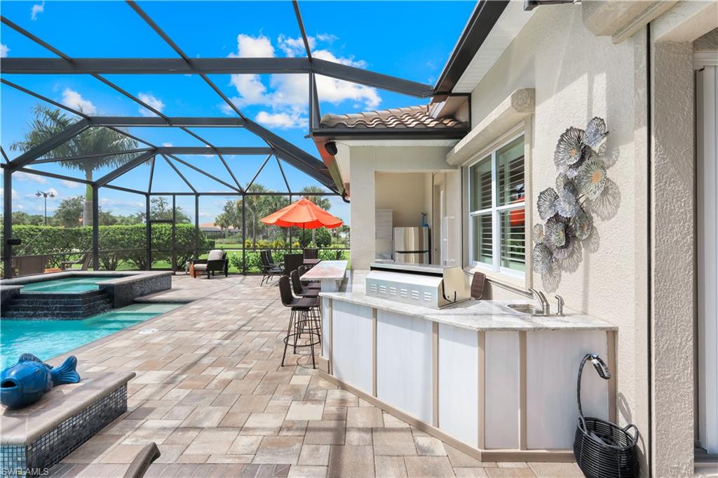 Prepare to be captivated by this jaw-dropping 4-bedroom plus den, 3-full-bath Windsor model masterpiece, sprawling across an OVERSIZED nearly half-acre lot in the ultra-exclusive Quarry community! Commanding spellbinding southern views of the 7th hole of the pristine golf course, this home redefines luxury living with an open floor plan that radiates sophistication and effortless style. Step into a world of opulence, where crown molding, custom-designed closets, and a wealth of storage create an ambiance of refined elegance. The gourmet kitchen dazzles with a brand-new refrigerator, while immersive surround sound envelops the living area and the expansive lanai, setting the stage for unforgettable gatherings. Cutting-edge upgrades, including a new air conditioner, new water heater, and two new garage door openers, ensure peak performance and modern comfort. Venture outdoors to a private oasis that will leave you speechless—meticulously curated landscaping and lighting frame an extraordinary outdoor kitchen and a mesmerizing outdoor fireplace, perfect for starlit evenings. The oversized lanai, crowned by a custom pool and spa, beckons for relaxation, all safeguarded by automatic Storm Smart shutters on the lanai and every window for ultimate peace of mind. The extended 3-car garage, complete with sleek epoxy flooring, offers unmatched space and style. The Quarry has everything for that ultimate Naples vibe with over five hundred acres of lakes for boating, jet-skiing, wakeboarding, or just chilling on a paddleboard. There's a resort-style beach club with a private sandy shore, perfect for picnics. There is tennis, pickleball, bocce ball, plus a tiki bar and indoor/outdoor restaurant with poolside service-grab a cocktail without moving. Fitness center, lap pool, walking paths through preserves, and an activities director keeps things buzzing with events. It's living in a gated resort, right in your backyard. Various optional memberships (NO WAITLIST) are offered at the privately owned Quarry Golf Club. Designed by world-renowned architectural team of Dr. Michael Hurdzan and Dana Fry in 2007, this Championship golf course wraps around the water with eighteen holes of pure scenic bliss. This isn’t just a home—it’s a breathtaking retreat that elevates every moment. Seize the opportunity to claim this jewel as your own!