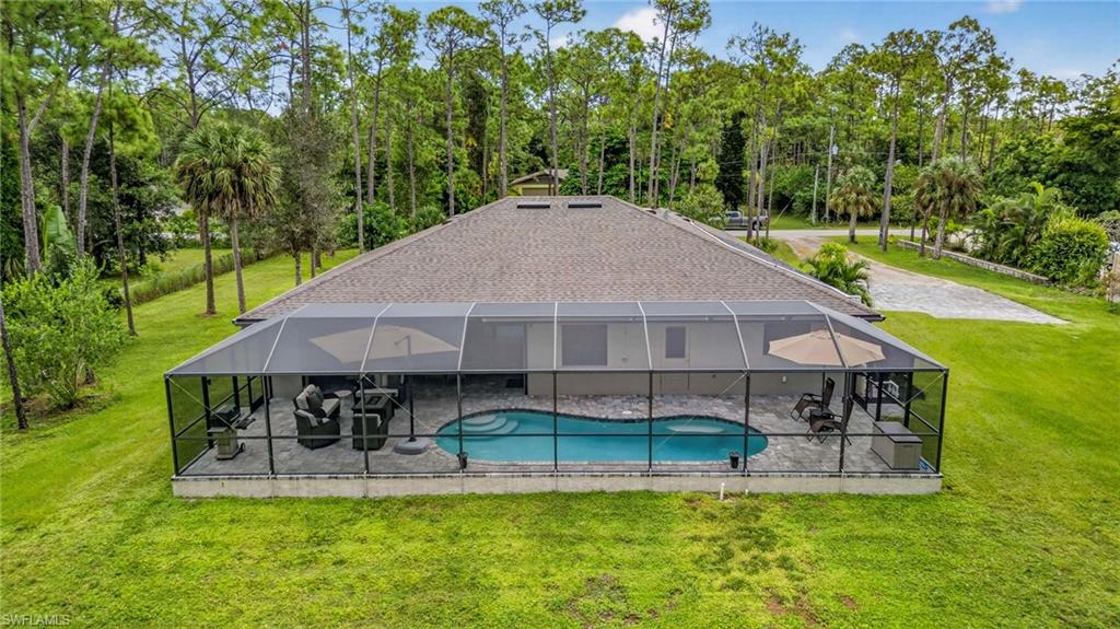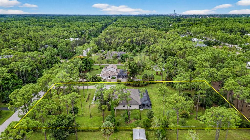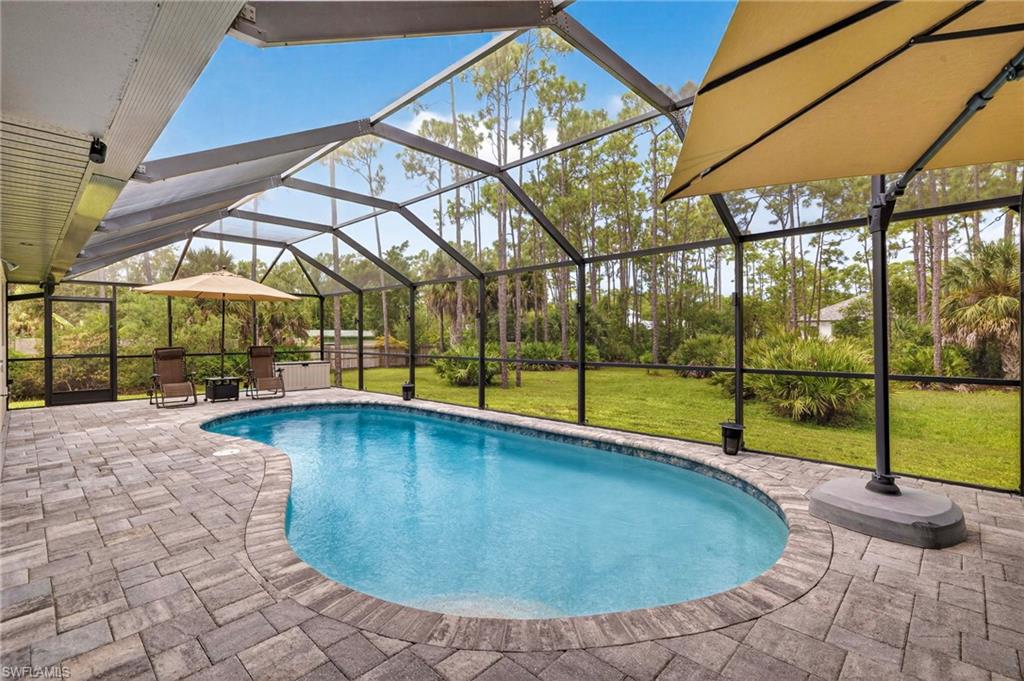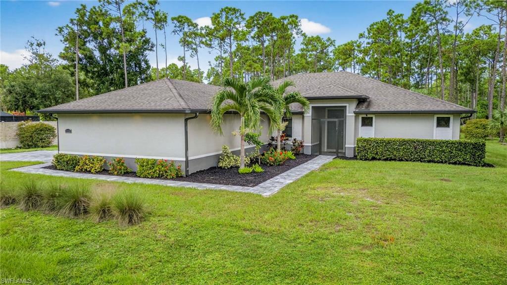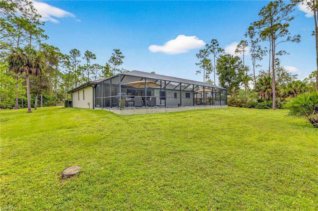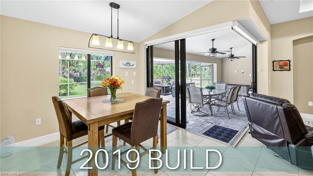 NOTHING COMPARES TO CLAIRE!! Rare offering of a beautiful, 2019 constructed, 4 Bedroom, 3 bath, 3 car garage, pool home set on a totally usable, 1.25 Acre upland property for the low $900's!! Features of this beautiful home include, wide open great room floor plan, super high ceilings, SPECTACULAR 8FT TALL CORNER POCKETING SLIDERS off the family room, large kitchen with soft-close custom cabinetry featuring pull-outs, level 2 granite counters, stainless steel appliances, 5-person counter height bar with tiled accent wall, beautiful backsplash, coffee bar and more!! Additional features include tile throughout all living areas, tray ceilings, crown Moulding, huge master suite with 2 BIG walk-in closets and fully upgraded en-suite bath highlighted by a gorgeous 2-person walk-in-shower with frameless glass door and rain showerhead; 3 large guest bedrooms, fully upgraded guest bath, convenient pool bath, custom tv wall niche in family room, upscale fans and light fixtures, SUNNY WESTERN "SUNSET" REAR EXPOSURE letting in plenty of natural light, separate laundry room with tub, whole house water filter and more!! Outdoors enjoy a huge 3 CAR GARAGE with extra storage and insulated garage door, large covered lanai, sparkling temperature controlled solar heated swimming pool, wonderful pool cage with new screening and integrated lighting, outdoor shower, pre-plumb for outdoor kitchen, 50 AMP outlet for future generator plug, FULL LENGTH ELECTRIC ROLL DOWN HURRICANE SCREEN ON LANAI, whole house surge protector and more! As for the property, enjoy 1.25 acres of beautiful, wonderful, private land!!!! The opportunities are limitless; toy barns, sports courts, cabanas, workshops, storage for your boat or RV; you name it and it can be done!! This home is located in the "HOT" neighborhood of San Carlos Estates made famous by its close to everything location and 1+ ACRE lot sizes!! Have your toys, golf carts, etc. with NO HOA AND NO FLOOD ZONE!! Enjoy close proximity to Downtown Bonita Springs and the areas best beaches, restaurants, shopping, entertainment and all that SW Florida has to offer!! Call for your private showing today!!