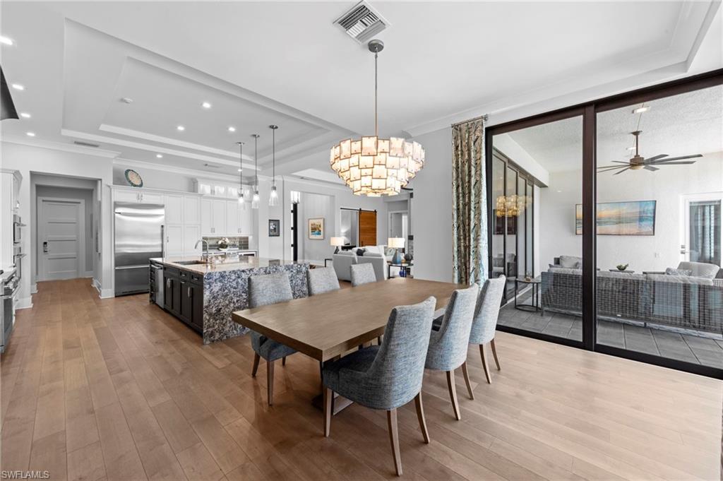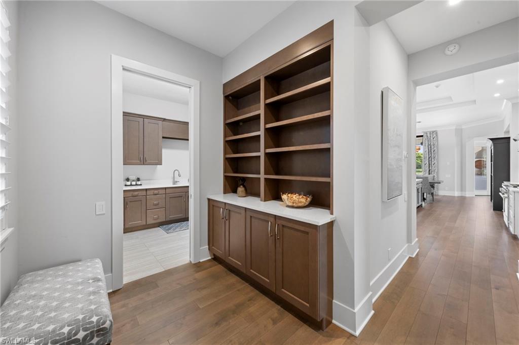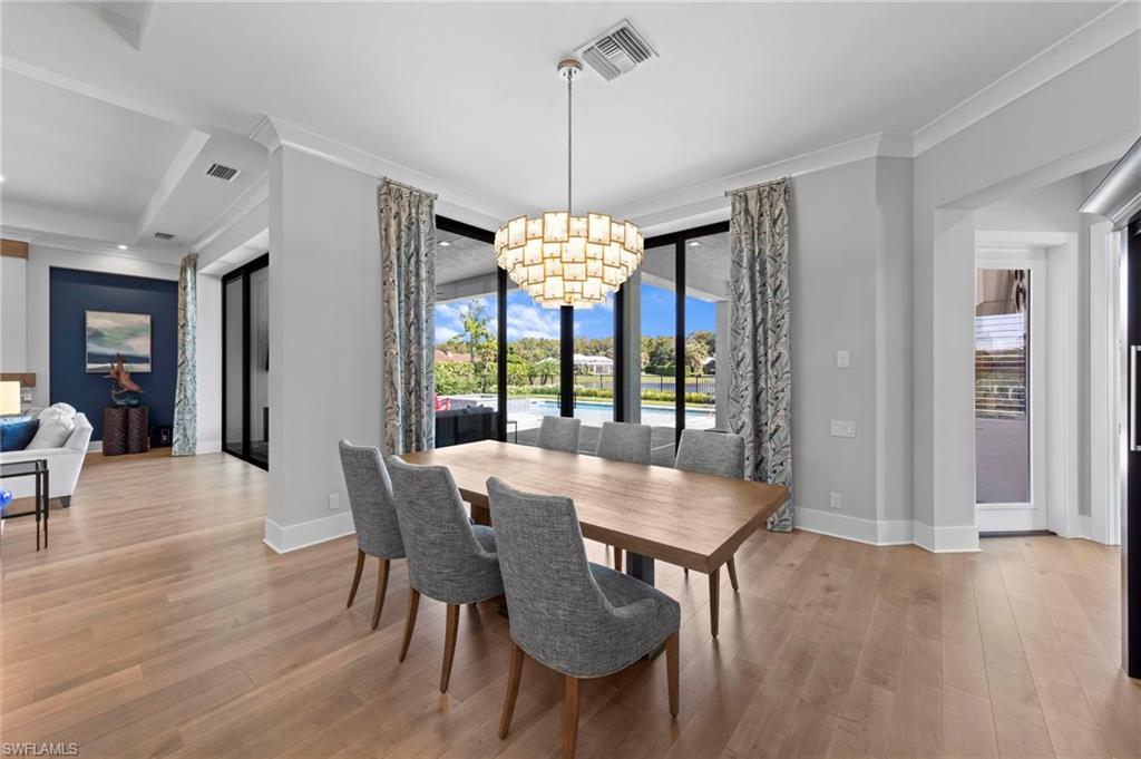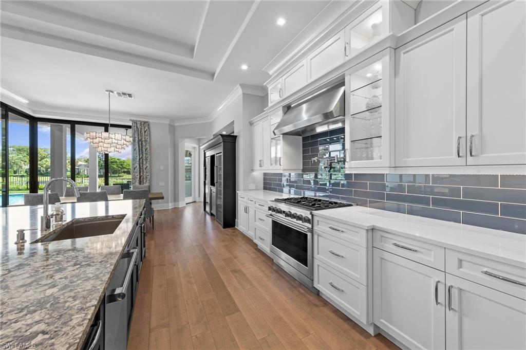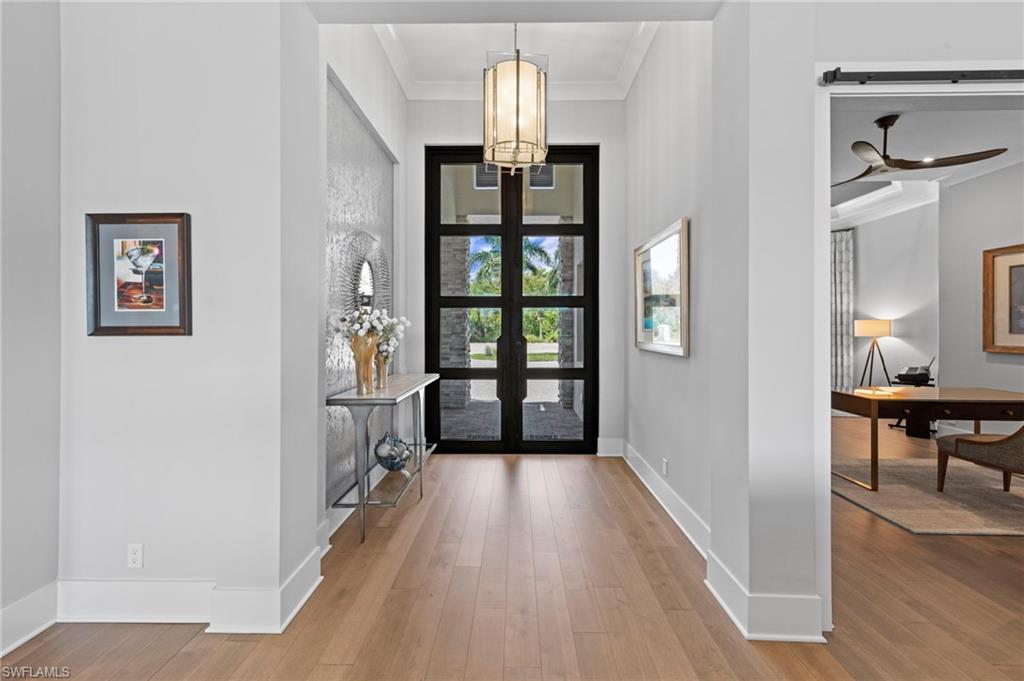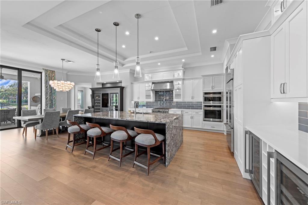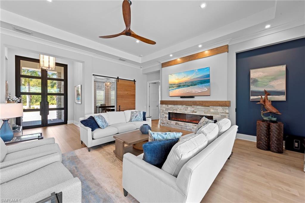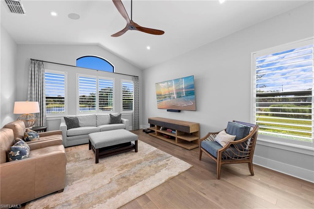 Immediate GOLF Membership NO WAIT LIST with this Arthur Rutenberg custom built home in the Twin Eagles Estate neighborhood, Lochlomond. Built in 2022 the home offers open space living, 3 bedrooms, 3 baths, bonus room, large office, hardwood and tile floors throughout. Two garages each for 2 cars, spacious lanai with an unobstructed lake view. Oversized lot makes you feel as if you are on your island. The outdoor kitchen with glass tile backsplash, granite countertops, beverage fridge and 36 - inch grill with hood perfect when dining out Features include trayed 14 ft.ceilings with crown molding, a full impact window and door package, interior sound proofing, a stone surround fireplace, three individually controlled SONOS zones in the great room, bonus room, and lanai, as well as surround sound in both the great room and bonus room. There is an extensive home automation system built around the app including monitored security system connected to fire and police.Motion sensors and pen/closed sensors on all windows and doors. Lutron switches throughout the home offering remote interior and exterior lighting control. Nest remote temperature control and monitoring. Remote access to garage(s) and rear entry using , wine enthusiasts will love the custom Euro Cave built in wine wall. A Generac generator. Many Many other upgrades and details. Truly a home designed for entertaining start creating memories. The Twin Eagles Clubhouse completed a full renovation in 2022, fitness center, bocce courts, tennis courts, tiki bar, card room and of course 4 new pickle ball courts. Twin Eagles offers 36 holes of Jack Nicholas Group and Steve Smyers courses and is also Audubon certified.