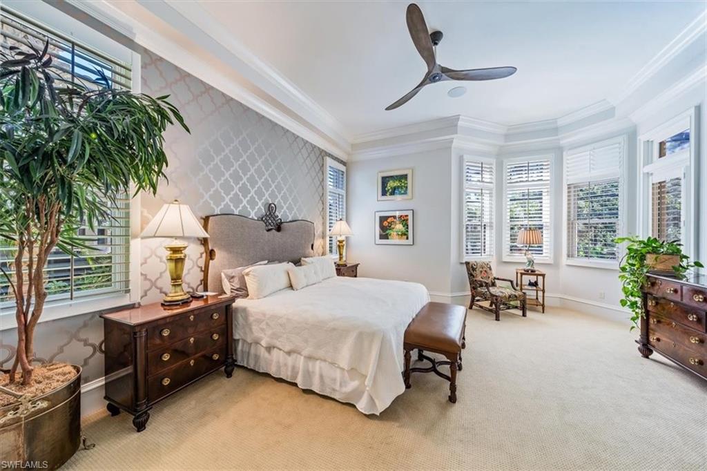This home has had extensive renovation, including a new third garage stall, new luxurious amenities for the Primary Suite’s Bathroom (built-in Sauna, free-standing Soaking Tub, Steam Shower, Towel Warmer and 2nd laundry facility). The Great Room features lighted display shelves and cabinetry on either side of the new mesmerizing Electric Fireplace. The re-imagined Kitchen has an island and windows added to provide more natural daylight and views of the 15-acre Nature Preserve. Appliances include Sub-Zero, Bosch, and Thermador refrigeration drawers. A pull-out Coffee Bar, including faucet, has been incorporated into the custom cabinetry and disappears when not in use. Even the Butler’s Pantry received a new sink. The Dining and Living Rooms have large windows and 12’ ceilings. The Foyer features custom beamed and lighted 20' ceiling and windows that overlook the courtyard. The En-Suite Bedrooms and guest laundry are off the East Hall and the Office is off the West Hall. Control4Home System manages lighting, HVAC, security and internet in person or from across the globe. One of Mediterra’s most private lots, the screened Lanai opens to the lush, private Preserve.