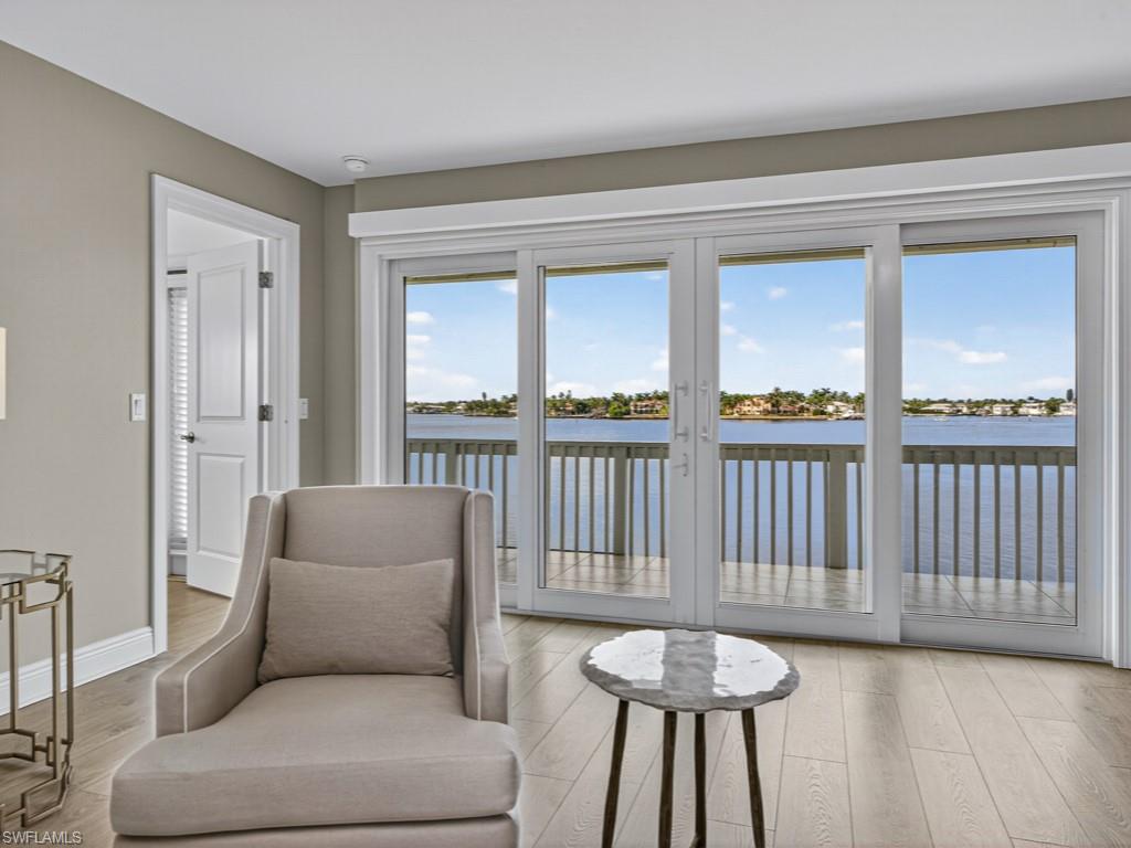 Unrivaled Views. Unmatched Lifestyle. Welcome to your dream coastal retreat in the heart of Naples' coveted Oyster Bay, where breathtaking views and refined updates come together in perfect harmony. This beautifully renovated 2-bedroom + den, 2-bathroom condo offers commanding, unobstructed views of Naples Bay from nearly every room — including the living and dining areas and both bedrooms. Perched at the end of a quiet cul-de-sac, this residence offers direct Gulf access and includes a deeded dock, making it ideal for boating enthusiasts and sunset seekers alike. With desirable southern and western exposures, you'll enjoy panoramic water views, golden afternoon light, and unforgettable Naples sunsets — all from the comfort of your own home. Set in a tranquil natural setting, watch dolphins glide, manatees surface, and coastal birds soar — right from your windows or balconies. This is more than a home — it’s a front-row seat to the serene rhythm of life on the water. Inside, you'll find tasteful, modern upgrades including wood-look luxury vinyl flooring throughout, stainless steel KitchenAid appliances, soft-close cabinetry and quartz/quartzite countertops ,recessed lighting and motorized blinds for effortless ambiance and impact-resistant windows and sliders for peace of mind. Both bathrooms have been fully updated with sleek vanities, designer lighting, and spacious walk-in showers. Step outside to enjoy two private balconies, a covered carport, and extra storage. Located in the intimate community of Chesapeake Point, you're just a short walk or bike ride to downtown Fifth Avenue, home to Naples' finest dining, shopping, and cultural attractions. Whether you're seeking a year-round residence or a luxurious seasonal escape, this waterfront gem delivers the ultimate Southwest Florida lifestyle — tranquil, elegant, and endlessly scenic.