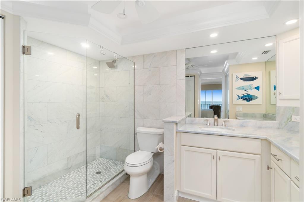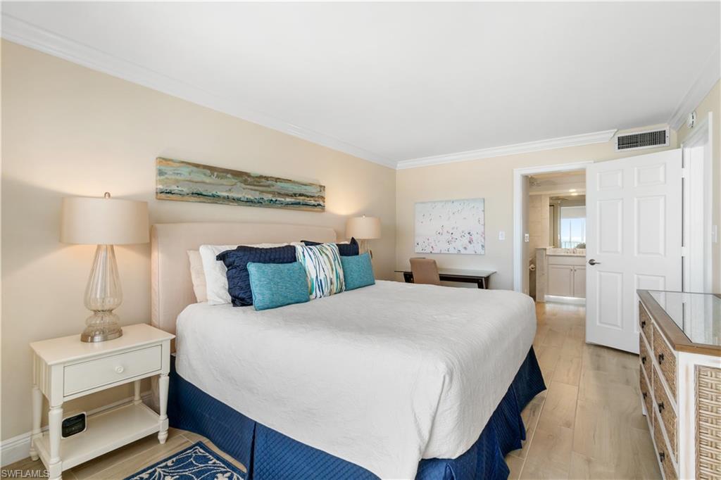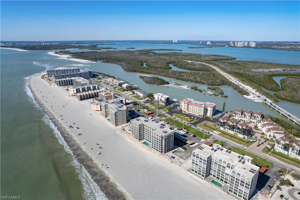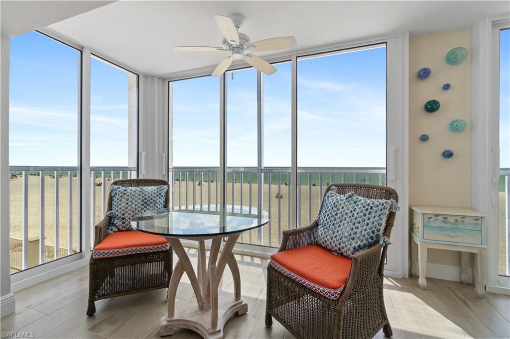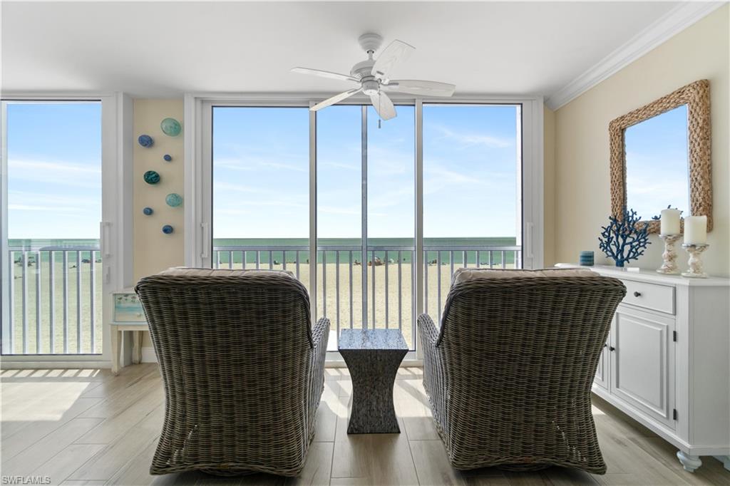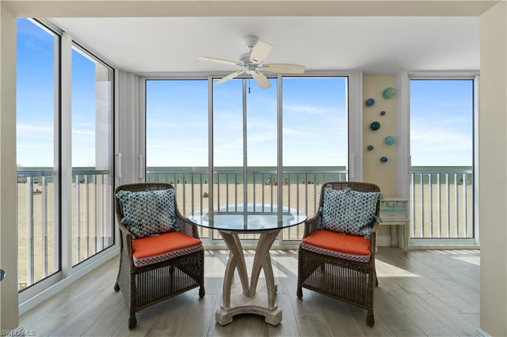 Beautifully renovated, coastal contemporary beachfront condo in Casa Bonita Grande on the peaceful north end of Bonita Beach. With breathtaking views of the turquoise waters and pristine white sands, this 2 bedroom, 2 bathroom condo is the perfect coastal retreat. This unit features a coveted second floor location with an exceptional view of the surf and the pool. Completely updated, the unit boasts beautiful marble countertops, wood-look tile flooring, new hurricane-impact sliders, a new HVAC system (2021) and a new water heater (2023). The enclosed air-conditioned lanai is an entertainer’s dream, offering the option to open the glass sliders and enjoy the sound of the surf. The beautifully remodeled chef’s kitchen is complete with crisp white cabinetry and new GE stainless steel appliances (2021). Additional features include a designated covered parking space, ample guest parking, and convenient access to the second floor sundeck with a gas grill and spacious seating areas - perfect for relaxation or entertaining. Casa Bonita Grande is financially solid with fully funded capital reserves and offers resort-style amenities, including a beachside pool, community room, a fitness center and more.