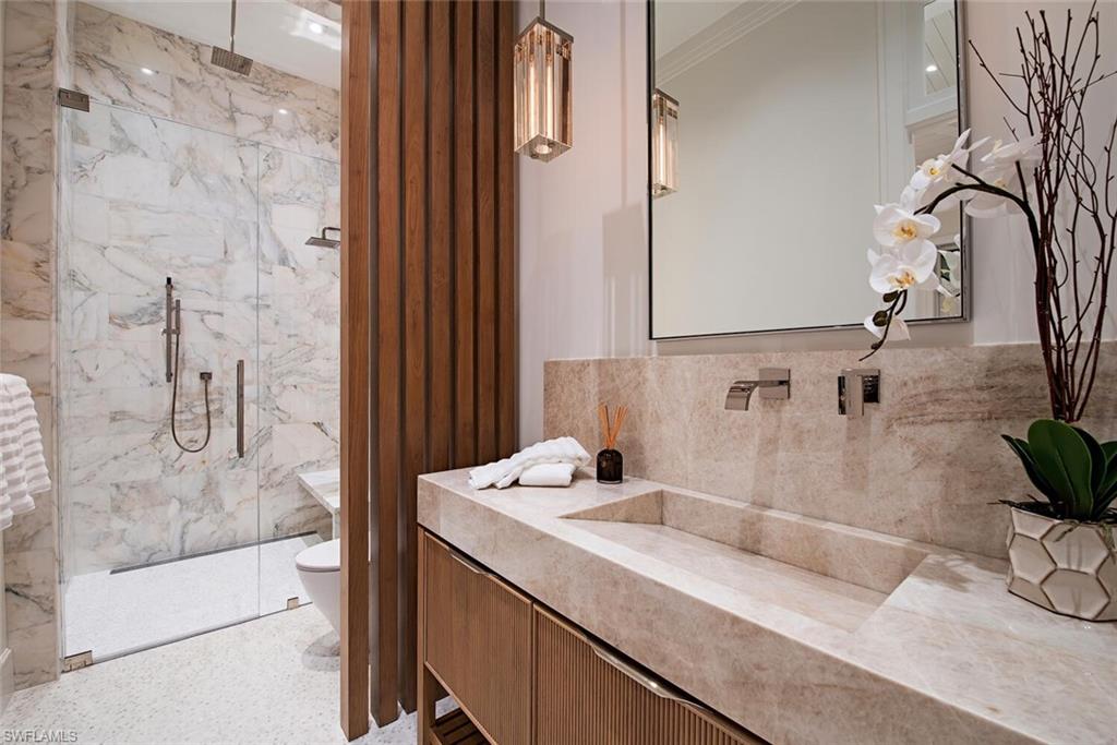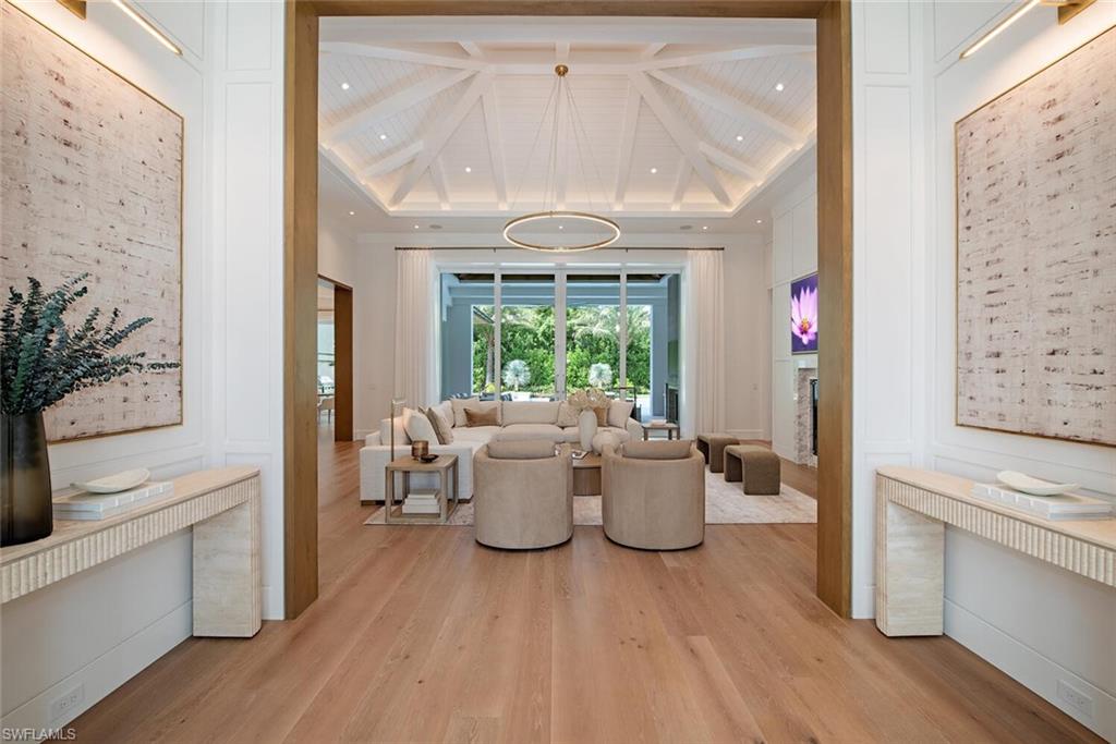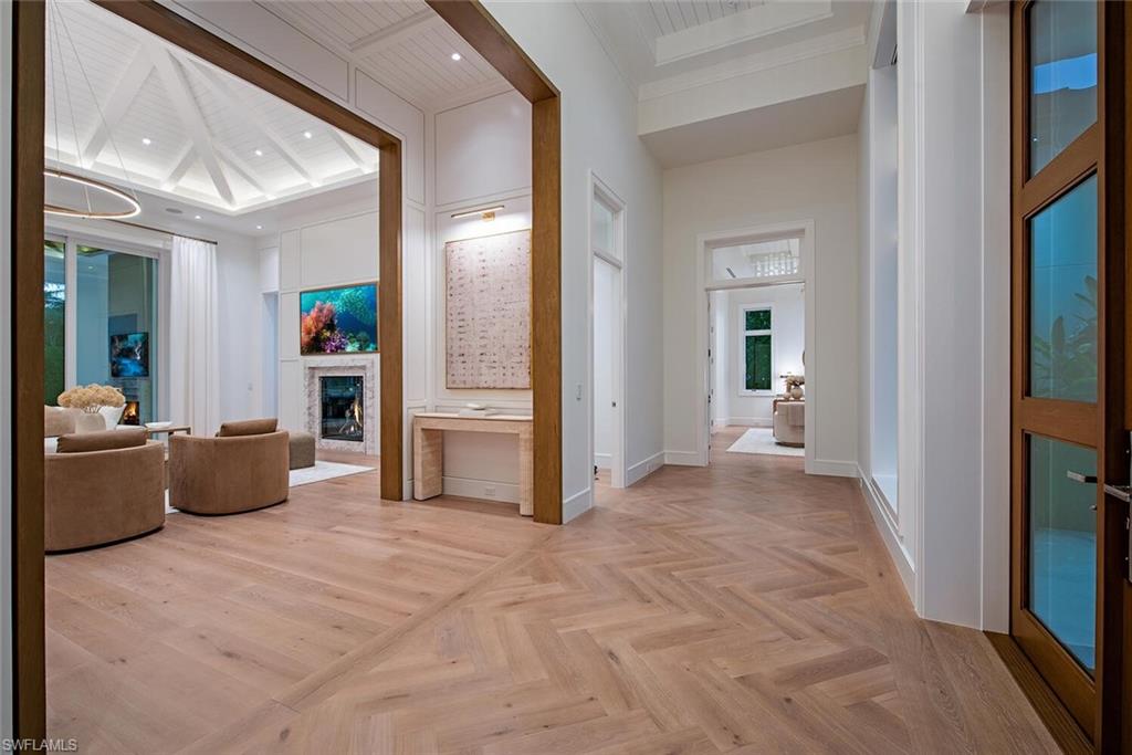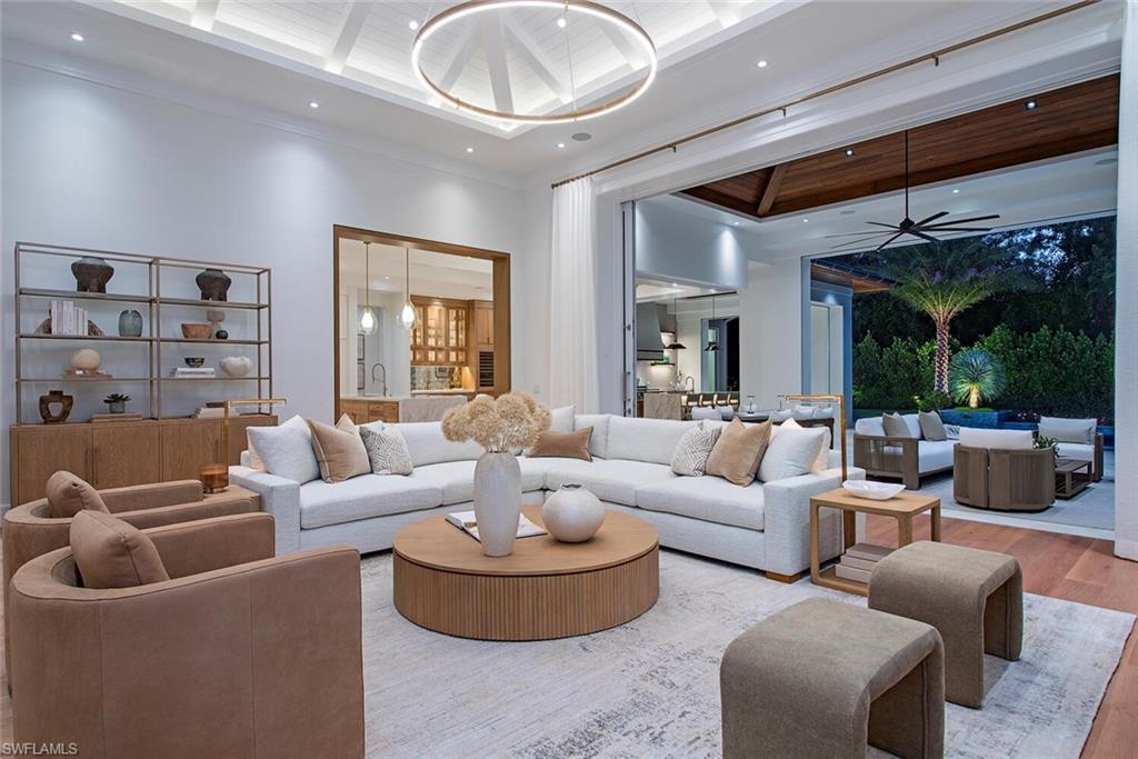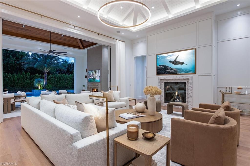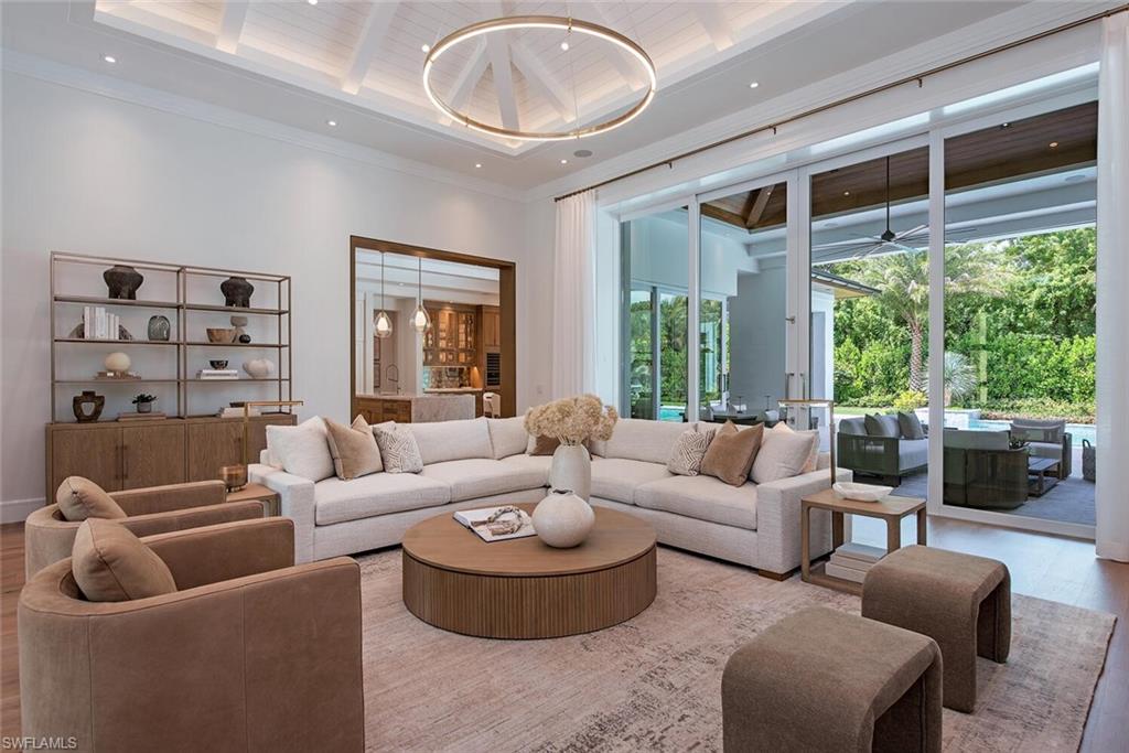 Presenting an exceptional new residence by the distinguished collaboration of Crayton Road Development, Falcon Design, Van Emmerik Custom Homes, and R & Co Designs. Set on a sprawling oversized lot with coveted western exposure, this exquisite home is ideally located in the heart of Coquina Sands—just moments from the pristine beaches, Old Naples, and the highly anticipated Four Seasons Resort. Nestled on the serene Nautilus Road, within a high and dry (X-500) flood zone, this property offers the ultimate in privacy and convenience. Boasting over 5,000 square feet of thoughtfully designed, single-level living space, this residence features 5 generously proportioned bedrooms, 5 full/1 half baths, and a spacious three-car garage. The meticulously curated floorplan ensures effortless flow between the grand living areas, while expansive windows bring the outdoors in, showcasing the lush, tropical landscape that surrounds the property. Designed for the ultimate in entertaining and relaxation, the resort-inspired outdoor living area includes a state-of-the-art kitchen with island, large heated saltwater pool and spa, and an expansive yard—perfect for hosting family and guests. Inside, no detail has been overlooked, from the gourmet kitchen with custom hood and high-end appliances to the service kitchen that provides functional elegance. The home is adorned with beautiful Tavolato Veneto wide-plank oak flooring, intricate millwork, and stunning natural stone countertops throughout. Additional highlights include two elegant fireplaces, generator, and refined ceiling treatments that complement the home’s exquisite architectural details. Designed with luxury and longevity in mind, this property experienced zero flooding from Hurricane Ian or any other recent weather event, underscoring its resilience and premier location. Scheduled for completion in June 2025, this is a rare opportunity to acquire an unparalleled residence where every finish has been meticulously selected by a team of renowned professionals. An unmatched blend of style, sophistication, and setting, this is truly a masterpiece in the making.