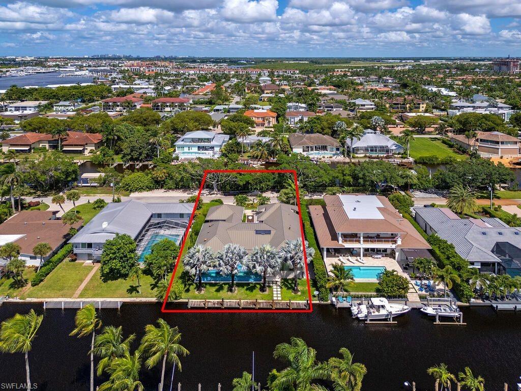 Waterfront Luxury on Jewel Box Avenue located in Oyster Bay. The only street in Naples that is dual waterfront lots! Waterfront access on BOTH front and back sides of the property, with two 65 foot private docks , this property is a boater’s dream, providing easy access to the Gulf. Welcome to your private slice of paradise in the heart of Naples. Under 5 minutes from the 5th Avenue, shopping and dining, and 7 minutes to the Beach. This beautiful custom waterfront residence on sought-after Jewel Box Avenue offers the ultimate Florida lifestyle with exceptional indoor-outdoor living. Custom built to the highest standards by BCBE . The one of a kind architecture and landscaping provide a truly custom home. Designed for both relaxation and entertaining, the home features a sparkling pool, spa, and a front outdoor courtyard that sets the tone for resort-style living. The split bedrooms all en-suite , allow for maximum privacy. Enjoy evenings by the fully equipped outdoor kitchen while taking in tranquil water views. Inside you have a walk-in climate controlled wine cellar, wolf/subzero and Miele appliances, a drop down 109" screen and HD projector, and so much more. Inside, you’ll find spacious living areas filled with natural light and elegant finishes that complement the home’s open design. The thoughtful layout balances privacy and flow, making it perfect for everyday living as well as hosting family and friends. From morning coffee by the water to sunset cruises just steps from your back door, this home captures the very best of Naples living.