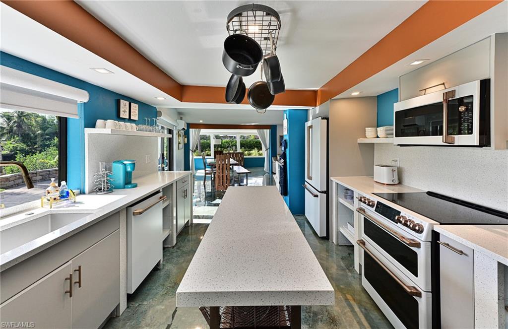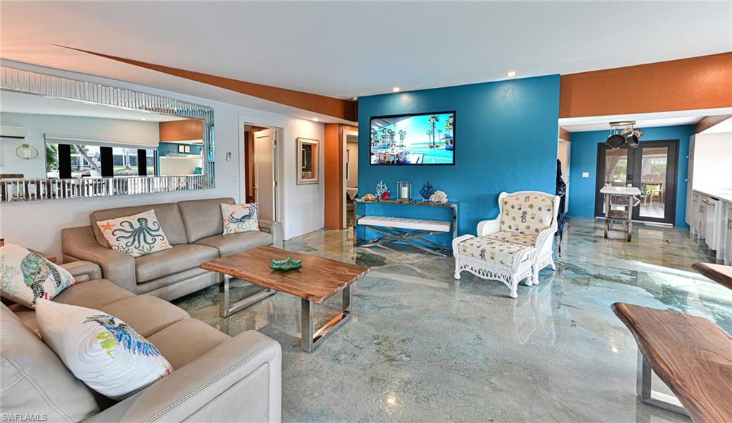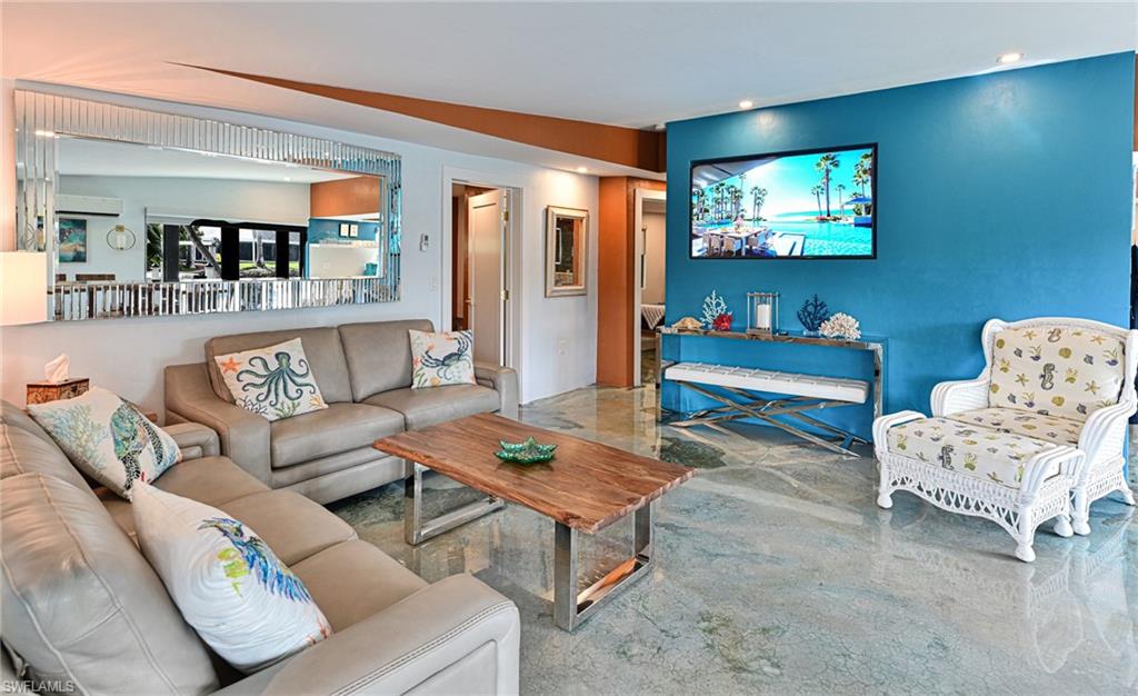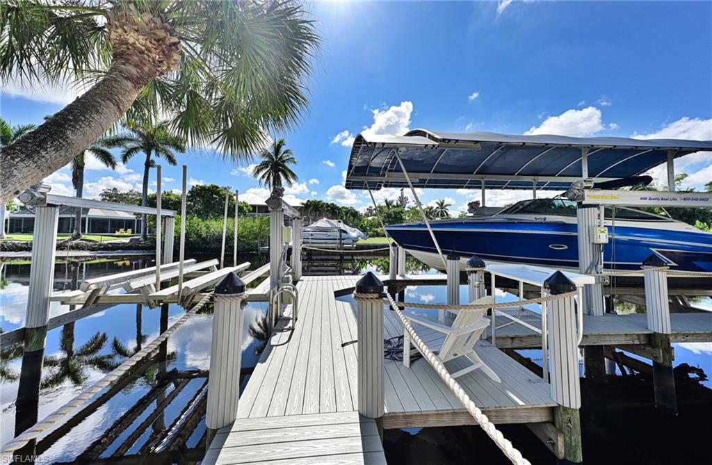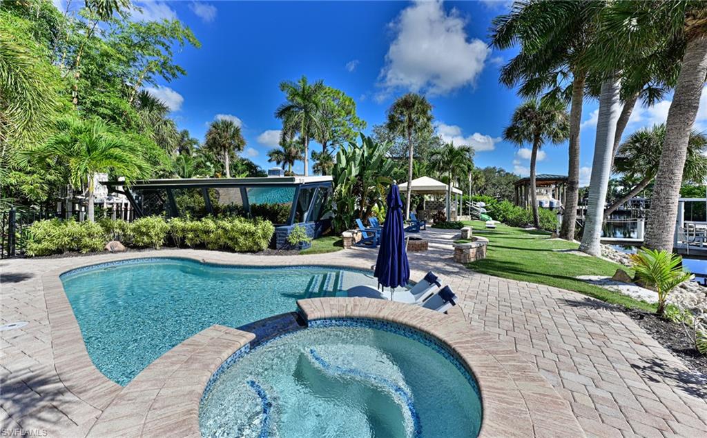 This renovated Imperial riverfront home will make you feel like you are on vacation everyday. Renovated in 2023 by its Owner (a licensed general contractor), every area of this property inside and out was designed for entertaining and the ultimate Florida living. The main home features 2 bedroom, 1.5 bath in main house, kitchen, dining, living room, den/office, sunroom/lanai, screened room plus there is a Casita with full bath, kitchenette and two private entrances. The outdoor backyard features long wide views of the imperial River, large covered outdoor kitchen & dining patio, fire pit, heated pool & spa right on the river’s edge, brick paver patio that spans the complete width of the waterfront frontage and a tropical landscaped yard front and back. Premier boating right out your back door via the new composite boat dock with two electric boat lifts one 17,000lb lift for a 33 ft boat and a smaller lift for jet skis or smaller boat (up to 7,000lbs total). The dock is equipped with a canopy cover for your boat, electric, water, and lighting - the ultimate dock. The interior renovation included decorative concrete design flooring throughout, new quartz countertops, best quality cabinetry, high end appliances, larger windows the provide light throughout and incredible water views. The master suite includes a spacious bathroom with dual rain heads and fixtures in the glass shower, two sinks, lighted mirrors, bidet and floor to ceiling oversized porcelain tile. The casita is also all new and finished to the same level as the main house including the bath. The laundry and powder/pool bath is conveniently located to the outdoor space, casita and main house. The total renovation of this original 1959 block structure resulted in the County designating the effective year of the house as 1995. In addition to its beautiful interior the construction was designed to make this home as water deterrent as possible. This includes: Impact windows & doors, electric conduit throughout including to every outlet with all voids sealed, no cell foam insulation, all interior walls are wire lath and stucco with Hydo-barrier Plus waterproofing, exterior paint used inside, outdoor starboard custom cabinets in the kitchen, several areas of the all new concrete floor were raised plus the HVAC and pool equipment have been raised 5’ on new stands. The outdoor kitchen was constructed of concrete filled cement block and outdoor starboard cabinets. No HOA fees and no rental restrictions. This property is perfect as a primary residence, a winter residence, a home for the young family that can visit only so much per year and wants income from rentals, and the investor who wants a return on his money while owning an outstanding property that has the potential to provide income and value growth. Furniture and furnishings turnkey are negotiable for an immediate close and occupancy. This house is convenient to Mercato, Coconut Point Mall, grocery stores, Golf & Bonita Beach.