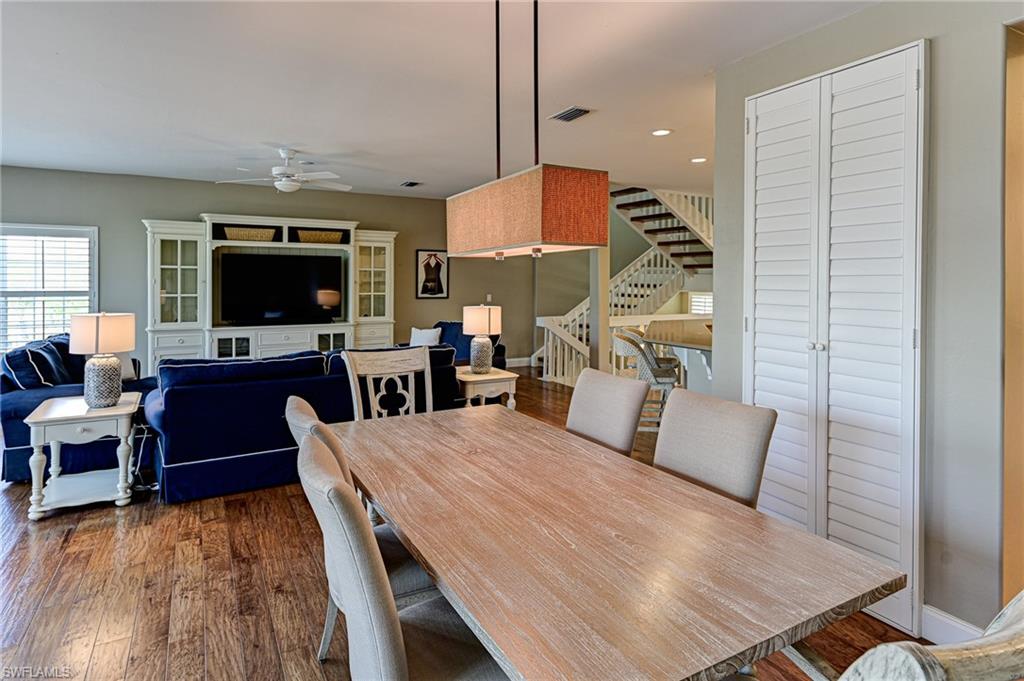 This beautiful beach style 3 story villa home is located in the Villas at Barefoot Beach and within the beautiful gated community of Barefoot Beach. The home offers the best in Florida beach lifestyle including: just a few steps to the white sands of Barefoot Beach via the private beach boardwalk for Villas at Barefoot Beach residents, the ability to rent a dock within the community for your boat or jets skis for quick access to the Gulf of Mexico with no bridges, and the enjoyment of one of two tropical swimming pools and a spa right out your door to the right and left of the Villa. With 4162 SQ Ft of entertaining and living space, 2654 AC space, a spacious open floor pan, volume ceilings, the natural light throughout that can only be achieved with an end unit, 3 bedrooms, 3 baths, plus a den, master suite with oversized walk in closet & large master bath, a 3 car garage, impact windows and doors, metal roof - this home has it all. This is an HOA community, you own the ground under the Villa, and is the best option for lock and go living. Turnkey furniture & furnishings are negotiable. Barefoot Beach is one of Collier County’s finest gated beach communities and provides 24 hour guard patrols, one of the highest ranked beaches in the country and simply an amazing place to live. Option to join the Club at Barefoot Beach (located within the community) which offers casual and fine dining restaurants, pool & beachside food, drinks and chair service, indoor & outdoor bars, tennis courts with pro & a full events calendar. (waitlist with limited usage during wait period). Villas at Barefoot Beach is centrally located to dining, entertainment, golfing, arenas in Naples and Bonita Springs and is close RSW Airport, the Promenade, Coconut Point, Mercato & Waterside Shops and Old Naples. If you are looking for an immaculate move in ready condition beach home that needs no work in Barefoot Beach - this is it.