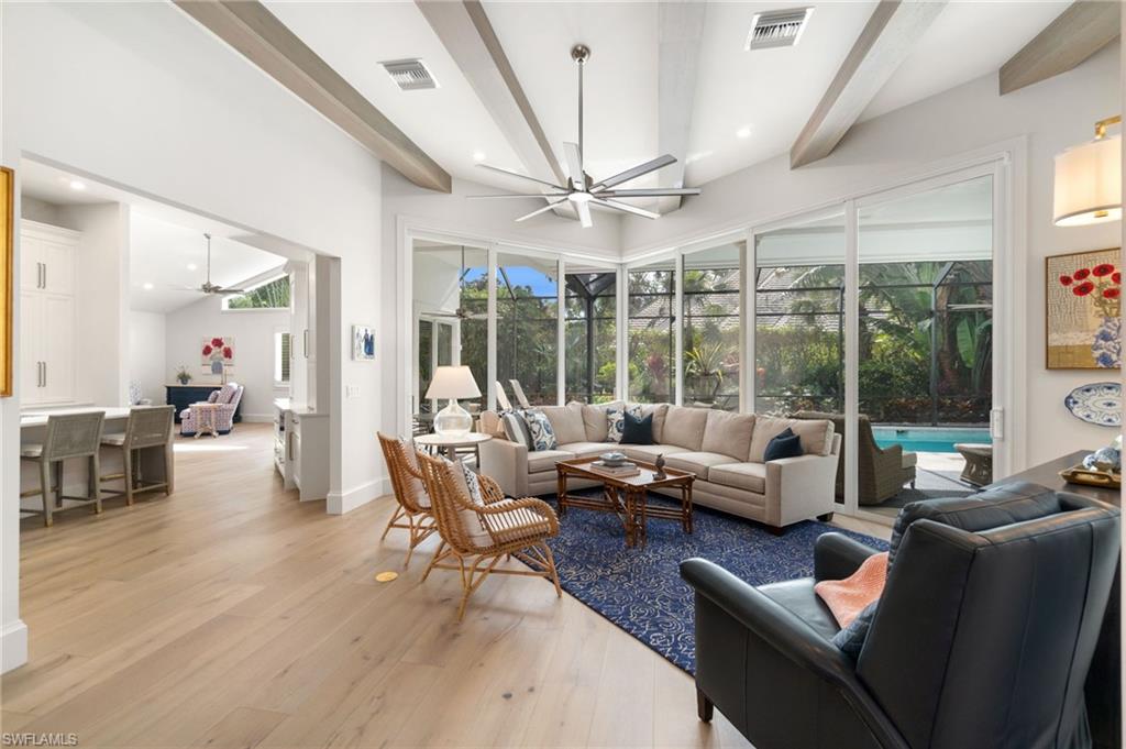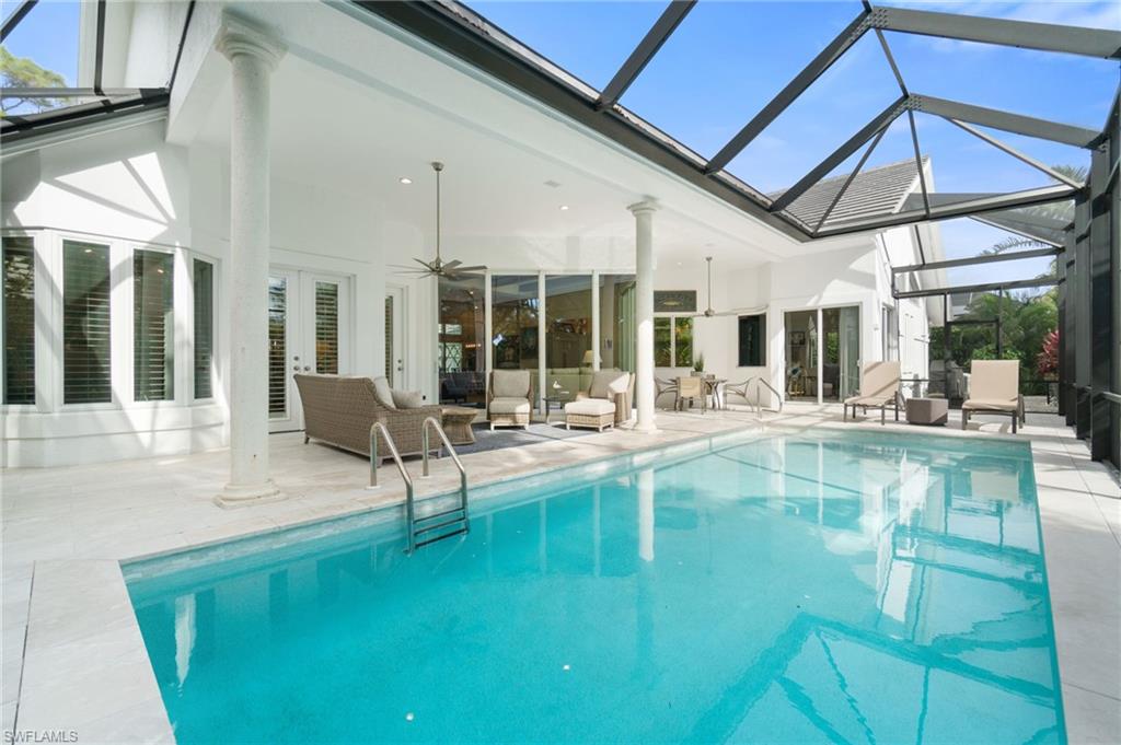 Come home to this beautifully remodeled Southern-exposure residence, perfectly located on a quiet cul-de-sac just steps from Oakmont Lake and the walking path. With nearly 3,000 sq. ft. under air, this four-bedroom, three-bath home offers an expansive split floor plan designed for both comfort and entertaining. The chef’s kitchen features a custom pewter hood, quartz countertops, solid wood cabinetry, two refrigerator drawers and top-of-the-line appliances, including a Sub-Zero refrigerator and Wolf gas range. Flowing seamlessly into both the family and living rooms, the home opens to a generous screened lanai with a large pool, covered dining and lounging areas, and plenty of space for sunbathing. Additional upgrades include all new hurricane-impact resistant windows and doors, wood flooring throughout, 2022 roof, 2022 & 2023 air conditioners, 2023 garage door, 2023 pool heater, all new plumbing installed in 2022, a whole-house generator with a designated 500-gallon propane tank, a climate-controlled garage with EV charger and a dedicated dog run for your four-legged family members. Pelican Bay residents can enjoy access to two private beach clubs, where beachfront dining is offered along with complimentary beach chairs and umbrellas to make for a seamless day on the gulf. The community’s resort-style amenities include tennis and pickleball courts, kayaking, and an extensive and vibrant fitness and community center. Centrally located in Naples and steps from world class dining and shopping as well as the Artis Performing Arts Center and Baker Museum, this move-in-ready home combines thoughtful design with peace of mind, offering the ultimate Pelican Bay lifestyle for all enthusiasts.