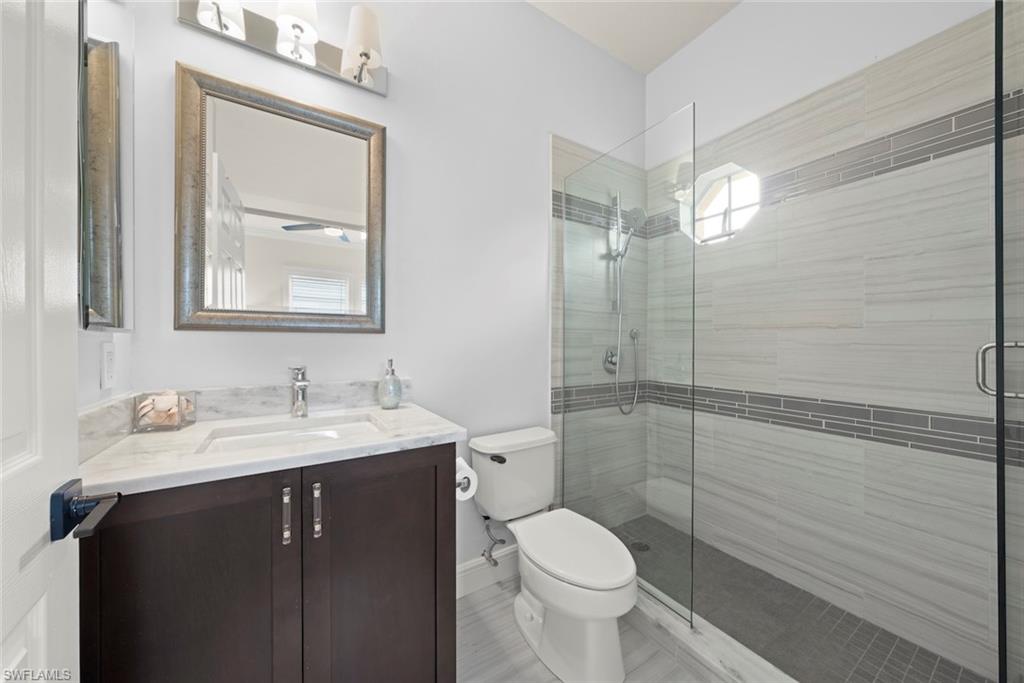 Experience the best of modern living in this fully renovated top-floor coach home in Vintage Reserve at The Vineyards. Thoughtfully redesigned to create a wide-open floor plan, this residence now features an expansive, seamless living space where the kitchen, dining, and great room flow effortlessly together—perfect for today’s lifestyle. The transformed kitchen takes center stage with its open layout, white cabinetry, stainless steel appliances, sleek countertops, oversized island with seating, and built-in beverage cooler. Whether you’re entertaining or enjoying a quiet morning at home, the bright, airy feel sets the tone for the entire residence. With over 2,300 square feet, this home features 3 spacious bedrooms, a private office, and 3 full bathrooms. Rich wood flooring, updated lighting, and refined finishes enhance the inviting atmosphere, while soaring ceilings and abundant natural light amplify the sense of space. The great room and primary suite both open to a wide screened lanai overlooking a peaceful preserve—your own private backdrop of nature that offers exceptional privacy and tranquility. The primary suite includes new plush carpeting, a custom walk-in closet, and a spa-inspired bathroom with dual vanities and a walk-in shower. The dedicated office adds charm and functionality with elegant board-and-batten detailing, creating a stylish work-from-home environment. Additional features include a 2-car garage with brand-new epoxy flooring. Set within the gated enclave of Vintage Reserve, with no transfer fee or CDD—residents may choose to join the private country club featuring two championship golf courses, tennis, pickleball, bocce, a fitness center, spa, and dining options. All just minutes from Naples’ acclaimed beaches, shopping, and dining. Beautifully renovated, private, and move-in ready—this home offers exceptional comfort and the relaxed elegance of The Vineyards lifestyle.