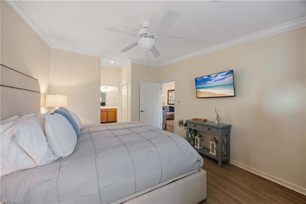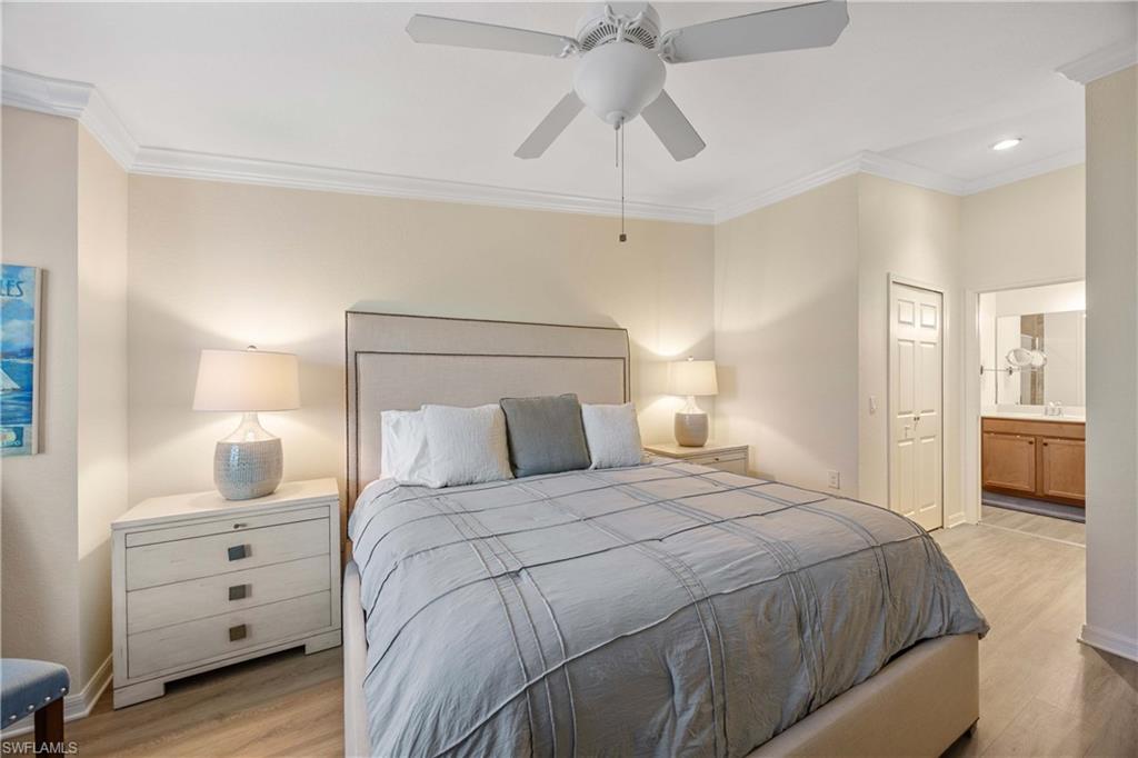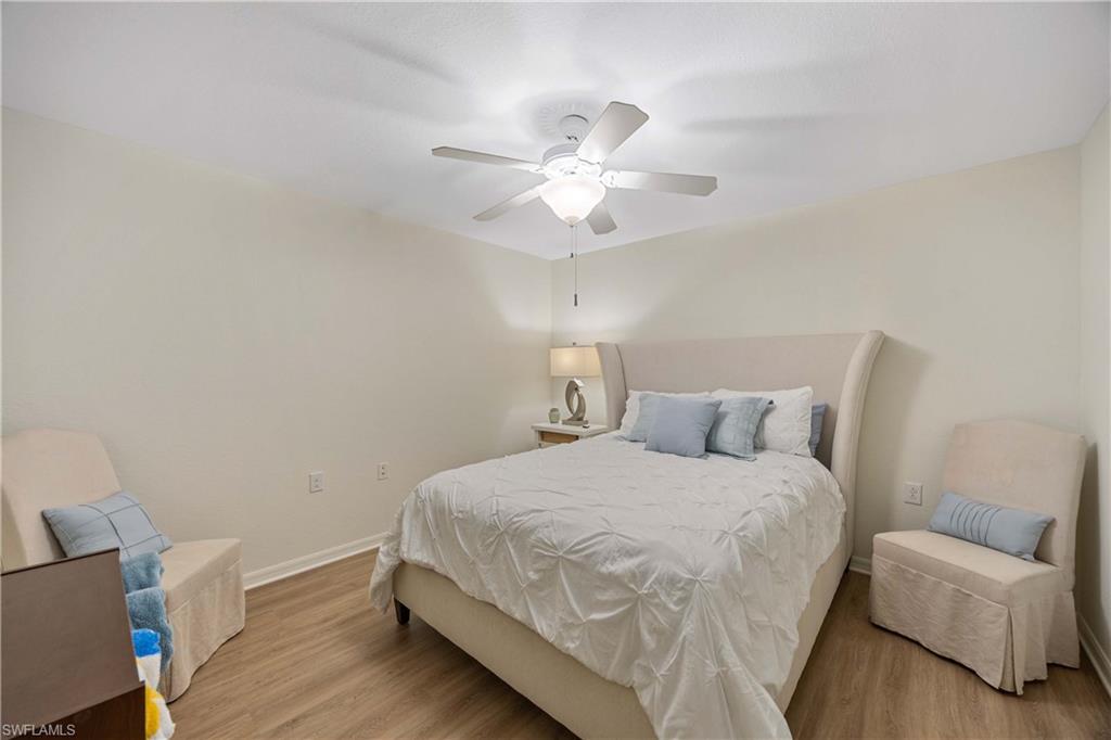 Treviso Bay – Venezia Veranda! Welcome to this beautiful 2-bedroom plus den, 2-bath Bromelia model Veranda with detached 1-car garage located in the sought-after Venezia neighborhood of Treviso Bay. This non-golf unit is the perfect opportunity to enjoy the resort lifestyle without the golf membership. This 2nd/top floor home features vinyl flooring throughout the main living areas and bedrooms, providing both style and easy maintenance. Both the front and rear lanais are finished with tile flooring, ideal for relaxing or entertaining while enjoying the Florida lifestyle. The versatile den offers space for a home office, media room, or guest accommodations, adding to the home’s flexibility. The Veranda I Board enforces hot water tank replacement at year 10 - hot water tank new in 2025. All plastic valves have been replaced with metal valves and steel braided supply lines with metal connections. Immediately adjacent to the front of the home is the Venezia community pool which provides a perfect place to quietly enjoy the Southwest Florida sunshine. Treviso Bay is renowned for its amenities-rich resort living, including a resort-style pool, fitness center, spa, tennis, pickleball, bocce, on-site dining, and more—all surrounded by lush landscaping and serene lake views. Venezia offers a tranquil setting with convenient access to everything Treviso Bay has to offer. Don’t miss your chance to own a stylish veranda in one of Naples’ premier communities—schedule your private showing today! Agents please see the file titled "Furniture" in supplements for information regarding the transfer of personal property.