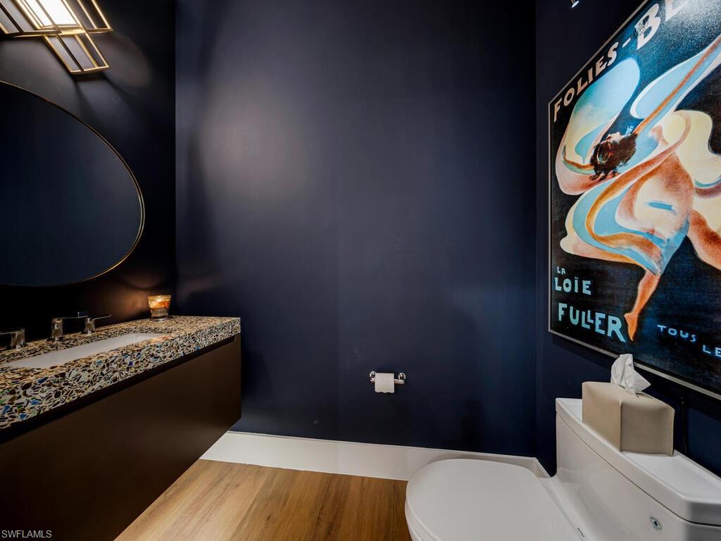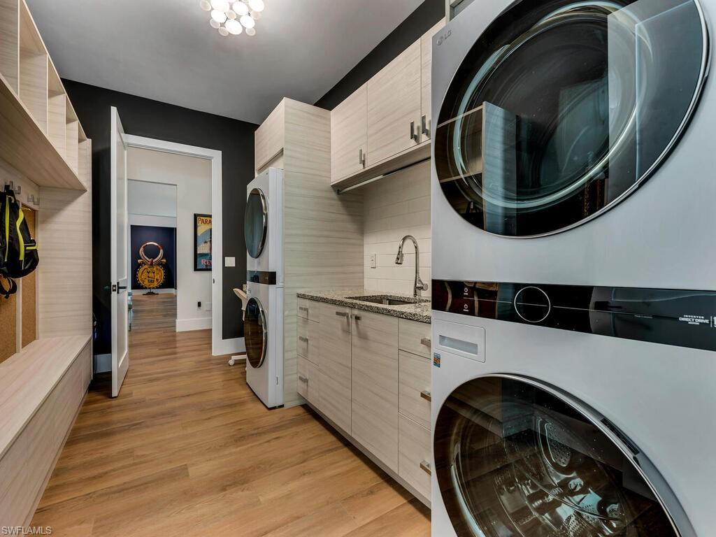 Crafted for Living. Designed for Legacy. This residence is more than a home—it is a lifestyle statement. A rare single-level estate in the heart of Naples, it balances modern design with luxurious comfort, offering 4,524 sq. ft. under air and 7,312 sq. ft. total, including over 1,400 sq. ft. of lanai and pool deck. Every detail has been curated to elevate daily living and entertaining. At the center of the home, a spectacular 15-foot kitchen island anchors a chef’s dream culinary suite: 48” Z-Line gas range with dual ovens, dual 36” refrigerator/freezers, convection microwave, dual dishwashers, hidden mixer station, and walk-in butler’s pantry with additional appliances. Glassware rinsers, a freestanding ice maker, and a wine chiller complete the setting for effortless entertaining. The 14’ x 32’ covered lanai is an outdoor living room with motorized shades, built-in grill with rotisserie, gas fireplace, undercounter refrigerator, and a 75” TV. Just beyond, a spa-style pool with cascading waterfalls, artificial turf, and lush privacy landscaping creates the perfect retreat. The primary suite is a sanctuary with serene garden views, a spa-caliber wet room with steam shower, chroma-therapy lighting, soaking tub, dual vanities, Toto bidet toilets, and a private outdoor shower. A boutique-style custom closet completes the retreat. Four additional guest suites—each with en-suite baths—are generously scaled for king or dual queen accommodations. For extended stays or live-in staff, a private guest cabana offers a full kitchen, living area, LG Wash Tower, private entrance, and parking. A flexible design can transform this space into a two-bedroom, two-bath guest wing. Additional highlights include a 3-car garage with 12’ ceilings (EV-ready), four-zone HVAC, three tankless propane water heaters, 1,000-gallon buried propane tank, Icynene insulation, insulated interior walls, Lutron Caséta lighting, and two LG Wash Towers in the laundry/mudroom. Located in an A+ rated school district and just minutes from beaches, shopping, and downtown Naples, this home offers rare one-level living, luxury finishes, and extraordinary flexibility—without the $5M+ price tag west of US41. Live boldly. Entertain effortlessly. Rest luxuriously. Every finish, every fixture, every space—elevated.