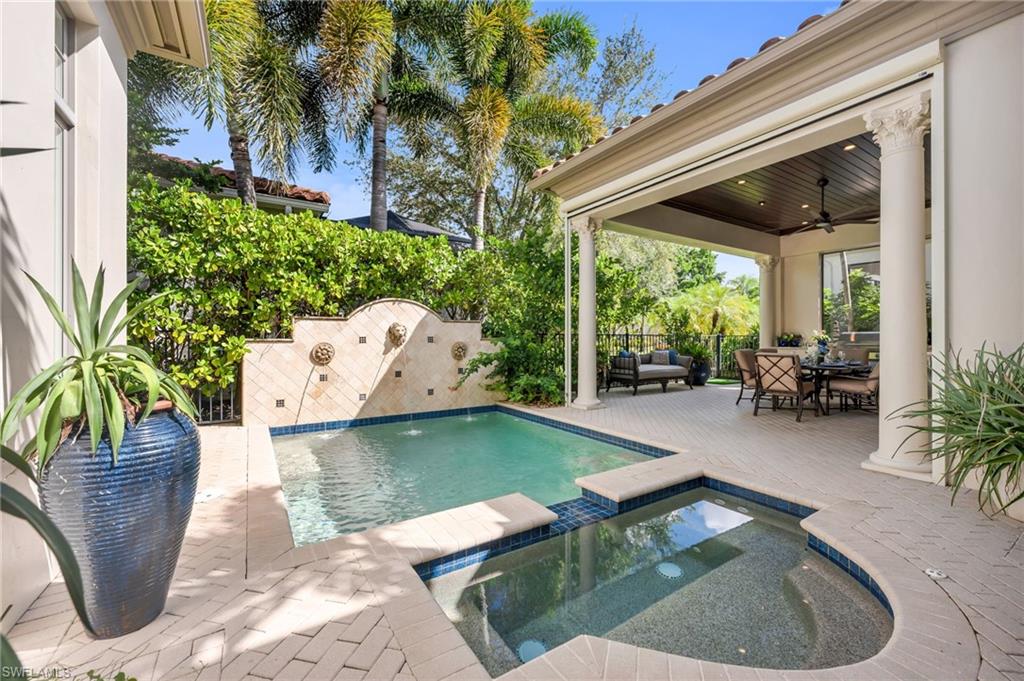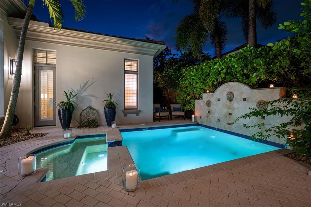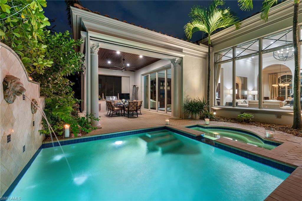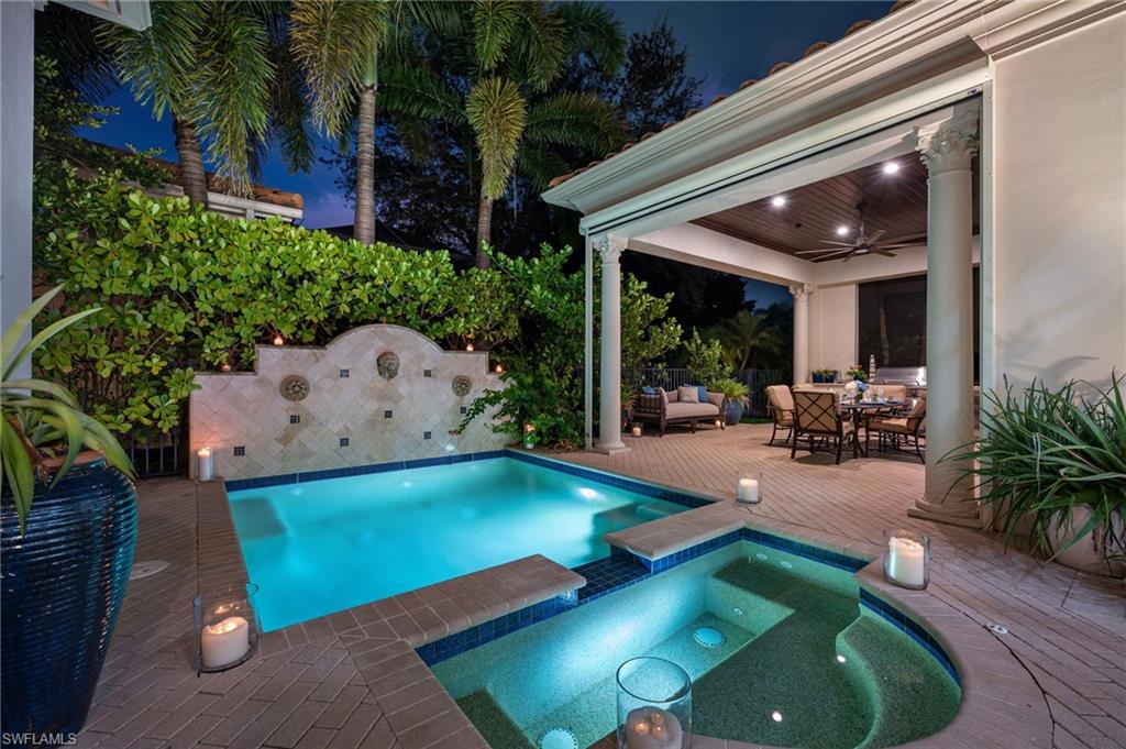 A sense of refined elegance unfolds the moment you arrive at this beautifully reimagined residence in the heart of Grey Oaks Country Club. Framed by a private, park-like backyard, the home offers an ambiance of serenity and sophistication, blending timeless architecture with thoughtfully curated modern updates. Inside, generous millwork and high ceilings set the stage for light-filled interiors, where hand-hewn wood floors bring warmth and character. The living spaces are both stylish and welcoming, anchored by a gas fireplace and enriched by a seamless Sonos sound system extending throughout the interiors and lanai. The kitchen, bar, and laundry are elevated with striking, thick 3cm Taj Mahal quartzite, complemented by premium appliances and refined design elements. Designed for effortless living, the residence integrates luxury with practicality at every turn. Impact windows and doors, a whole-house generator, dual-zone climate systems, and a tankless gas water heater ensure peace of mind. Outdoor living is equally refined, with a lanai appointed with automated bug screens, a summer kitchen with refrigerator, and a beautiful pool, fountain and spa, supported by advanced systems for year-round enjoyment. Thoughtful enhancements include freshly repainted interiors in main areas, new carpeting, custom exterior lanterns, and a commercial-grade washer and gas dryer. The garage configuration offers a two-car garage plus a separate golf cart garage, finished with epoxy floors and a mini split A/C for added comfort. This residence is located in Torino, a natural gas community of just 54 luxury villas within Grey Oaks. Known for its friendly, vibrant spirit, Torino is a community where neighbors often gather socially, creating a welcoming environment that combines exclusivity with connection. It is as much a lifestyle as it is a neighborhood—an exceptional place to be part of. Life at Grey Oaks Country Club is defined by connection, wellness, and leisure. It is a community where Members come together in meaningful ways, enjoying 3 championship golf courses, 2 stunning clubhouses, 3 distinctive restaurants, a resort-style pool, and a 30,000 sq. ft. Wellness Center. Members also enjoy an expansive pickleball center, tennis, bocce, and a vibrant social calendar that fosters both well-being and a true sense of belonging. Every detail of this home has been meticulously designed to create a retreat of style, comfort, and elegance—an invitation to experience the very best of Grey Oaks living. Welcome Home!