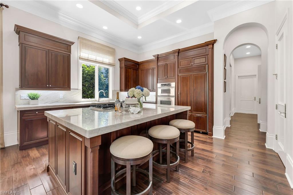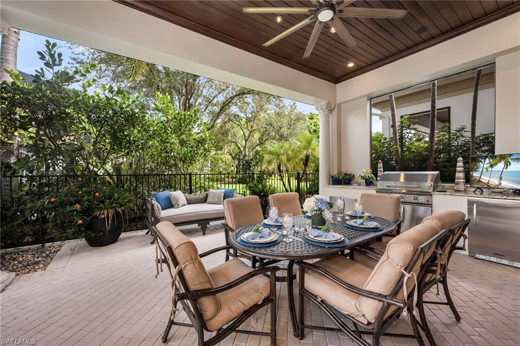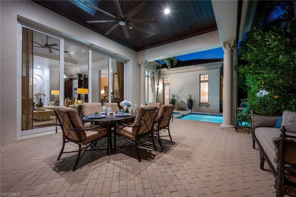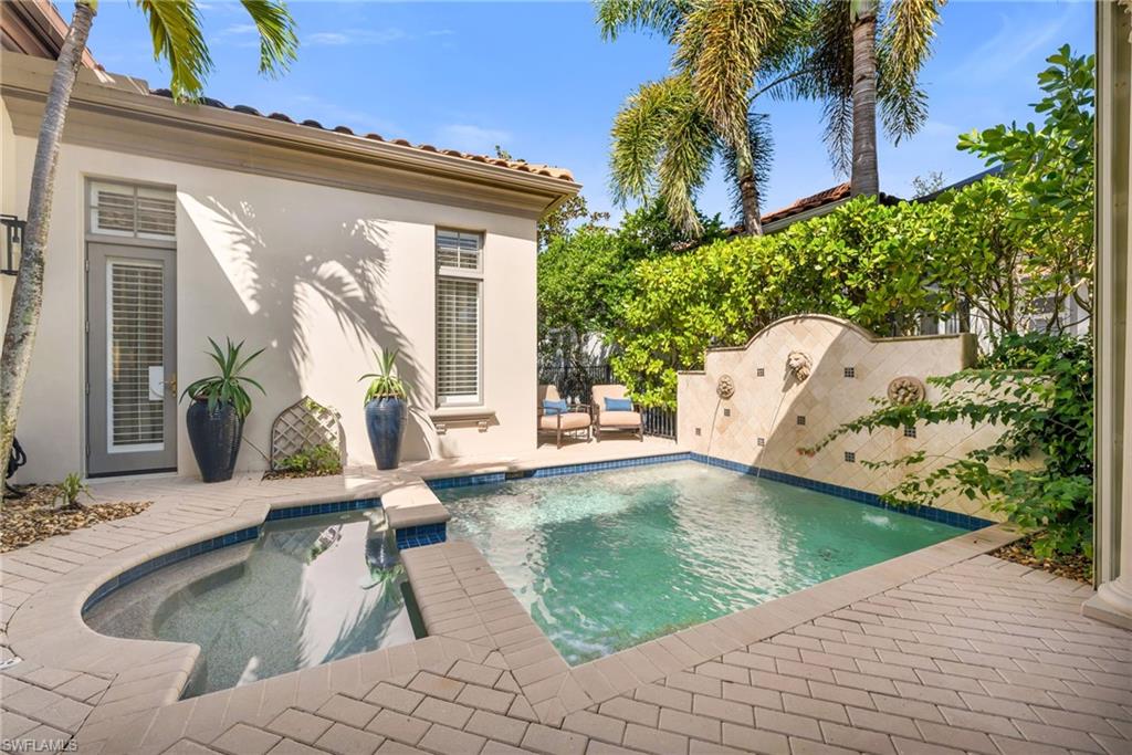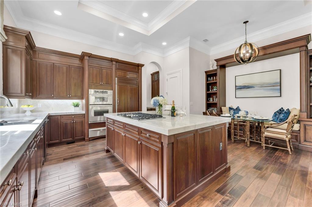 A sense of refined elegance unfolds the moment you arrive at this beautifully reimagined residence in the heart of Grey Oaks Country Club. Framed by a private, park-like backyard, the home offers an ambiance of serenity and sophistication, blending timeless architecture with thoughtfully curated modern updates. Inside, generous millwork and high ceilings set the stage for light-filled interiors, where hand-hewn wood floors bring warmth and character. The living spaces are both stylish and welcoming, anchored by a gas fireplace and enriched by a seamless Sonos sound system extending throughout the interiors and lanai. The kitchen, bar, and laundry are elevated with striking, thick 3cm Taj Mahal quartzite, complemented by premium appliances and refined design elements. Designed for effortless living, the residence integrates luxury with practicality at every turn. Impact windows and doors, a whole-house generator, dual-zone climate systems, and a tankless gas water heater ensure peace of mind. Outdoor living is equally refined, with a lanai appointed with automated bug screens, a summer kitchen with refrigerator, and a beautiful pool, fountain and spa, supported by advanced systems for year-round enjoyment. Thoughtful enhancements include freshly repainted interiors in main areas, new carpeting, custom exterior lanterns, and a commercial-grade washer and gas dryer. The garage configuration offers a two-car garage plus a separate golf cart garage, finished with epoxy floors and a mini split A/C for added comfort. This residence is located in Torino, a natural gas community of just 54 luxury villas within Grey Oaks. Known for its friendly, vibrant spirit, Torino is a community where neighbors often gather socially, creating a welcoming environment that combines exclusivity with connection. It is as much a lifestyle as it is a neighborhood—an exceptional place to be part of. Life at Grey Oaks Country Club is defined by connection, wellness, and leisure. It is a community where Members come together in meaningful ways, enjoying 3 championship golf courses, 2 stunning clubhouses, 3 distinctive restaurants, a resort-style pool, and a 30,000 sq. ft. Wellness Center. Members also enjoy an expansive pickleball center, tennis, bocce, and a vibrant social calendar that fosters both well-being and a true sense of belonging. Every detail of this home has been meticulously designed to create a retreat of style, comfort, and elegance—an invitation to experience the very best of Grey Oaks living. Welcome Home!