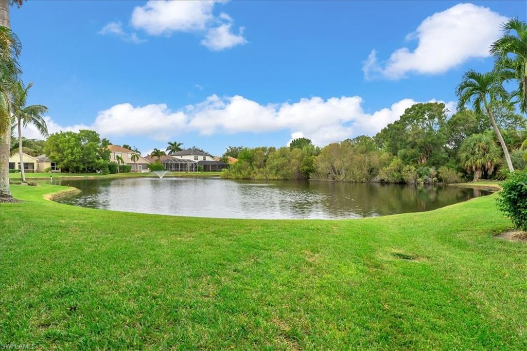 This hidden gem in Bonita Springs offers 3 bedrooms, 2 bathrooms, and just under 1,600 sq. ft. of single-level living with soaring ceilings, crown moulding throughout, and an open, expansive floor plan. Set on a quiet cul-de-sac in a sought-after neighborhood with low HOA fees, residents enjoy a community pool, hot tub, clubhouse, and a walking and biking path that leads directly to both Vanderbilt Beach and Bonita Beach. The home features tasteful finishes, a two-car garage, and a beautifully landscaped yard with exotic plants, fruit trees, and tranquil lake frontage. With seamless indoor-outdoor flow and a spacious backyard perfect for entertaining or relaxing, this property blends comfort, convenience, and the best of the Florida lifestyle.
