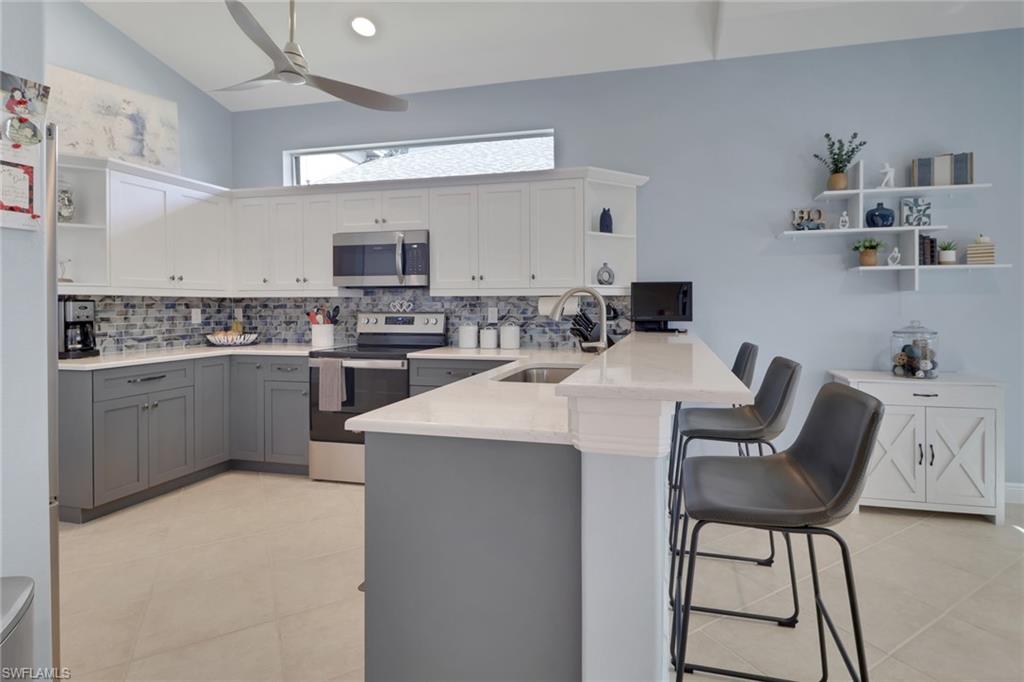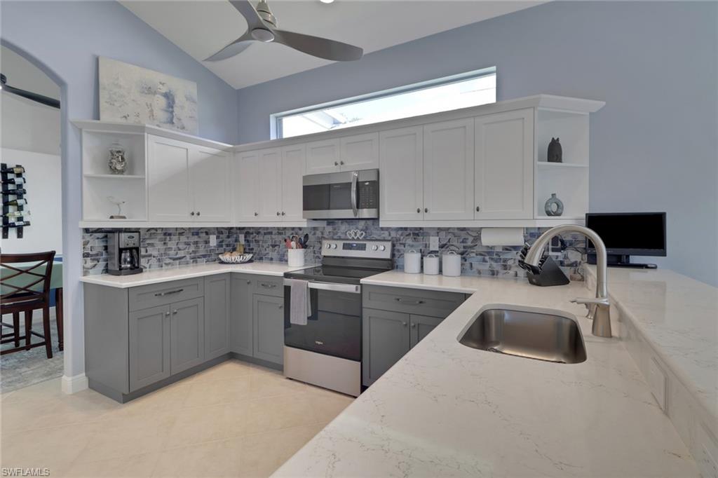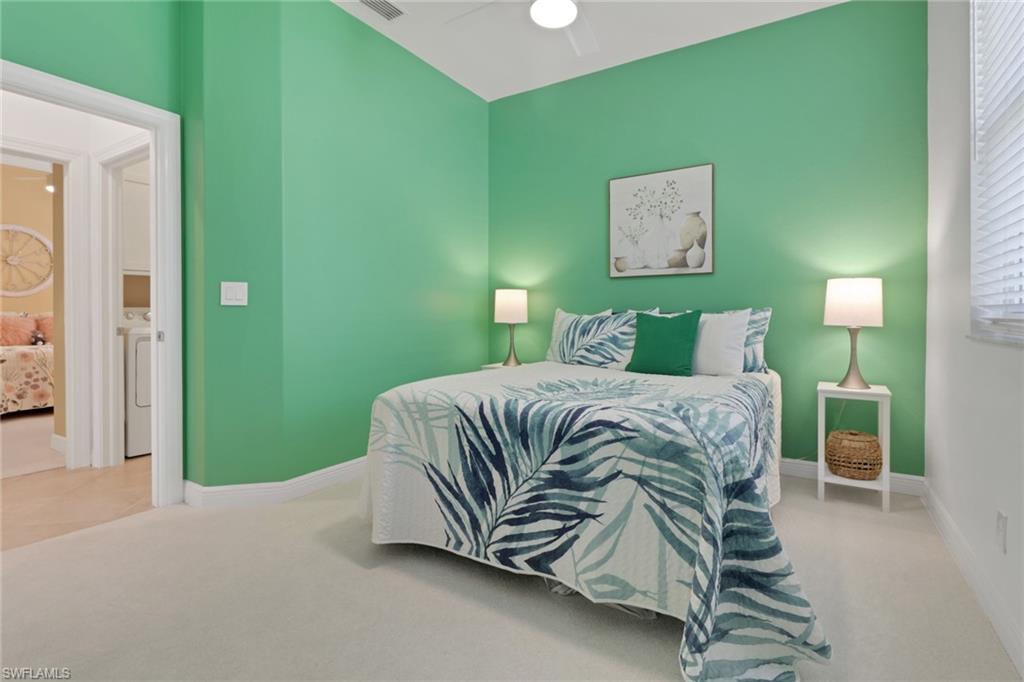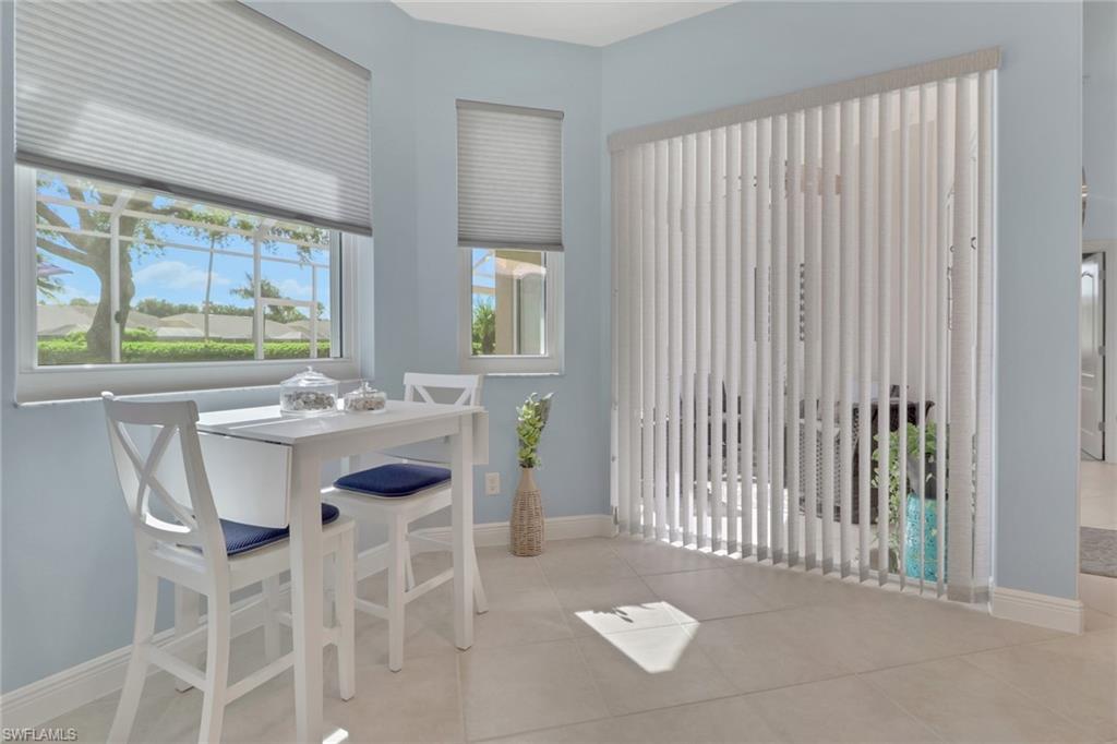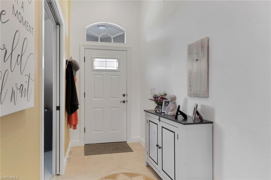 From the moment you enter, you'll be struck by the fresh, clean ambiance and inviting warmth of this beautifully maintained TURNKEY home. Every detail has been thoughtfully considered, creating a space that feels both effortlessly elegant and comfortably livable. Nestled on a lushly landscaped corner lot with tranquil lake views, this home blends style, function, and serenity in one of Naples’ most sought-after communities. Step onto the oversized screened lanai and unwind in the brand new Wellis hot tub (with privacy curtain), an ideal spot to enjoy peaceful water views and gentle breezes. Inside, the home showcases a true pride of ownership, with updates designed to enhance both beauty and peace of mind: a new roof, gutters, A/C system, water heater, and impact-resistant windows. The kitchen has been reimagined with taste and functionality in mind featuring refaced cabinetry, granite countertops, a new sink, garbage disposal, and all new appliances. Soft, new carpeting flows throughout the bedrooms, while the updated primary bathroom and laundry room reflect a crisp, modern style. Creative touches are found in every room from custom window treatments (opening from the top for privacy), new ceiling fans, to a reconfigured walk-in closet and a statement making new front door. The insulated garage adds further comfort and efficiency. Located in a top rated school district and just minutes from beaches, shopping, dining, and entertainment, this home offers a rare combination of thoughtful design, fresh appeal, and move-in-ready convenience. Welcome home to a space that feels as good as it looks, inside and out.