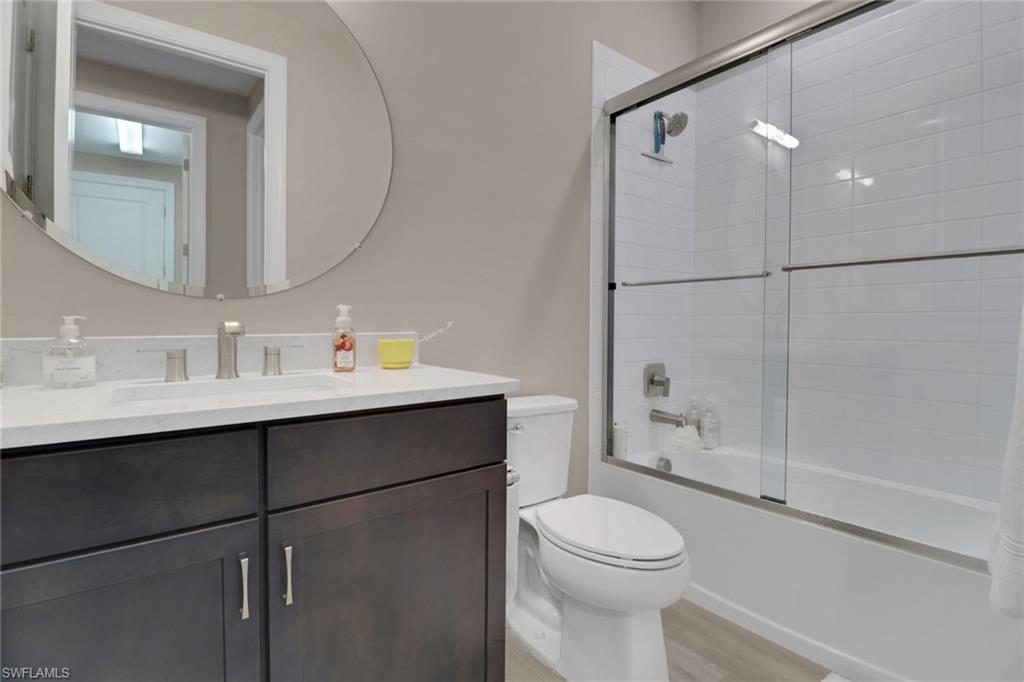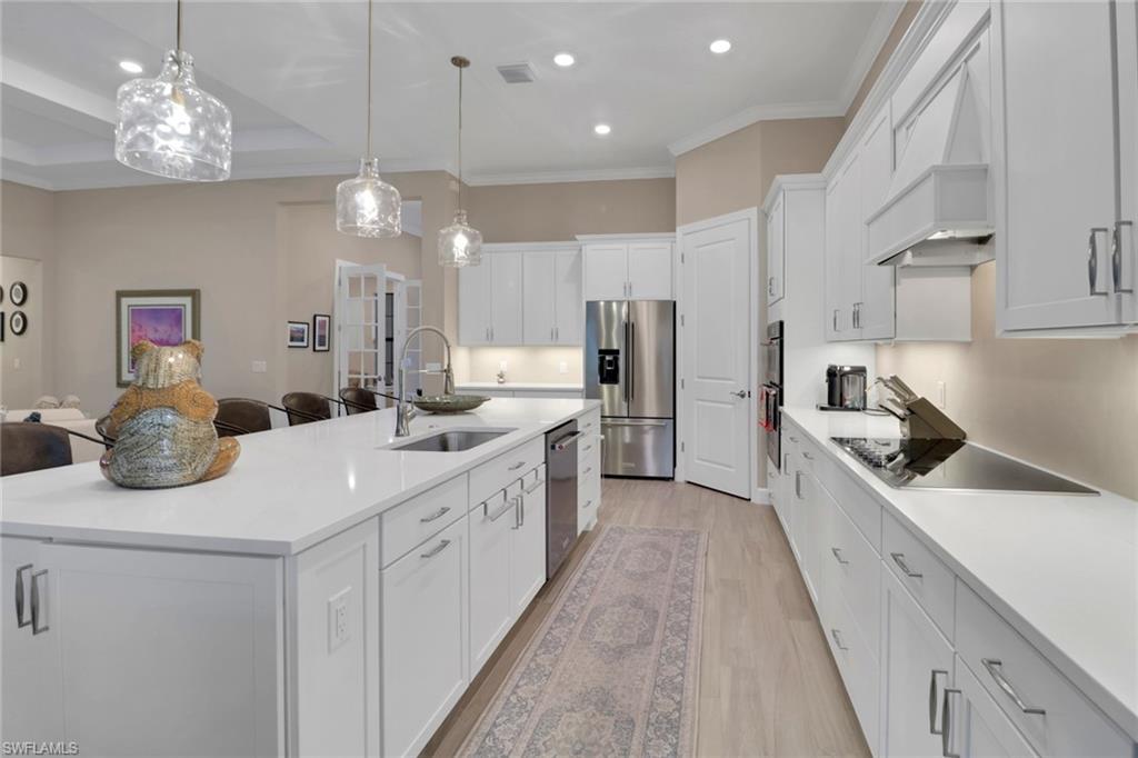 Within the sought-after community of Corkscrew Shores, this award-winning Pinnacle floor plan offers 3 bedrooms, 3 full baths, and a den in a wide-open layout designed for both comfort and style. Ideally located just steps from the main pool, restaurant/bar, and community amenities, this home blends convenience with resort-style living. Originally designed with timeless, neutral finishes, the home provides a versatile backdrop to suit any personal style. In the main living areas, you’ll find wood-look porcelain plank tile, coffered ceilings, and elegant crown molding. The owner’s suite features an impressive custom-built closet, while the well-appointed laundry room adds plenty of storage. A welcoming glass double-door entrance sets the tone from the moment you arrive. The 4’ extended garage, complete with an epoxy floor, provides extra space for vehicles, storage, or recreational gear. Outdoors, the expansive covered lanai offers ample room to add a pool or spa. Exterior highlights include partial stone accents, beautiful landscaping, and sidewalks for easy strolls through the neighborhood. Built by Pulte Homes, Corkscrew Shores is an exceptional neighborhood surrounded by natural preserves and centered around a sparkling 240-acre lake, where only electric, wind, or manually powered boats are permitted. The community offers an unmatched amenity package with no CDD fees, including a resort-style pool and spa, fitness center, movement studio, massage room, sports courts (basketball, bocce, pickleball, and tennis), playground, fishing pier, walking trails, and the on-site Captain’s Club restaurant and sports bar. Registered golf carts are also welcome for licensed drivers. This one-owner home has been meticulously maintained and is ready to welcome its next chapter.