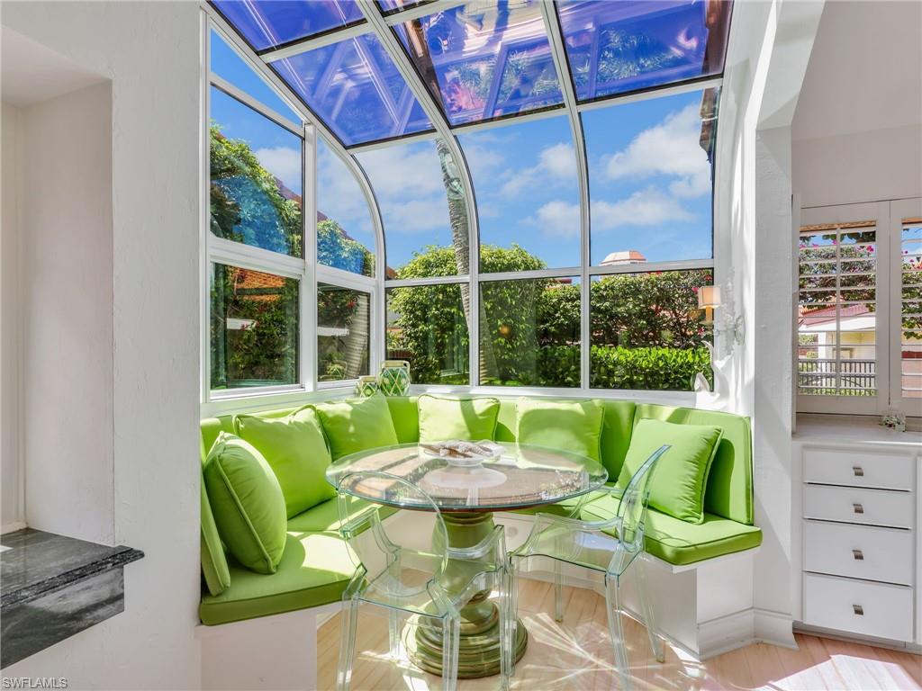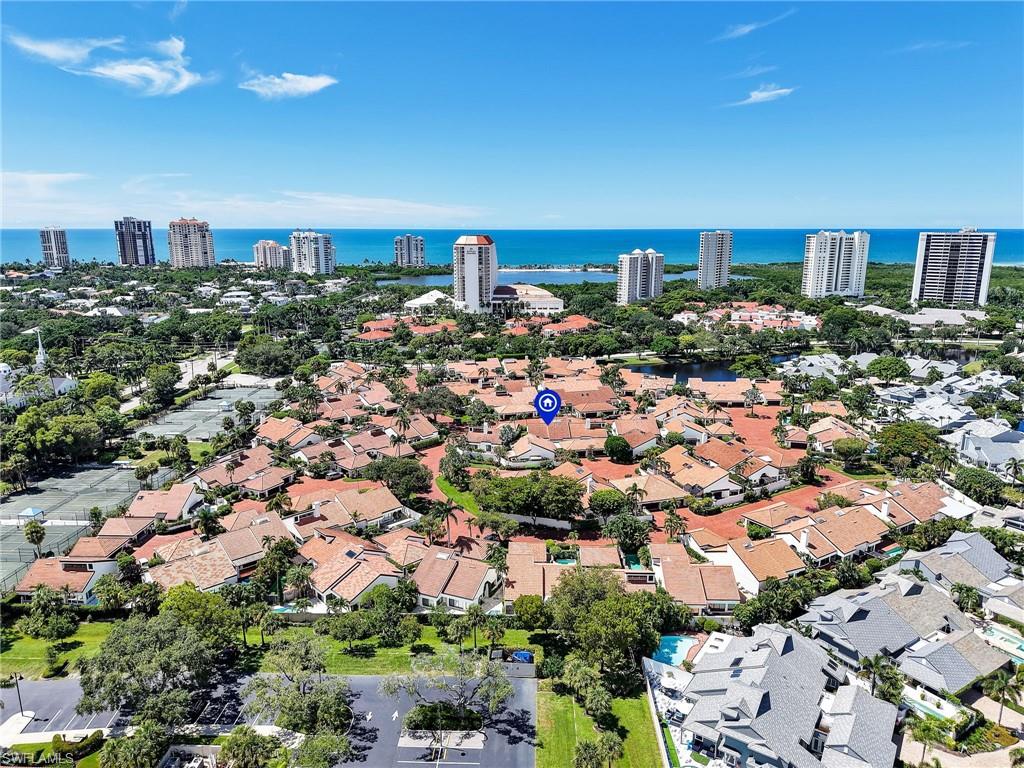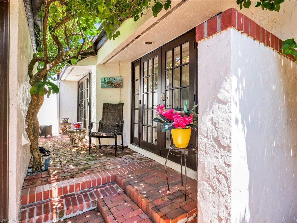Welcome to your private tropical oasis! Nestled in the hidden gem of Bay Villas within Pelican Bay, this 3 bedroom, 2 bathroom villa offers bright and airy living spaces. French doors open from every room to a private landscaped courtyard with an expanded brick-paver patio and private heated pool & spa, creating the perfect setting for indoor-outdoor living! Entertain with ease in the custom outdoor kitchen featuring a built-in grill, beverage fridge, ice maker, sink, and stylish tile finishes. Surrounded by lush landscaping, this resort-style space also includes a private outdoor shower for the ultimate tropical retreat. Inside the villa, soaring vaulted ceilings & walls of windows add tons of natural light throughout the living spaces. Offered turnkey furnished with numerous upgrades, this home features coastal décor & furnishings, wood floors, plantation shutters, custom cabinetry, built-in entertainment center, specialty lighting, custom mirrors, paddle fans, and Sonos sound bars in the living room & primary bedroom. Bathed in natural light, the kitchen boasts a charming breakfast nook with built-in seating, sophisticated stacked white cabinetry with illuminated glass-front uppers, under cabinet lighting, cooktop with slide-in oven, stainless steel dishwasher, and a NEW stainless steel refrigerator (2025). A separate dining area with a custom dry bar including a beverage fridge & a separate wine cooler makes entertaining effortless. The private primary suite is a true retreat with floor-to-ceiling sliding glass doors overlooking the courtyard gardens. The spa-style primary bathroom features a designer glass tile shower with frameless glass door, dual vanities with makeup area, custom mirror, skylight, Toto toilet, and a large walk-in closet with custom built-ins. The 2nd bathroom includes a glass enclosed floor to ceiling tile shower, Toto toilet, custom mirror, and glass vessel sink. Additional notable features include a spacious 2-car garage with abundant built-in storage, newer roof (2019), newer garage roof (2020), A/C (2020), and a laundry room with ample cabinets & utility sink. As a Pelican Bay resident, enjoy exclusive access to nearly THREE MILES OF PRIVATE BEACHFRONT with two beachfront restaurants, chair and umbrella service, kayaks, sailboats, paddle boards, and a convenient tram system for easy access. The community also features world-class tennis with 18 Har-Tru courts and is expanding with a NEW RACQUET CENTER that will include 8 additional Har-Tru courts and 20 PICKLEBALL COURTS! Additional amenities include a state-of-the-art fitness and wellness center, a vibrant Community Center with an art studio, card rooms, and versatile meeting spaces, plus beach fitness classes, lifestyle events, and over 80 acres of scenic parks, nature trails, and bike paths. Perfectly located near Waterside Shops, Artis–Naples, and Mercato, Pelican Bay offers the ultimate Naples lifestyle—don’t miss this rare opportunity!