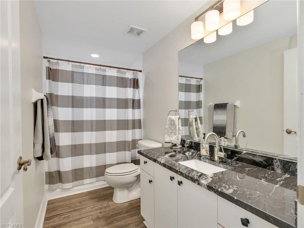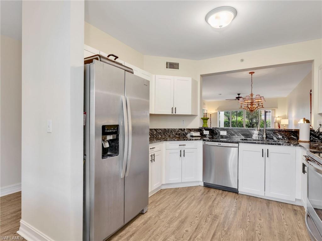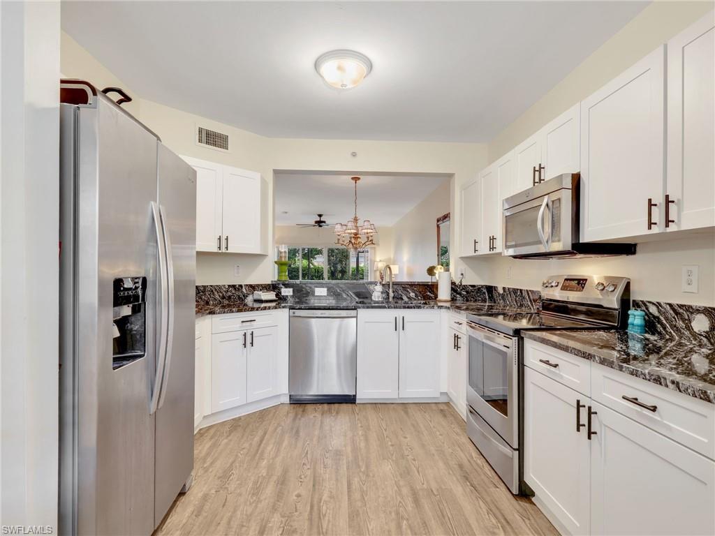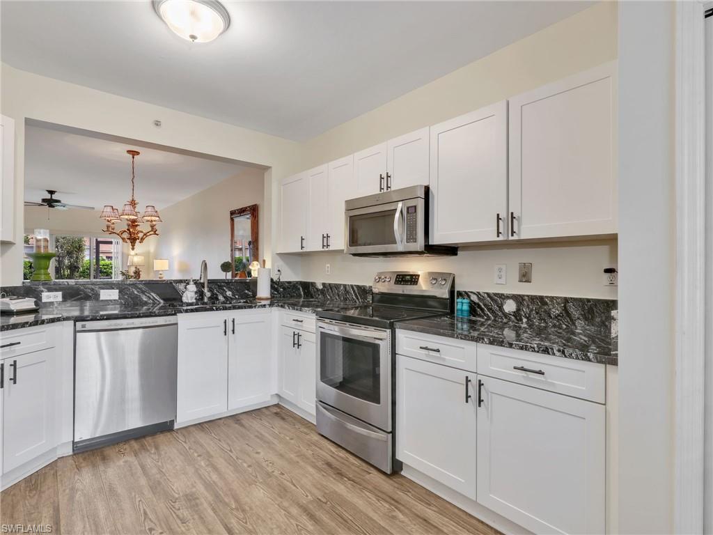 This inviting first floor condo is located in the community of Blue Heron in Naples, Florida. Offering a comfortable blend of functionality and style, this residence features 3 bedrooms and 2 bathrooms, designed with thoughtful updates. Inside, the main living areas and the primary bedroom feature vinyl flooring, adding both durability and modern appeal. The updated kitchen is a highlight of the home, offering stainless steel appliances and granite countertops, creating an efficient space for cooking and entertaining. The bathrooms also carry the same granite finishes, tying the home’s updates together with a consistent and polished look. The primary suite is designed with comfort in mind, featuring a spacious bedroom with vinyl flooring, dual sinks in the ensuite bathroom, and a layout that promotes both privacy and convenience. Two additional bedrooms allow flexibility for guests, a home office, or hobby space, making the condo well suited to a variety of lifestyles. Step outside to the screened-in lanai, perfect for enjoying quiet mornings with coffee or relaxing evenings while taking in the peaceful surroundings of the community. The ground floor location provides easy access and convenience, with no stairs to navigate. Located in central Naples, this condo offers excellent proximity to shopping, dining, golf courses, and the area’s renowned beaches. Downtown Naples and Fifth Avenue are just a short distance away, providing access to cultural attractions, fine dining, and entertainment. Major roadways are nearby, making it easy to navigate to other parts of Southwest Florida as well.