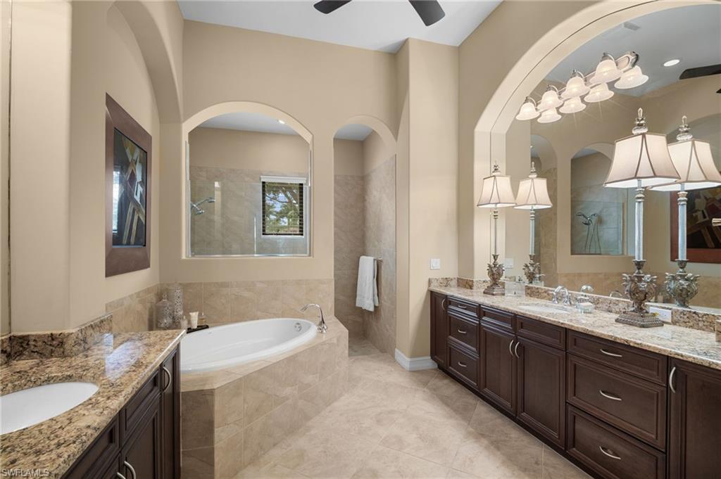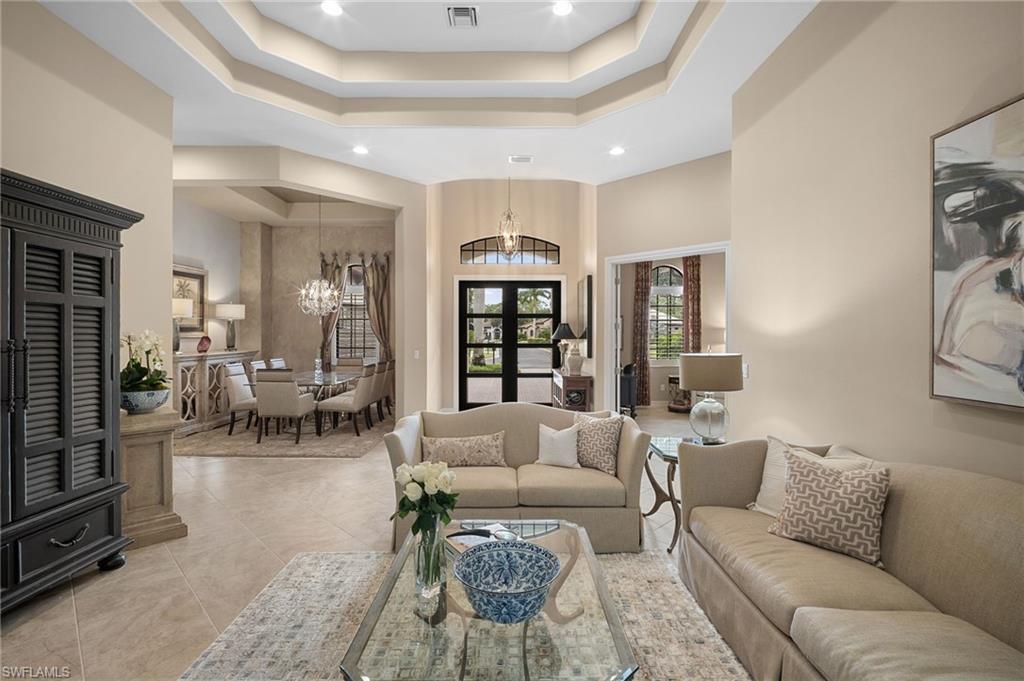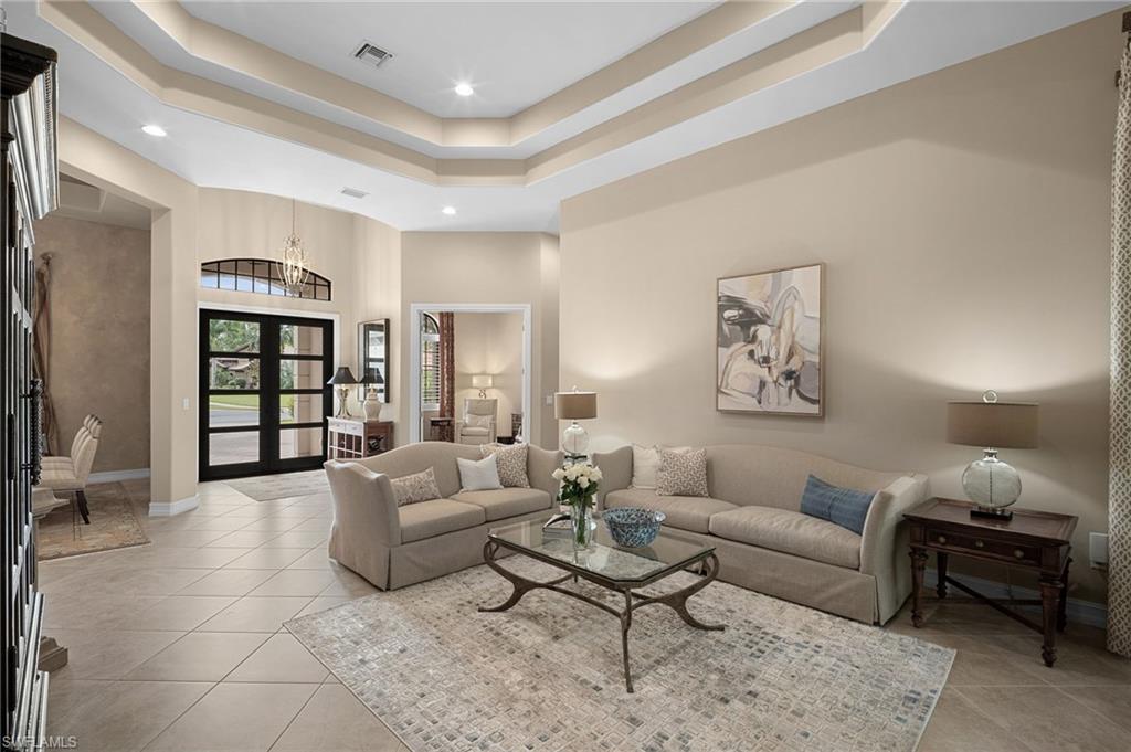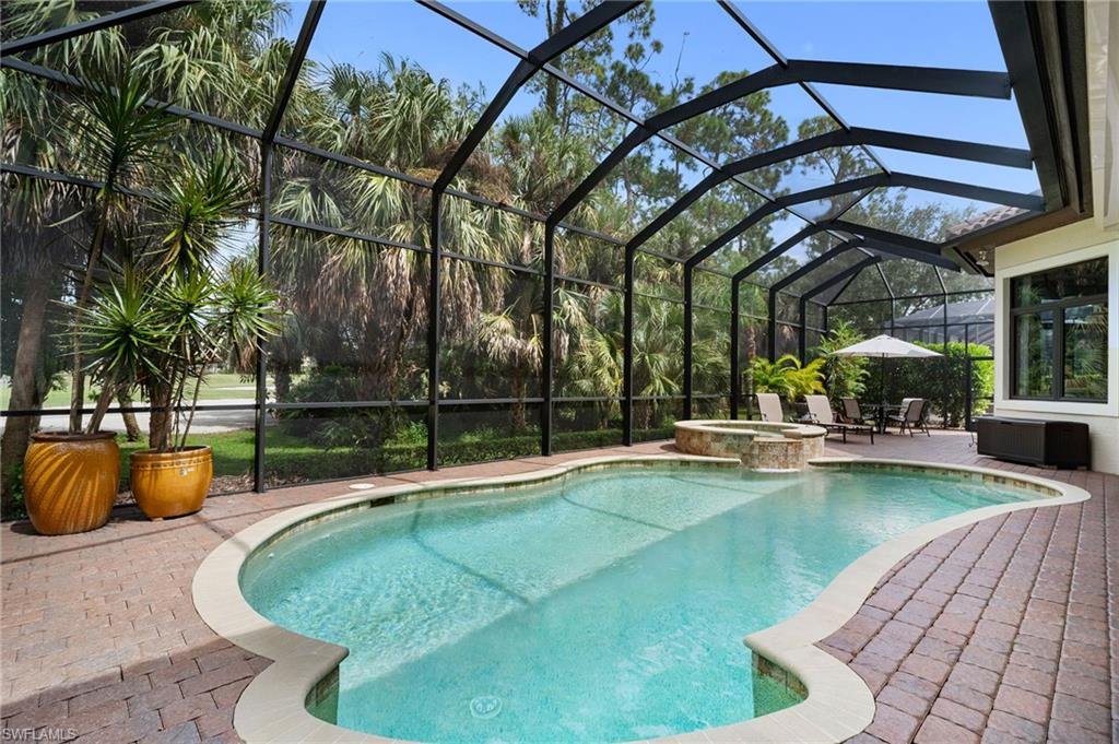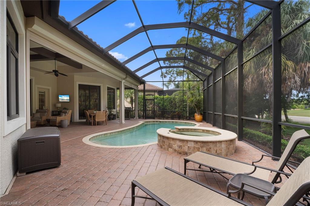 Experience Luxurious Golf Course Living in Lely Resort Welcome to an exceptional opportunity in the prestigious, gated community of The Classics at Lely Resort in Southeast Naples. This beautifully designed Greenbriar model by Stock Development offers refined Florida living with elegant finishes, expansive living spaces, and unparalleled golf course views. From the moment you step through the custom iron and glass French doors, you are greeted by soaring 14-foot dual tray ceilings and diagonally laid tile floors that set the tone for the home’s gracious design. The open-concept layout flows seamlessly through the main living areas, filled with natural light from the ten-foot glass doors that open to an extended lanai overlooking the 14th hole of the renowned Classics golf course. The chef’s kitchen features granite countertops, custom cabinetry, and a spacious dining alcove that opens to the family room—perfect for entertaining. A wall of windows, framed by elegant custom drapery, allows daylight to illuminate the home beautifully throughout the day. The primary suite is a private retreat with lanai and pool access, dual walk-in closets, and a luxurious en-suite bath with granite-topped dual vanities, a large glass-enclosed shower, and a separate linen closet for extra storage. Two additional guest rooms are situated in a separate wing and share a well-appointed bathroom, while a third full bath opens directly to the lanai—ideal for guests enjoying the pool. Additional features include: Fully equipped laundry room with access to a side-load three-car garage (includes a second refrigerator), New dual-zone A/C systems, 2019 updates including a new roof, exterior paint, gutters, lighting, and Roll-Secure electric storm shutters! Residents of The Classics enjoy exclusive membership to the Players Club & Spa, offering: Resort-style pools and lap pools, Pickleball and tennis courts, State-of-the-art fitness center and wellness programs, Onsite dining at the Tiki Bar & Grill and Players Club Restaurant, A dynamic calendar of social events! Just minutes from downtown Naples and Marco Island, with easy access to fine dining, shopping, white-sand beaches, and world-class entertainment, this exquisite home offers the best of luxury resort living.