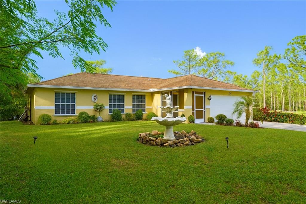 Welcome to your dream home in Golden Gate Estates! This stunning single family home boasts 3 bedrooms, 2 bathrooms, and a spacious 2 car garage. The modern kitchen features stainless steel appliances. Situated on a generous 1.14 acres of land, this property is a nature lover's paradise with lush fruit trees and a fenced yard for added privacy. Enjoy the beautiful Florida weather from the comfort of your screened lanai, perfect for entertaining guests or simply relaxing with a cup of coffee in the morning. The location of this home is unbeatable, just minutes away from Randall and Everglades, offering easy access to shopping, dining, and entertainment options.