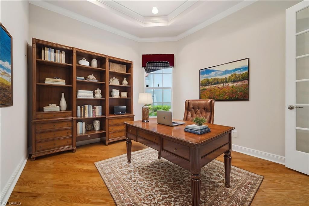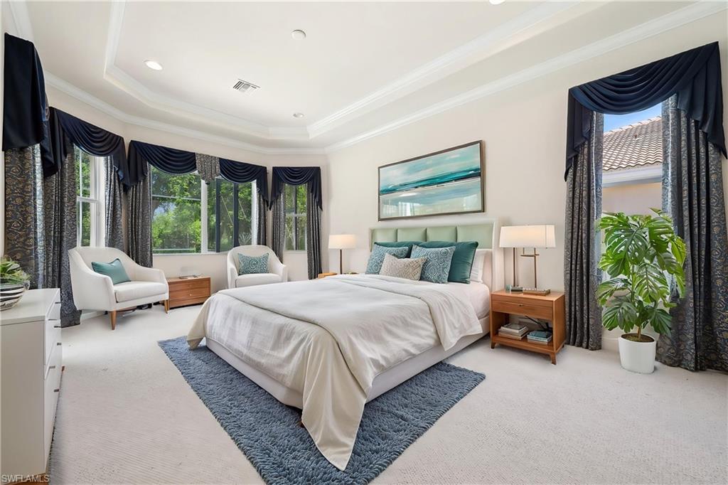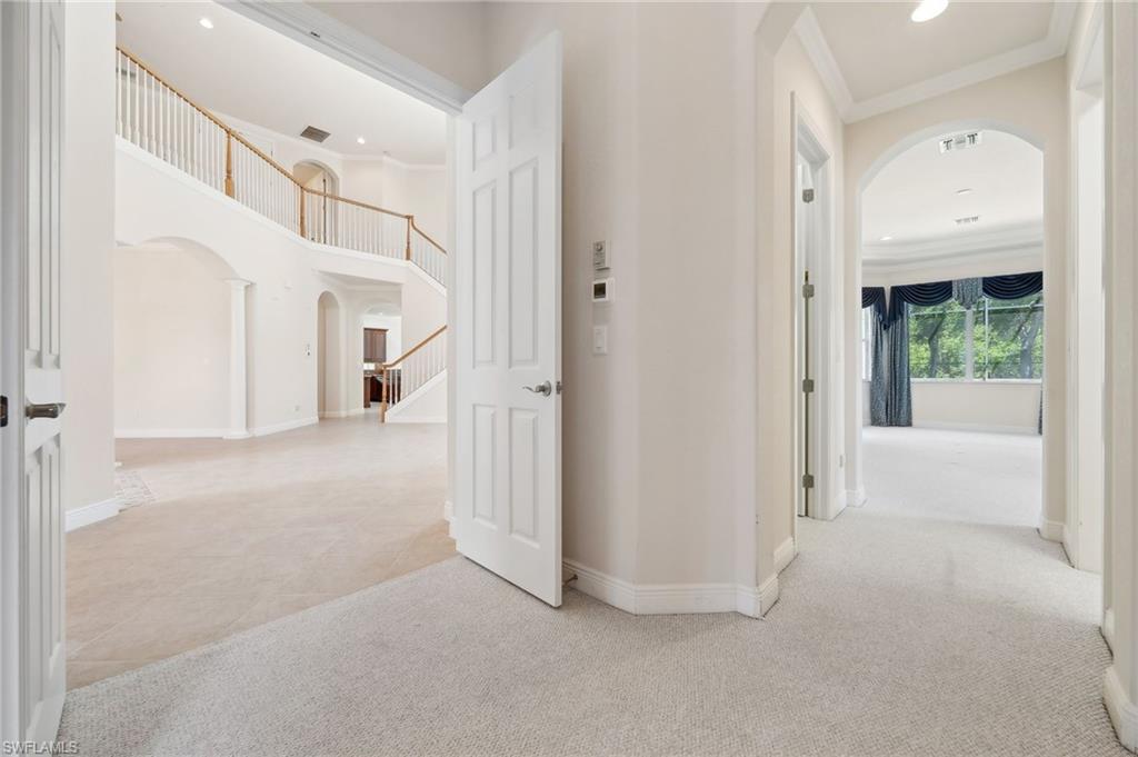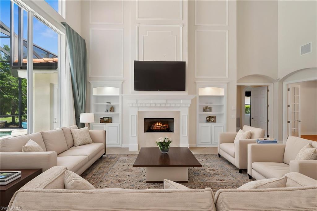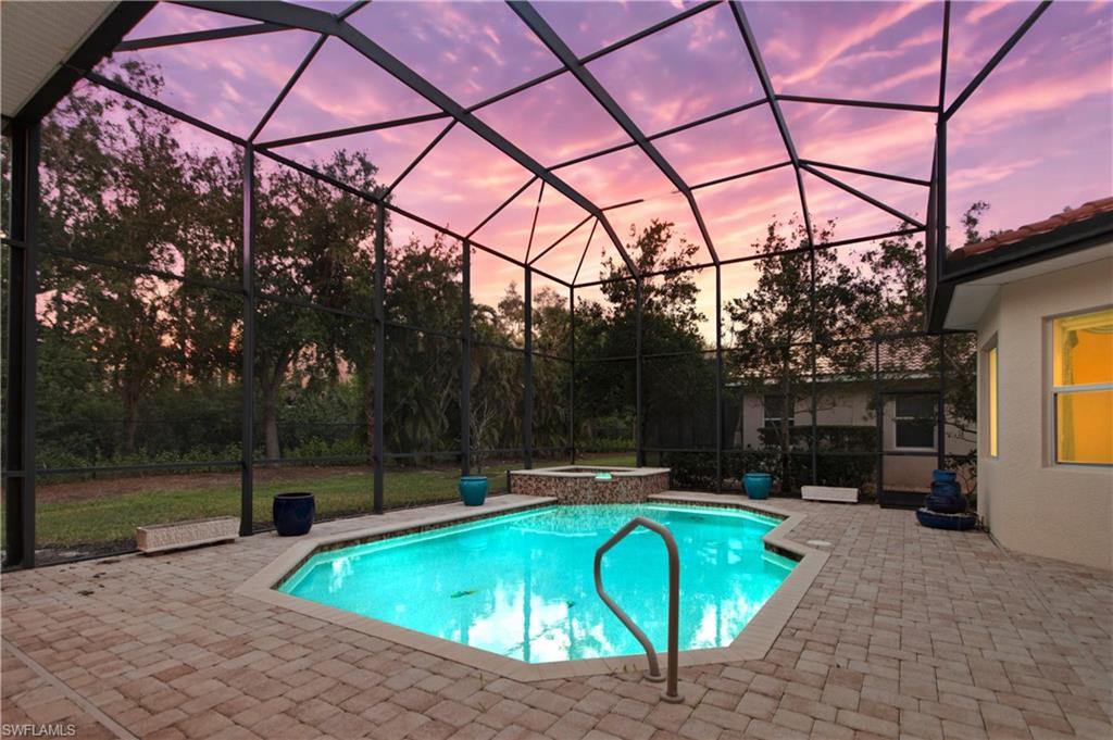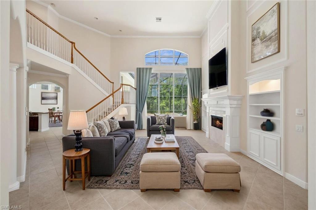 NO FLOOD ZONE HERE, WHAT AN UNBELIEVABLE PRICE PER SQ FT. FOR A POOL HOME WITH IMPACT WINDOWS AND DOORS! Experience refined elegance and comfort in this beautifully appointed Toll Brothers Diplomat model, ideally situated on a private preserve lot in the prestigious community of Belle Lago. With over 4,300 sq. ft. of living space, this thoughtfully reimagined floor plan offers 4 bedrooms + den, 4 full bathrooms, and 2 half baths—perfectly balancing luxury with functional living. From the moment you step inside, soaring 22-foot ceilings and a grand cascading staircase create an impressive welcome. The main level is anchored by a spacious great room and chef-inspired kitchen featuring granite countertops, a unique window backsplash, stainless steel appliances, and a large center island ideal for gathering. Adjacent is a stylish wet bar, making this home an entertainer’s dream. Designed for multigenerational or extended living, this home includes both a GROUND FLOOR MASTER SUITE, GROUND FLOOR ENSUITE GUEST BEDROOM and a SECOND MASTER SUITE UPSTAIRS, each offering private baths and generous closet space. A ground floor private office and 2 half baths offer versatility and plenty of room to never use the upstairs if guests aren't in town. Elegant finishes throughout include diagonally laid tile and wood floors, coffered ceilings, upgraded lighting, and architectural detailing throughout. Additional upgrades deliver peace of mind and modern comfort, including IMPACT WINDOWS & DOORS, 3 NEW A/C UNITS, and a NATURAL GAS FIREPLACE. Step outside to a tranquil, covered lanai with a serene PRESERVE VIEW, a heated pool and spa, and a NATURAL GAS connection ready for a summer kitchen—perfect for outdoor dining and entertaining. Belle Lago is an upscale, amenity-rich community offering a zero-entry resort-style pool, 4 Har-Tru tennis courts, pickleball, bocce ball, a fitness center, billiards room, children's play area, and a scenic boardwalk through a protected nature preserve. Optional golf memberships including reciprocal rights are available through the neighboring Estero Country Club, accessible via private cart path. Centrally located near Coconut Point, Miromar Outlets, Gulf Coast Town Center, RSW Airport, and Barefoot Beach, this home offers a lifestyle of luxury, privacy, and convenience in one of Estero’s most desirable communities.