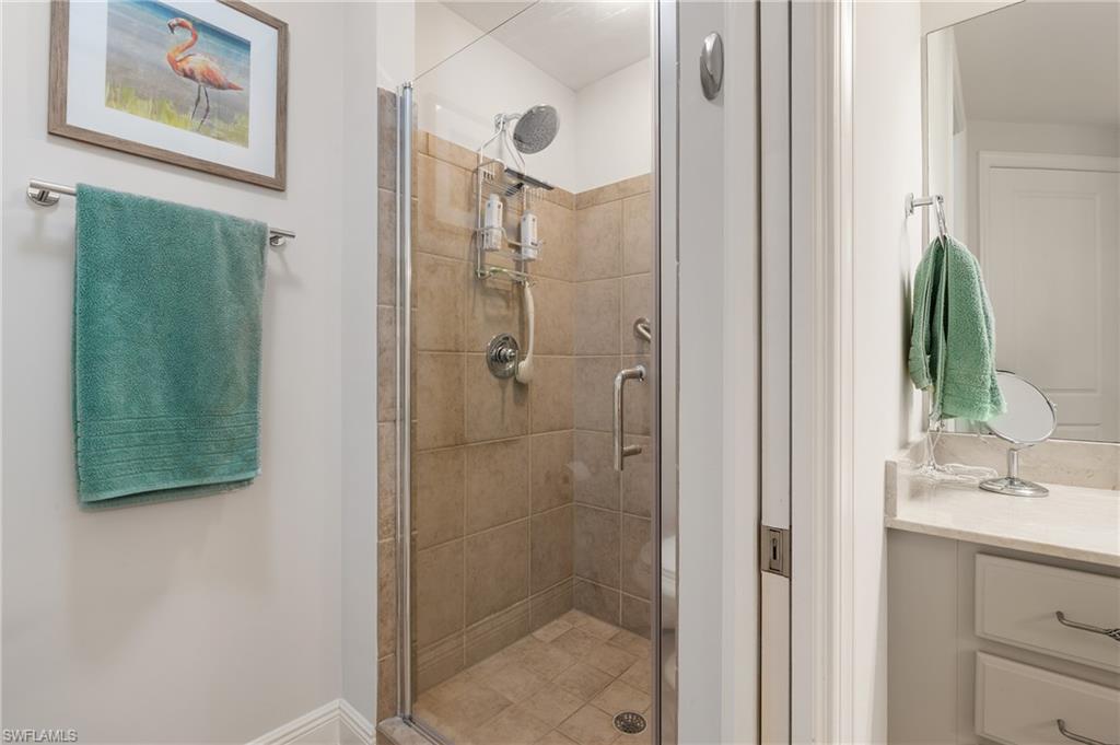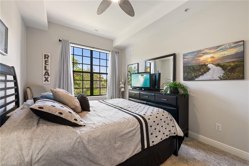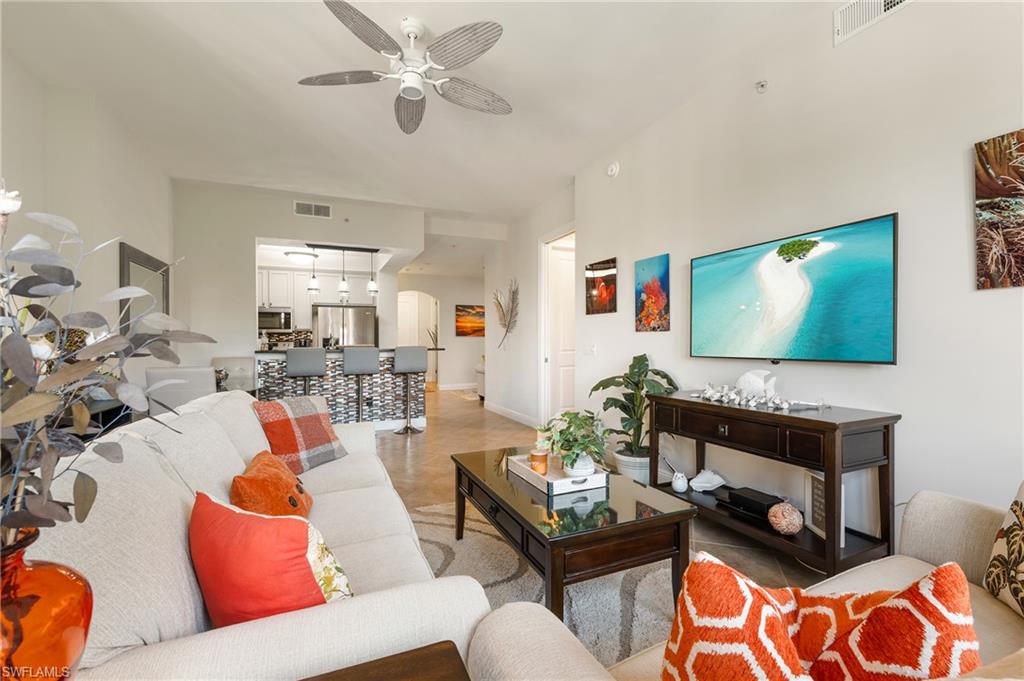 Step into modern elegance with this sharply decorated TURNKEY 2-bedroom, Den, & 2 full-bath residence in the highly sought-after Residences at Coconut Point. It's a must see! This second-floor sanctuary showcases SOARING 10’ ceilings, 8’ solid wood doors, and diagonally laid tile floors, creating an airy and timeless sense of sophistication. Within the past two years, nearly every detail has been refreshed — including new kitchen appliances, washer and dryer, ceiling fans, cushioned bedroom carpeting, and freshly painted walls and cabinetry. There is an abundance of NATURAL LIGHT! The open layout flows seamlessly to a generously sized, tiled private balcony through impact-rated sliding glass doors....perfect for enjoying the Florida lifestyle year-round. The primary suite is a true retreat, featuring dual vanities, a glass-enclosed shower, oversized soaking tub, and a vast walk-in closet. A split-bedroom layout provides privacy, with the secondary bedroom offering ample space for guests or a home office and its own ENSUITE bath. Enjoy a resort-style lifestyle with community amenities including a sparkling pool and spa, state-of-the-art fitness center, community room, BBQ area, bike storage, and a vehicle wash station. HOA fees cover premium cable, high-speed internet, water, sewer, and trash service—plus this unit includes two parking spaces, one of which is reserved (#25) right under your building. This community offers unbeatable CONVENIENCES: walk right out your door & into all The Coconut Point Mall has to offer....outstanding restaurants, coffee shops, salons & exceptional shopping, all while being minutes from Hertz Arena, RSW International Airport, I-75, and stunning sunsets on Bonita & Barefoot beaches!