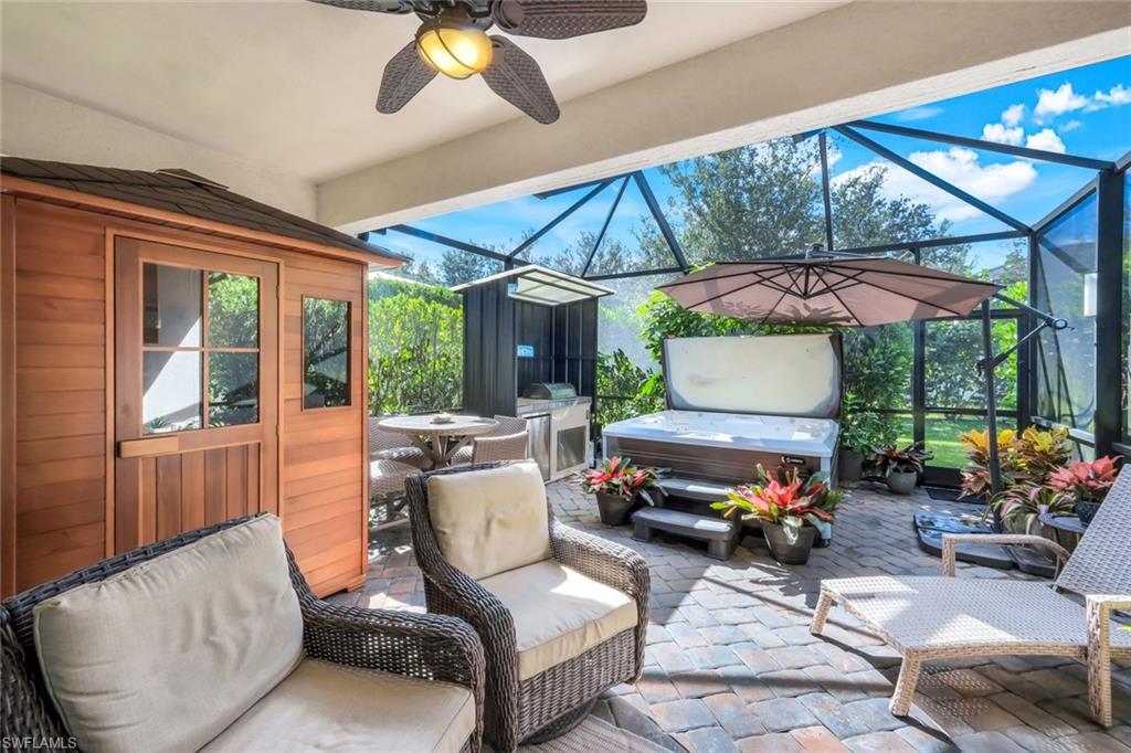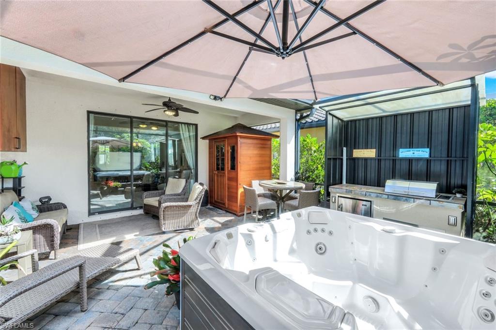 LUXURY LIVING MEETS EVERYDAY COMFORT in this stunning 3-bedroom, 3-bath home with over 1,800 sq. ft. of open-concept living in one of the area’s most sought-after school districts. The spacious great room flows seamlessly into a chef-inspired kitchen featuring new KitchenAid appliances and designer details throughout, including custom moulding, wainscoting, shiplap, and mirrors. The primary suite boasts custom closets, while the laundry room has been upgraded with added cabinetry and a console sink. Step outside and enjoy your private outdoor sanctuary with an extended lanai, Hot Springs saltwater hot tub, outdoor sauna, outdoor kitchen with custom awning, and outdoor TV with custom cabinet—all surrounded by lush landscaping and accent lighting. Practical upgrades include a new hot water heater, epoxy-coated garage floor, freshly painted garage interior, custom garage cabinets, bike racks, slat wall, and pull-down attic stairs with floored storage. Located minutes from renowned beaches, fine dining, shopping, and recreation, this home combines everyday comfort with the feel of a luxury retreat. BE SURE TO SEE THE VIDEO TOUR LINK!