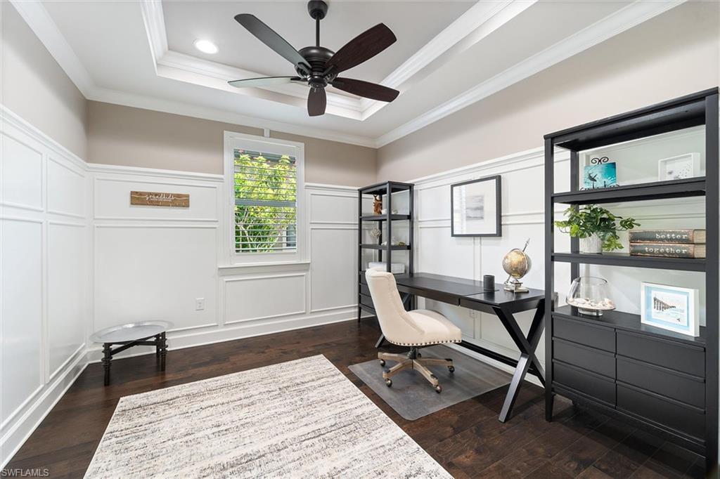 Welcome to this beautifully maintained three-bedroom, two-bath home offering 2,036 square feet of living space on a private lot. Built in 2016, this residence combines thoughtful design with modern upgrades for comfortable living and entertaining. Go inside to find elegant millwork details throughout the home, enhancing its character and charm. The spacious floor plan flows seamlessly, creating a warm and inviting atmosphere. The heart of the property is the saltwater pool with heater, complemented by solar panels for energy efficiency, ideal for year-round enjoyment. Additional highlights include two-car garage plus golf cart bay with stacking capability, open, light-filled living areas, and a private lot with serene outdoor space. This home has it all—style, comfort, and functionality—set in a desirable location. Residents of Greyhawk enjoy two clubhouses with dining, resort and lap pools with spa, a tiki bar, state-of-the-art fitness center, card rooms and a fire pit. Recreational amenities include bocce, pickleball and tennis, led by a full-time sports director. A lifestyle director curates a year-round calendar of events. With no community development district fees, no special assessments, and low homeowners association and golf fees, Greyhawk offers value and choice with social or full golf memberships available.