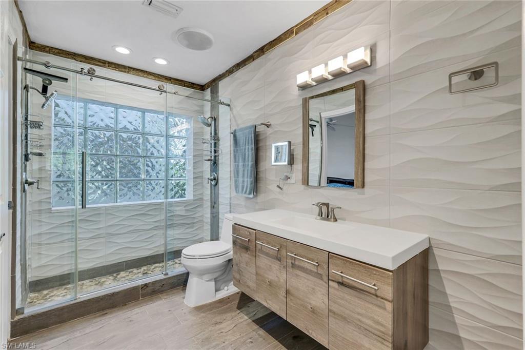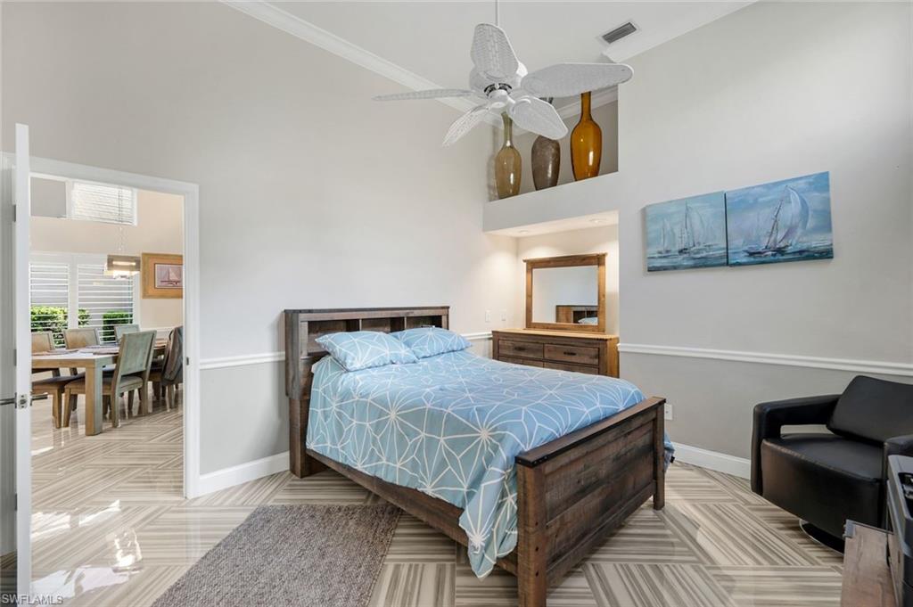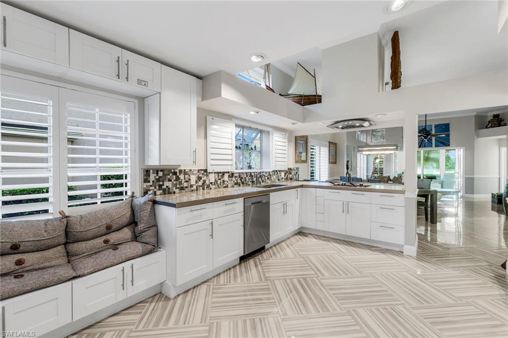 Can be purchased turnkey furnished!!!! Welcome to The Crow’s Nest, the coolest home in Quail Creek Village, and easily one of the most unforgettable homes in all of Naples. Strategically redesigned and rebuilt over nearly eight years, this 3 bedroom, 2.5 bath residence is the result of a true labor of love, combining contemporary chic design with a luxurious resort like atmosphere. One of a kind details have been carefully incorporated to create the ultimate lifestyle, starting in the modern chef's kitchen. Poured in place, thick concrete countertops, an induction hibachi cooktop with its own advanced vent hood, Samsung appliances, and extraordinary amounts of cabinetry check every box for both design and function. The open concept living space, made possible by demolishing and reconfiguring the original floor plan, is perfect for all sorts of gatherings and relaxed everyday living. Natural light floods the great room through plantation shutters, while crown molding and diagonally laid tile highlight the home’s blend of timeless and trendy elements. The newly built western facing addition is your canvas for a potential media room, stunning home office, or to be used how it is currently as a conversation sunroom where laughs are shared and views are enjoyed; this space can also be closed off from inside through French doors for true ‘al-fresco’ living. Onto the lakeside outdoor paradise, the tiled patio is fully loaded with furnishings, a gas firepit, a motorized sun awning, and electric shades and screens with sunsets even more remarkable than the gorgeous interior. The owner’s private sanctuary suite features a spa inspired bath with dual rain showerheads, a soaking jet tub, floor to ceiling tilework detail, a European style bidet, and even an electric fireplace. Guests enjoy equally inviting accommodations with two bedrooms and an eloquent bathroom setup with double showers, scalloped accent wall tile, a floating vanity, and ample closet space. The renovation’s new golf cart garage provides room for two cars and a golf cart as well as the home’s extended paver driveway. The Crow’s Nest comes complete with curated furniture, original one of one artwork, decor, kitchenware, televisions, fireplaces, and yes, even the golf cart. Exclusively located within the Quail’s Nest enclave of Quail Creek Village, you will enjoy access to a private cabana and pool steps away which only 53 properties can take advantage of. Homeowners also have the privilege of Social Membership included in the fees with unlimited summer golf, reciprocal play, bocce, tennis, pickleball, and social events at the redone clubhouse. With a proven history as a seasonal rental, this could also be an exceptional opportunity for investors seeking upside potential. Bring your clothes, toothbrush, and step into an unparalleled, resort like lifestyle. EXTENSIVE UPGRADE LIST IN SUPPLEMENTS!