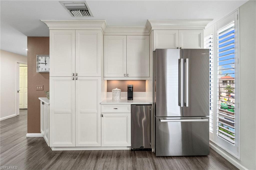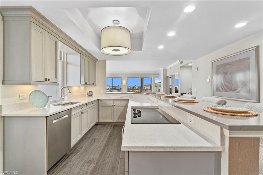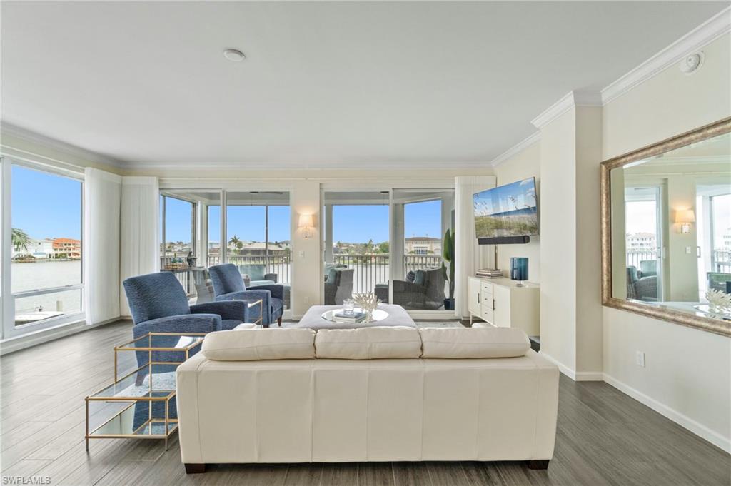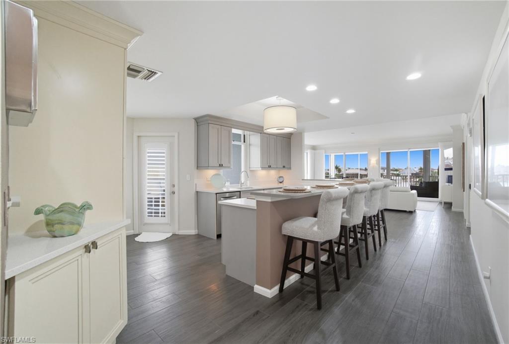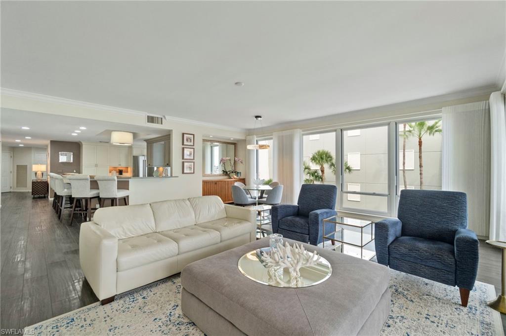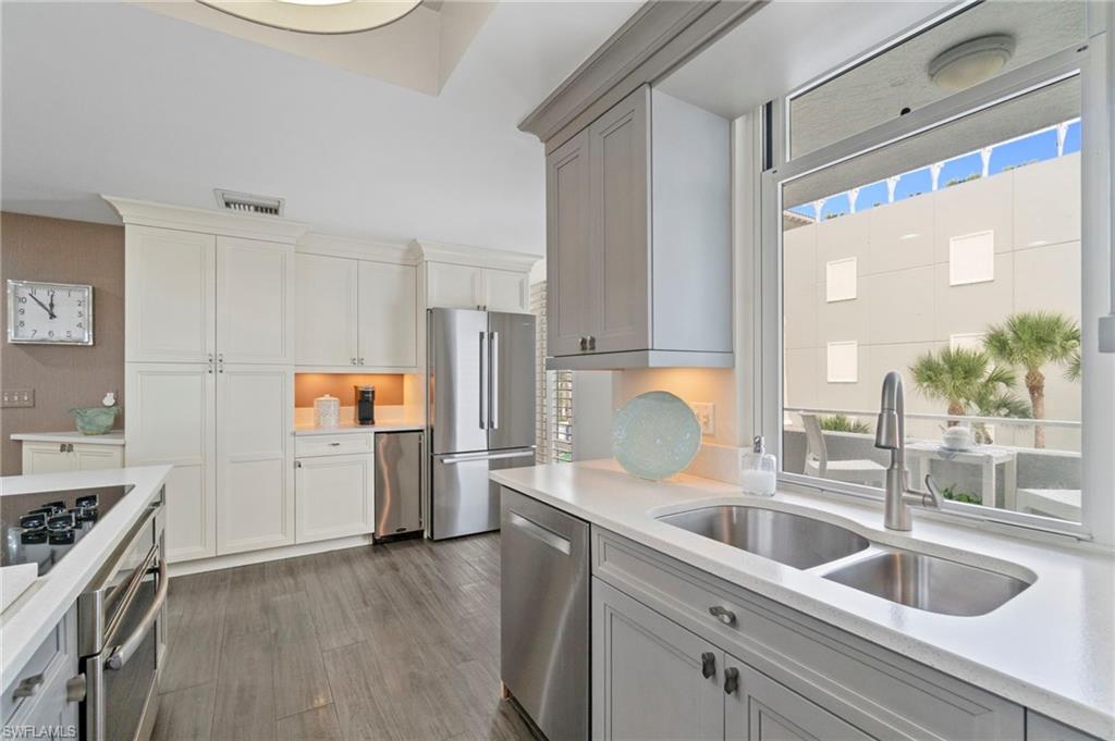 Experience luxury coastal living in this rarely available Le Dauphin end unit condo, offering sweeping panoramic views of Vanderbilt Bay with deeded beach access. The unit also has access to a private beach club. Beautifully renovated and meticulously maintained, this spacious 3-bedroom, 2.5-bathroom residence spans 2,245 square feet and is filled with natural light, thanks to floor-to-ceiling windows and an open-concept layout designed to capture the beauty of the surrounding landscape. This residence features three private outdoor terraces, each offering distinctly different views — from breathtaking sunrises over the bay to peaceful evenings by the Gulf. The gourmet kitchen is a showpiece, equipped with stainless steel appliances, quartz countertops, designer finishes, and bar-top seating for six, perfect for both casual dining and entertaining. Elegant ceramic tile runs throughout the main living areas, while the primary bedroom is a tranquil retreat with plush carpeting, a large walk-in closet, and a spacious ensuite bathroom featuring a frameless glass shower and dual vanities. Le Dauphin is a boutique waterfront community offering exceptional amenities, including a private heated pool overlooking the bay, tennis courts, boat slips, an outdoor kitchen and dining area, and a fully renovated lobby. Pet lovers, services animals allowed upon request with proper documentation. Residents also enjoy secure indoor garage parking and additional air-conditioned storage space. For peace of mind, the building has received a satisfactory structural milestone inspection, certified through the year 2034. Located adjacent to the prestigious LaPlaya Beach and Golf Resort, this home is within walking distance to upscale waterfront dining at Baleen and The Turtle Club, and just minutes from the shops, restaurants, and nightlife of Mercato. This is a rare opportunity to own a luxurious coastal residence in one of North Naples’ most desirable and prestigious neighborhoods — ideal as a full-time home or a refined seasonal getaway.