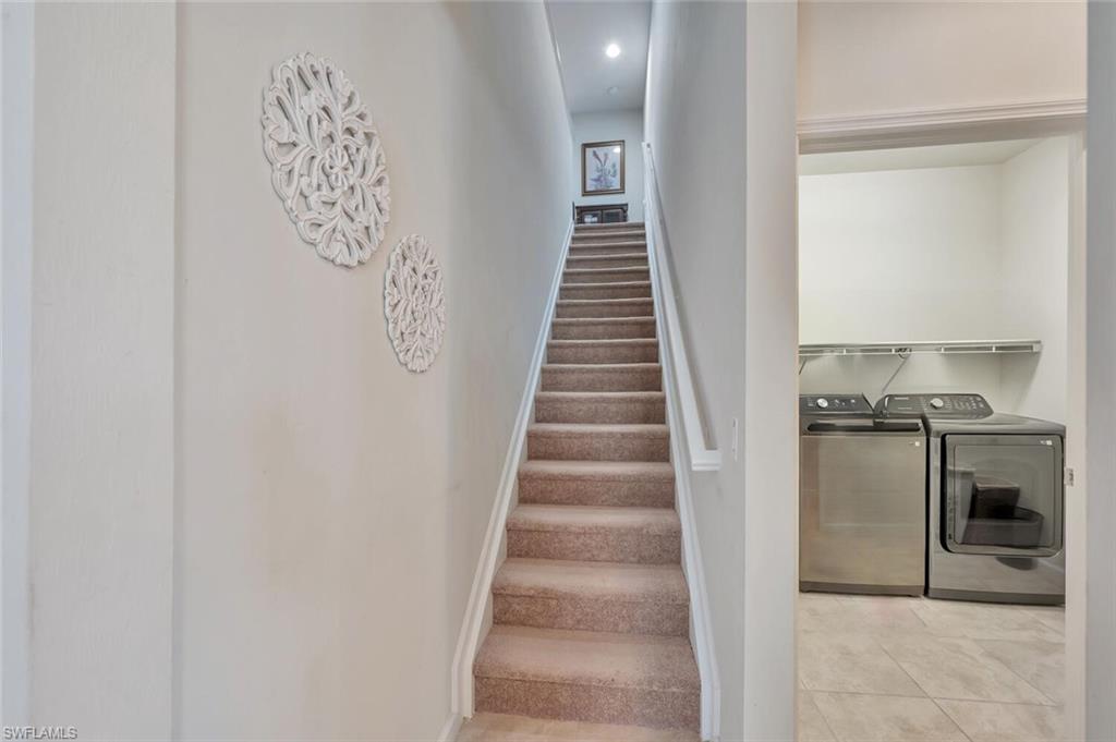 Welcome to the highly desirable 55+ Premier community of Tidewater by Del Webb! Great value for space, features, including location of the property on a premium and quiet corner lot, and overall livability. No CDD fees. This exceptional home offers the perfect blend of comfort, luxury, and low-maintenance living. Daily living is designed for convenience on the main floor with the owner’s suite, guest bedroom, full bath, and den/office. Upstairs, a private retreat awaits with a loft, guest bedroom, full bath, and extra storage — perfect for visiting family, a home office, or creative space. This rarely available, exclusively expanded two-story Martin Ray Loft floor plan with SPECTACULAR LAKE VIEWS offers over 2,700 sq ft of living space with 3 bedrooms + den (or optional 4th bedroom) and 3 full baths, including a spacious first-floor primary suite. This beautiful home sits on a PREMIUM CORNER LOT and a peaceful and tranquil setting in this section of Tidewater. The open-concept kitchen is a showstopper, featuring a massive island, walk-in pantry, granite countertops, 42" cabinets, gas range, stainless-steel appliances, and decorative backsplash — flowing seamlessly into the dining and living areas. This home is designed for both comfort and peace of mind and is loaded with upgrades: 8’ doors, 20x20 tile flooring, impact-resistant windows and doors, an enclosed front porch, extended lanai, and spectacular lake and fountain views. The Premium corner lot offers easy access to the clubhouse, where you’ll enjoy Tidewater’s resort-style amenities, which includes a 13,000 sq. ft. clubhouse with fitness center, movement studio, activity rooms, library, and catering kitchen. Outdoors, residents enjoy a resort pool and spa, pickleball, tennis, and bocce courts, a dog park, community gardens, BBQ grill area, and a barefoot bar. With a full calendar of clubs, classes, and social events led by a dedicated lifestyle director, there’s truly something for everyone. Beautifully maintained by its original owner, this is one of the largest single-family homes available in Tidewater, and the sought-after Martin Ray Loft makes it ideal for both everyday living and entertaining. Conveniently located near RSW International Airport, Miromar Outlets, Coconut Pointe Mall, I-75, and the sandy beaches of SWFL. This is Florida active-adult living at its finest! Be sure to view the virtual tour. Don’t miss this rare opportunity — schedule your showing today!