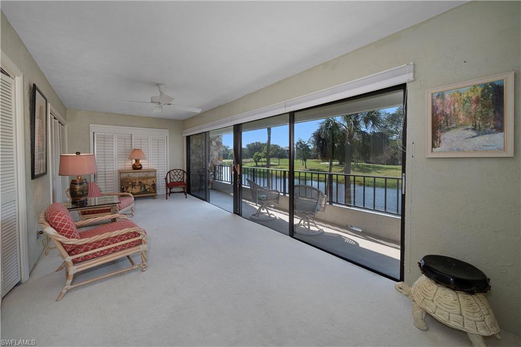 Motivated Seller, Bring Offers! Welcome to Wilderness Country Club, your paradise in the heart of Naples. Overlooking the picturesque 18th fairway, this 2-bedroom/2-bathroom unit is perfect for those seeking convenience and proximity to Wilderness’ ultimate amenities. Experience the luxury of Wilderness Country Club, a sanctuary of elegance and exclusivity. Gain immediate golf membership with no waiting list and have access to unlimited golf on an 18-hole Arthur Hills course. This unique and spacious, over 1900 sf, open plan second-floor condominium is located in close proximity to the clubhouse, 1st tee, and saltwater pool. It features expansive front-to-back views, giving the unit beautiful natural light throughout the day. The updated kitchen is outfitted with custom white raised cabinetry, neutral-toned quartz countertops, stainless steel appliances, and plantation shutters. The primary suite has a full walk-in closet, dressing area with makeup bar/office space, and a full bathroom with double sink vanity, oversized soaking tub, and walk-in shower. The guest bedroom and full guest bathroom includes an oversized vanity and tub/shower combo. Both bedrooms access the den/lanai and patio overlooking a stunning pond teeming with wildlife and views across the 18th fairway and up to the new clubhouse. This condominium, in an elevator building, includes your own golf cart and a private golf cart garage located adjacent to your reserved covered parking space. This gated paradise is an Audubon Cooperative Sanctuary set within a 200-acre forest with stunning landscaping and mature trees overhanging roadways. Wilderness Country Club offers a spectacular state-of-the-art clubhouse, driving range and practice green, 5 saltwater pools, 4 Har Tru tennis courts, bocce courts, croquet, and a dog park. It is located minutes away from charming shopping and dining at 5th Avenue and Old Naples and a mile to white sand beaches. Purchase of a Wilderness Country Club membership is required and immediately available.