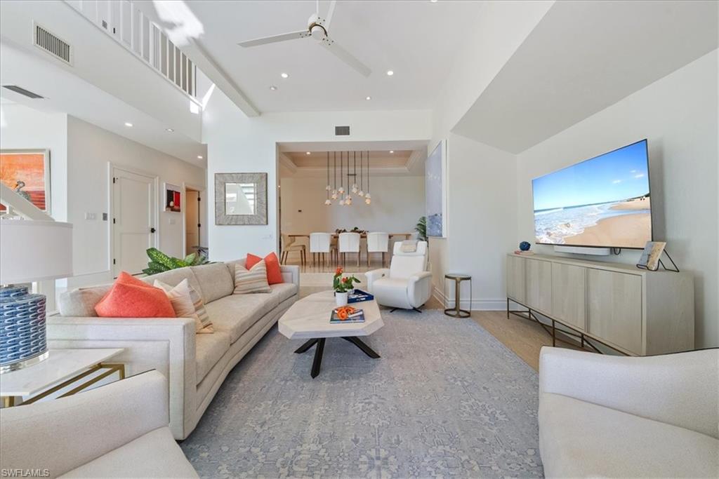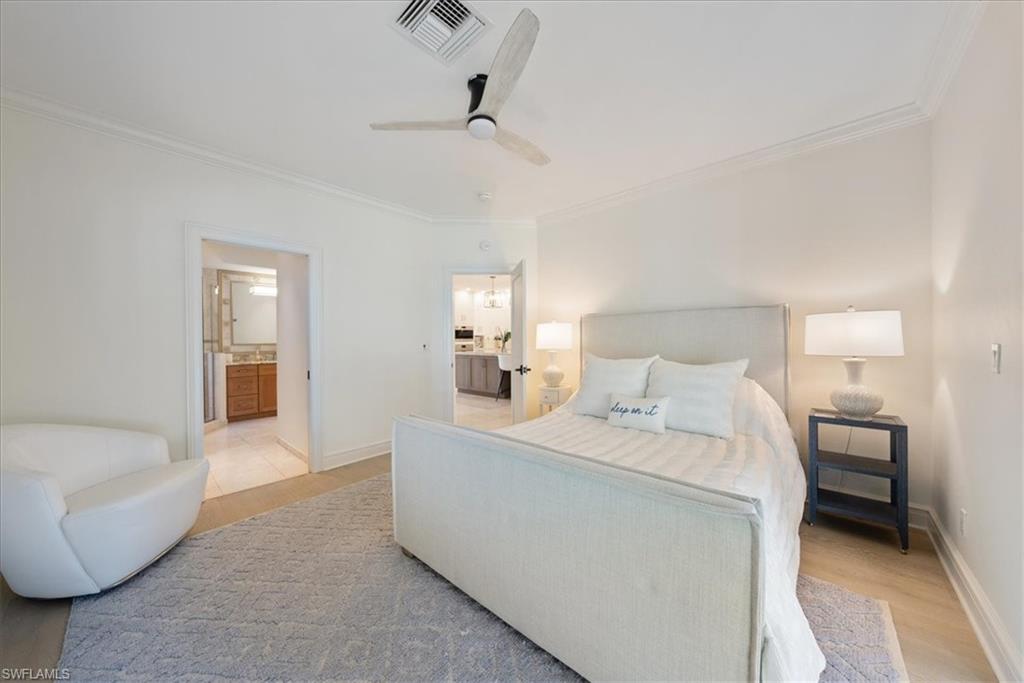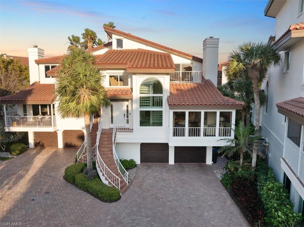 Gulf view single family 3 bedroom plus den, 4 1/2 bath, 2 1/2 car garage. Lives as a single family with an HOA providing all maintenance for landscaping, exterior painting, and shared swimming pool. Enjoy the beach views and short walk to the beach while living within a beautiful lush garden escape. This gorgeous attached Villa on the beach side of Gulf Shore Blvd is move in ready and sits inside a private gate entrance for additional security. Everything you thought wasn't possible while still having a gulf view exists in this Villa. With 3 full bedrooms with their own bathrooms attached, den with gulf views, powder bath, full 4th bathroom on the first floor and additional first floor flex space that could be a 4th suite- this truly is single family living on the beach! The 2024 updated kitchen offers top-of-the-line Sub-zero and Wolf appliance package laid out with island seating designed to see the Gulf, Quartzite countertops, and tons of additional formal dining space to entertain. This home has a large primary suite expanding across the top floor with breathtaking views of the Gulf all day, including a balcony right off your bedroom to watch the water with your coffee in the morning or wine at night! You will be happy to see a large walk-in closet, 2nd closet for hanging, dual vanity, separate jetted tub, and a walk in shower with plenty of storage throughout. The private Elevator for easy access to all three floors starts at the first floor where you have a private 2 car garage with extra storage, full bath, large interior storage closet and extra space for a combination of a 4th bedroom, home gym, or additional TV/family room. It even has sliders out to your own paver patio to enjoy the outdoors on your privately landscaped lanai. There are 3 Balconies and ample space to read or spend quality time with friends and family while enjoying gorgeous views. All this with storage throughout and just minutes away from Venetian Village, Waterside Shops, Naples Grande for tennis, and Moorings Country Club for golf, lunch, and dinner. You are surrounded by high end shopping and dining either by golf cart, bike, by foot, or by car! The gated Villa Mare offers privacy and beauty with a secluded outdoor courtyard, heated community pool with bathroom, and an exclusive path out to the sandy beaches of Park Shore! You don't have to join the Park Shore beach club because you walk right out to the beach from your home to the elevated path that extends for a mile and half along the white sandy Park Shore Beach! Low fees, Pet-friendly, with a dog park, and this won't be available for long! Own your own piece of Gulf View Paradise in a cozy little community within Park Shore today!