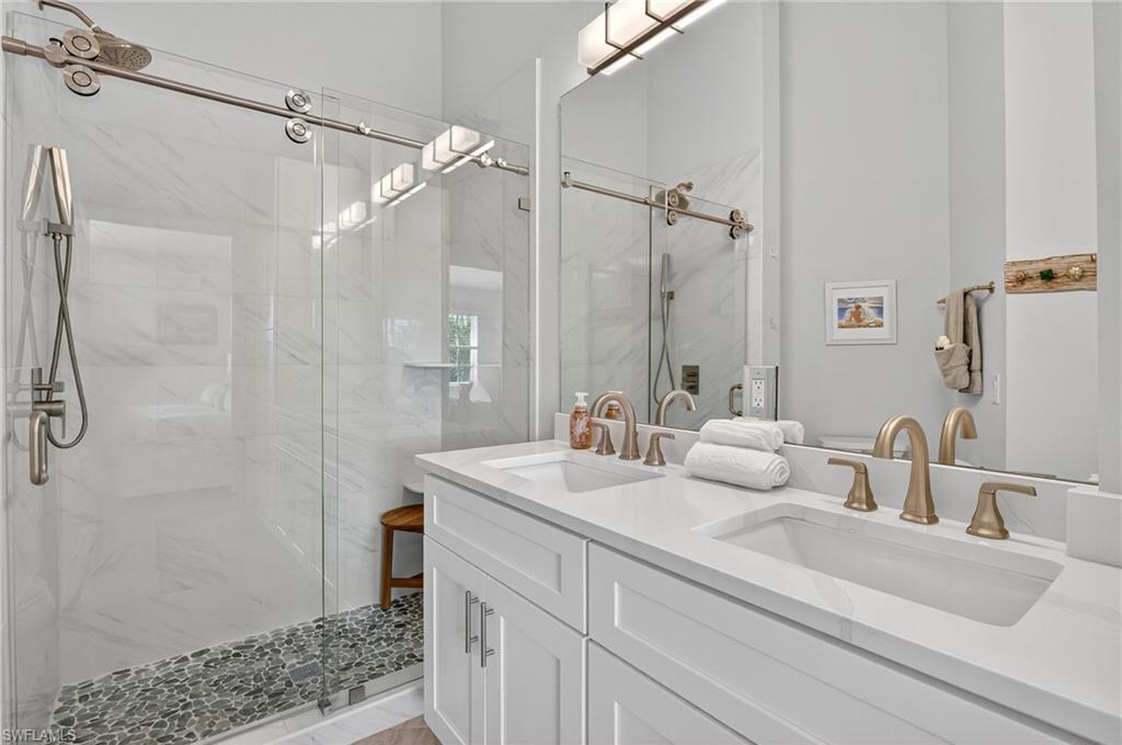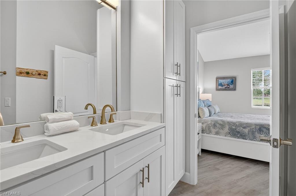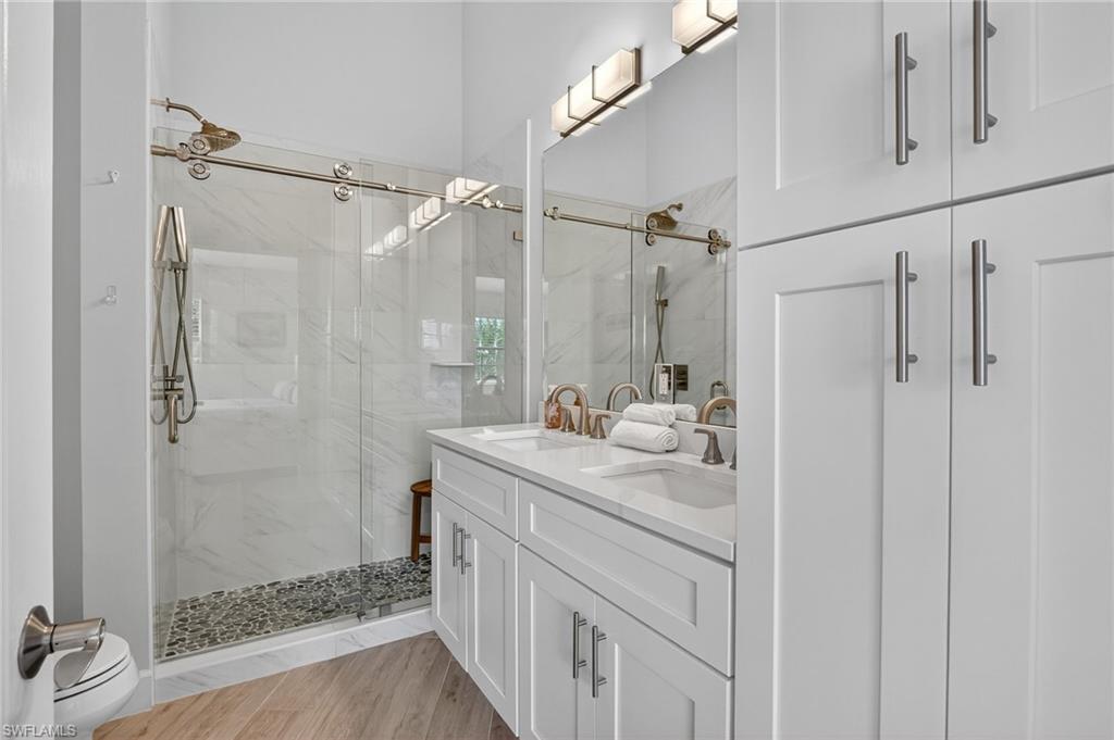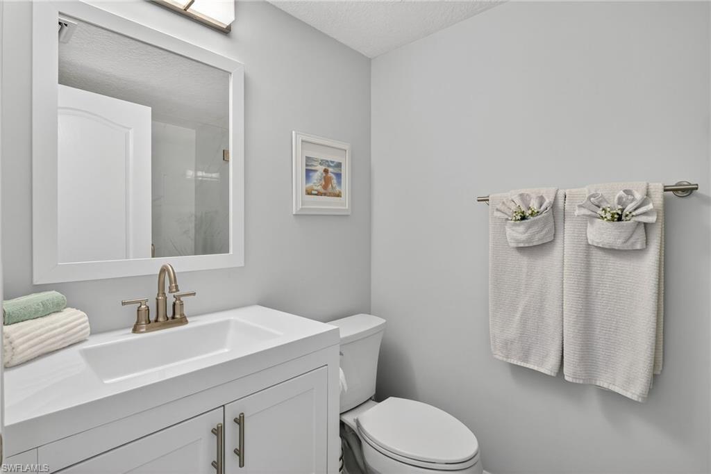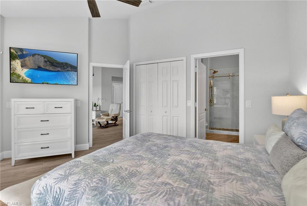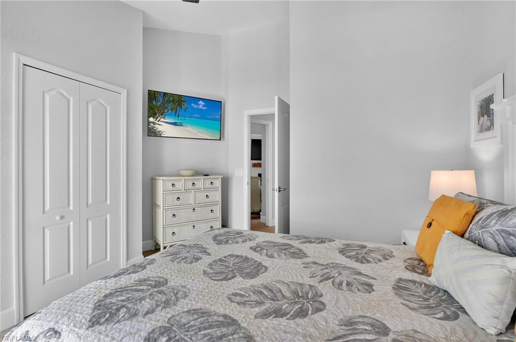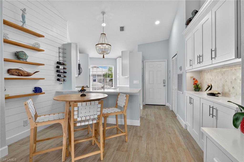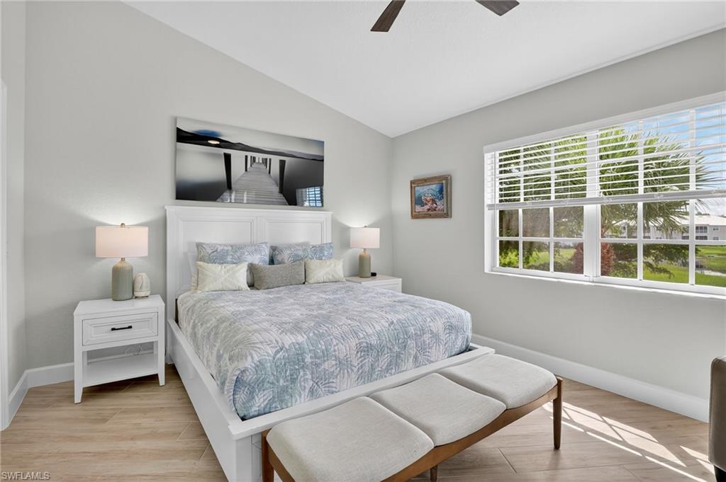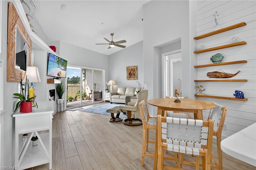 Envision yourself watching the grace of visiting egrets while enjoying your morning tea. Don’t miss this opportunity to own a stunning, move-in-ready condo in Sterling Oaks that truly shows like a model home! This beautifully remodeled 2/2 condo offers modern comfort and luxury in a highly desirable gated community in North Naples. The home features high-end finishes, thoughtful upgrades, and beautiful southwest views over the serene lake and natural preserves. Step inside to a light and bright interior showcasing vaulted ceilings and custom shiplap accent walls that add character and charm. The chef-inspired kitchen is a true highlight, featuring sleek quartz countertops, a beautiful tile backsplash, soft-close cabinets and drawers, a convenient breakfast bar, and top-of-the-line stainless steel appliances. The spacious living area is perfect for both relaxation and entertaining, highlighted by a modern, cozy electric fireplace and a custom wine rack. The split-bedroom floor plan ensures maximum privacy. The primary suite offers direct access to a private balcony and includes an ensuite bathroom complete with a walk-in shower. The second bedroom/bathroom combination provides comfortable accommodations for family or guests. Porcelain tile flooring runs throughout, enhancing its modern appeal. Enjoy calming lake views from your screened lanai—ideal for sunsets. Sterling Oaks is renowned for its very active tennis and pickleball community. Conveniently located within walking distance, residents enjoy access to a Jr. Olympic, saltwater pool, spa, clubhouse, fitness center, tennis courts, pickleball, bocce, and a tiki bar. Located just minutes from Naples' pristine beaches, upscale dining, premier shopping, and lively entertainment options, this beautiful condo offers an unbeatable lifestyle in one of Naples' most sought-after communities. This property represents a great opportunity for both rental income potential and personal use as a vacation home.