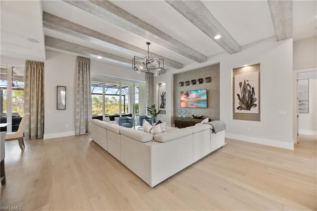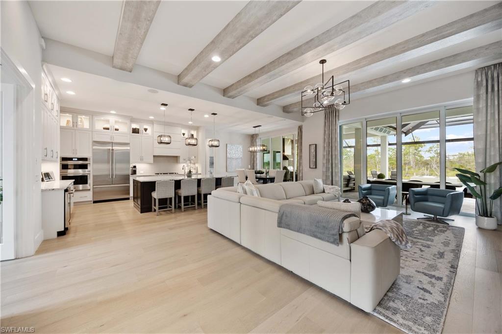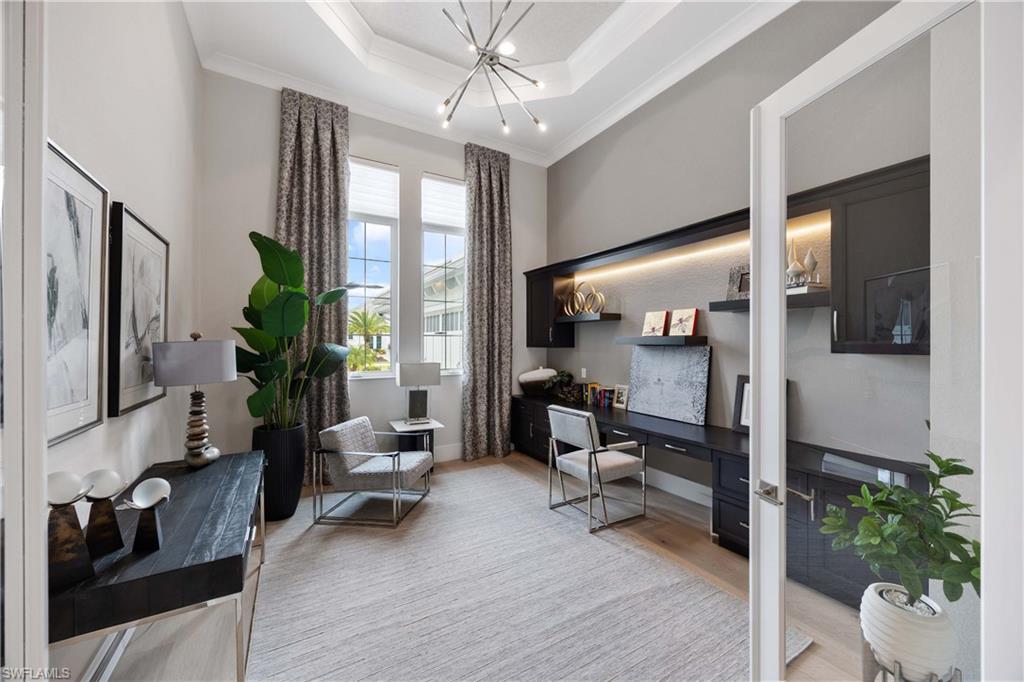 Experience modern coastal luxury at 8781 Santo Domingo Drive, a 2023-built Chandler III estate by Stock Development, perfectly positioned on a private oversized lot with tranquil views of natural water. This is one of the most desirable homes in The Isles of Collier Preserve, offering the ideal blend of privacy, elegance, and turnkey convenience. Spanning nearly 3,200 sq. ft. under air, this 4-bedroom + study, 4 bath masterpiece showcases soaring ceilings, open-concept design, and seamless indoor-outdoor living. Walls of glass open to an expansive lanai with resort-style pool and spa, outdoor kitchen, and multiple covered lounging areas—all capturing serene water views and stunning sunsets. The gourmet kitchen is a chef’s dream, featuring JennAir stainless steel gas appliances, quartz countertops, custom cabinetry, a large center island, walk-in pantry, and adjacent wet bar for effortless entertaining. The primary suite offers a private sanctuary with panoramic views, luxurious spa bath, dual vanities, soaking tub, glass-enclosed shower, and custom walk-in closets. Three additional ensuite guest bedrooms ensure comfort and privacy for family and guests. Meticulously curated and offered fully furnished, the home includes $225,000 in designer-selected furniture, artwork, rugs, lighting, and décor, creating a truly turnkey experience. Additional upgrades include: Impact-rated windows and doors, Whole-home automation & motorized shades, Designer lighting and custom millwork Epoxy-finished 3-car garage Energy-efficient construction with premium finishes throughout Built in 2023, this home is barely used—ready for immediate occupancy without the wait, stress, or additional expense of building. Located in The Isles of Collier Preserve, just minutes from Downtown Naples and Gulf beaches, residents enjoy world-class amenities: resort and lap pools, fitness center, tennis and pickleball courts, kayaking, miles of scenic biking and nature trails, and The Overlook Bar & Grill on the water. 8781 Santo Domingo Drive is a rare offering—a 2023-built, fully furnished Chandler III on a private lot with natural water views, combining timeless design, luxury upgrades, and immediate move-in convenience. Offered at $3,625,000 including $225,000 in designer furnishings. Your Naples dream home is ready now—move in and start living the lifestyle you deserve.