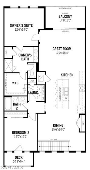 Our Seabright floor plan in our Coastal exterior is a second-floor coach home 1480 sq ft. that offers 2 bedrooms, 2 baths and a 1 car garage with screened lanai. Perfect for everyday living or entertainment guests, this bright and airy floorplan includes a beautiful adjacent dining area with direct access to the kitchen. White Linen cabinets throughout, along with Calacatta Arno White quartz countertops with gray veining and a glass tiled backsplash to tie it all together. A strategically placed island with a breakfast bar offers a space to seat up to 5. Wood plank styled tile flooring runs throughout the main living space except for the two bedrooms and staircase. Separate large dining area with direct access to the kitchen, which makes serving a breeze. Four large windows over the stairs bring light through the entire floor. Expansive great room with large sliders to the screened lanai brings in additional light. The second bedroom has windows and a glass door out to a private sitting balcony to enjoy the beautiful scenery. Smart Home package including touchscreen keypad. Pictures are from the model home and not the actual home itself. *** Photos, renderings and plans are for illustrative purposes only and should never be relied upon and may vary from the actual home. Pricing, dimensions and features can change at any time without notice or obligation. The photos are from a furnished model home and not the home offered for sale.