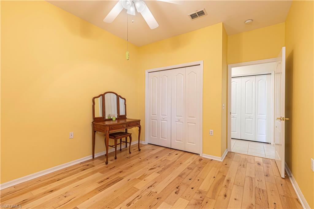 Beautiful Lake and Fairway view, without the high fees!!!! Tucked back from the 3rd fairway on the very popular Arrowhead Golf Course, this Villa has everything you want. The home is 1360 sq ft, 2 bedroom + den which also has pocket doors and a king size murphy bed for extra guests. The Guest bedroom is split from the Master for more privacy, full size washer and dryer set, matching range, refrigerator, dishwasher (all approx. 3 years old), Electric Hurricane Shutters on the front and rear of the house (2 years old) along with accordion shutters, Air conditioning and hot water heater replaced 2 approx. years ago as well. Entire house has hardwood flooring except wet areas and much more. Villa is approx. 100ft walk to the community pool.