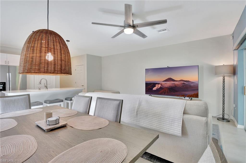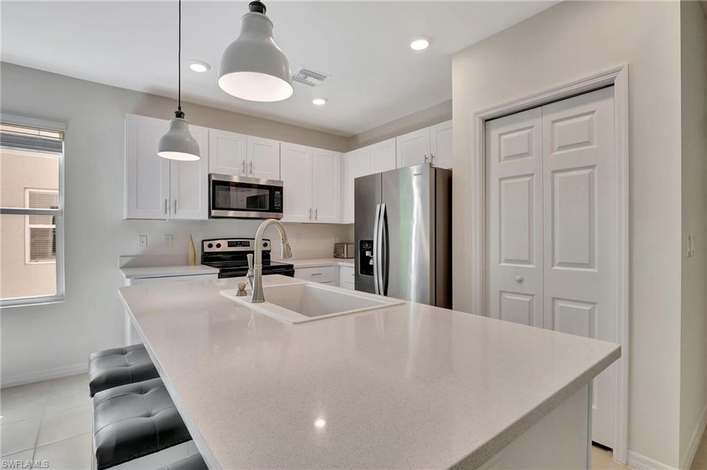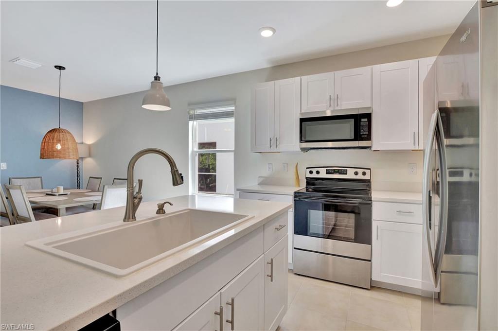 Welcome to this beautifully maintained and thoughtfully updated 2022 end-unit townhome in Meadowood, ideally located off Collier Blvd—just minutes from shopping, dining, entertainment, and Naples' stunning beaches. Offering 3 spacious bedrooms plus a versatile den/office, this home combines newer construction with exceptional value. Step inside to fresh interior paint and new carpet upstairs. The open-concept kitchen features stainless steel appliances, quartz countertops, stylish pendant lighting, farmhouse sink and new faucets, while every room includes ceiling fans for added comfort. A mini split system in the garage and an ultraviolet air scrubber on the AC enhance air quality and efficiency. Even the lawn has been replaced for a fresh curb appeal. Upstairs, the split-bedroom layout offers privacy, with guest bedrooms connected by a Jack and Jill bath. The den/office provides flexible space for work or play. Enjoy resort-style amenities including a pool, fitness center, clubhouse, basketball court, and playground—all within a gated, pet-friendly community with low monthly fees. This impeccable home is priced to sell—don't miss your chance!