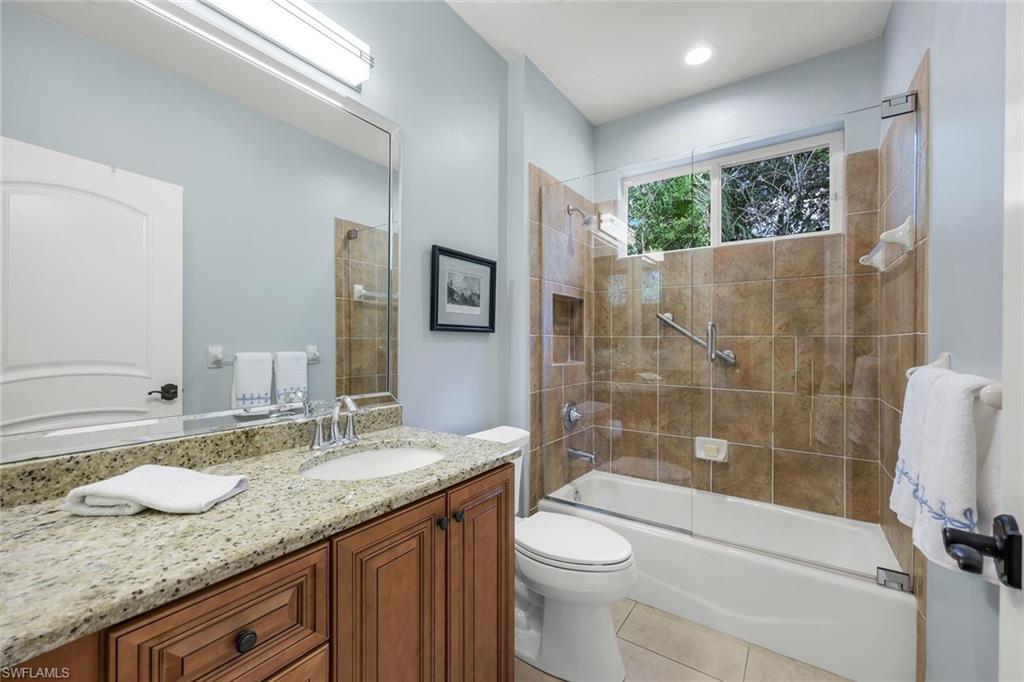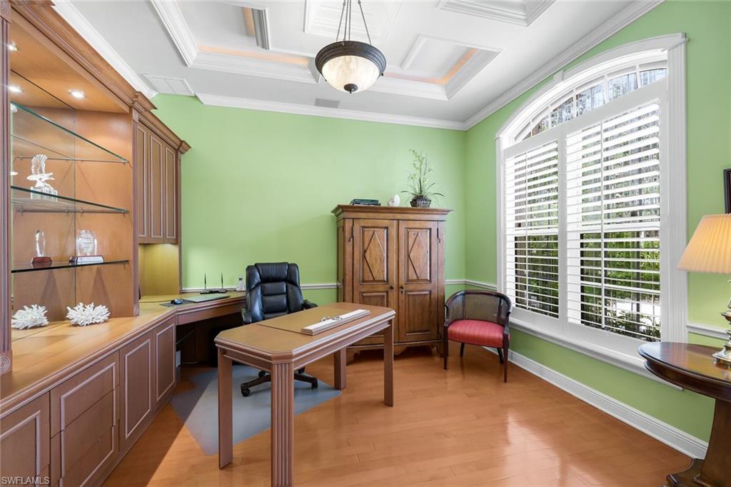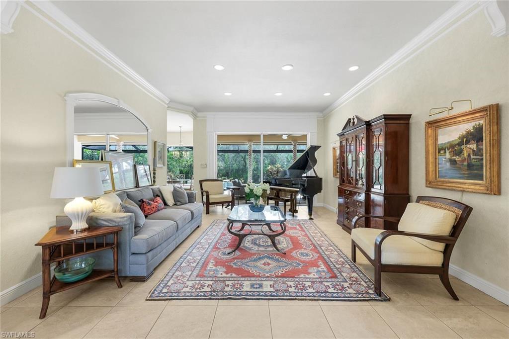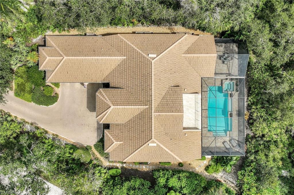 On the Sunny Side of Life ~ Tucked at the end of a quiet cul-de-sac, this residence offers the rare combination of privacy, space, and a premier southern orientation. Nestled on a generous half-acre with 185 feet of frontage against a backdrop of lush tropical foliage, the home lives like a tranquil retreat designed for both relaxation and entertaining. Inside, the light-filled four-bedroom-plus-den/office floor plan flows seamlessly, anchored by a spacious island kitchen with wood flooring, custom wood cabinetry, stainless steel appliances, and ample pantry space. Remodeled baths and a redesigned laundry room feature granite-topped, soft-close cabinetry elevating everyday living, while a gas fireplace adds warmth to the family room. Outdoors, the 33-foot lap pool and spa command attention, fully renovated and surrounded by an expansive new sun-soaked deck and panoramic-view lanai enclosure—ideal for morning swims or relaxed evenings under the stars. Practicality pairs with peace of mind through abundant storage, a full three-car garage, and recent updates such as a new roof, whole-house impact-rated storm protection, and a renovated upper balcony. At an enviable 11.3 ft elevation, this home is perfectly suited for the Southwest Florida lifestyle. Located in the prestigious Audubon Sanctuary Club of Collier's Reserve where world-class golf and active tennis and pickleball programs are coupled with premium amenities, multiple dining options, and a passion for environmental stewardship.