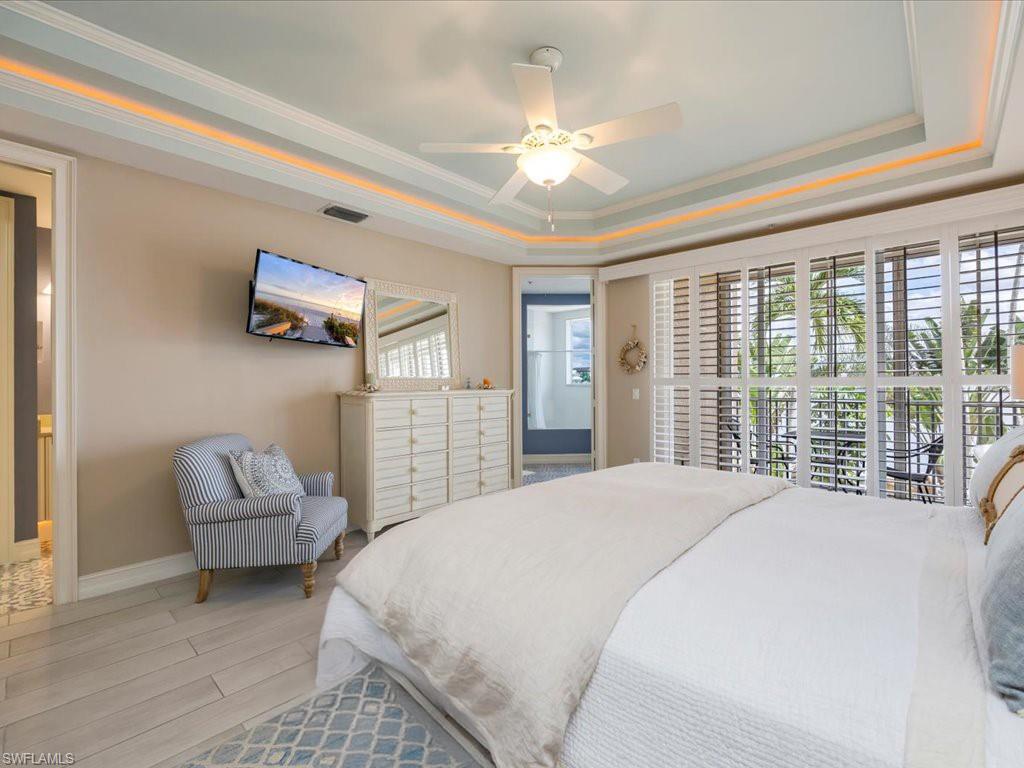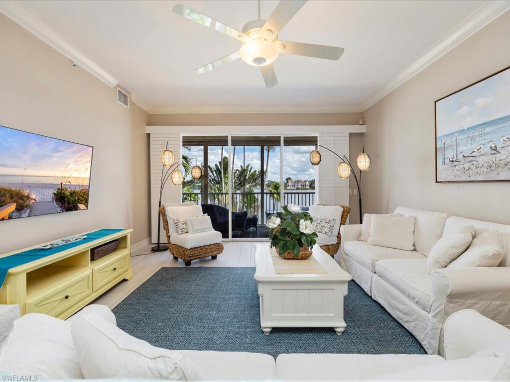 Lowest priced 3+den in Vanderbilt Beach! Bask in the best of both worlds with both Gulf of America and expansive Bay views. Here's the arrangement: The grand living area and spacious primary bedroom capture glorious Bay views overlooking three intersecting canals, offering access to the east lanai. Other features include an enviable walk-in closet, a stylish remodeled bath with two vanities, and a spacious shower. If you can imagine, there's even a waterview from the shower! Lucky guests will enjoy one of two full en-suite bedrooms featuring remodeled baths and access to the west-facing Gulf side lanai, where they can catch the incredible colors of spectacular sunsets in the afternoon and enjoy peek-a-boo views of the Gulf. Centrally located, you'll find a remodeled open kitchen with a roomy breakfast bar to feed hungry guests. Prefer a formal affair? Upgrade your venue to a formal dining area, large enough to comfortably seat eight or more guests. A private den is tucked discreetly down the hallway from the primary bedroom, so taking care of business can still maintain a sense of privacy. Let's not forget this smart kitchen, featuring upgraded stainless-steel appliances, new flooring, stylish countertops, and ample space to store the latest gadgets. Other notable features include plantation shutters and electric storm shutters for peace of mind. Community amenities include a sparkling pool, two tiki huts, under-building parking, and extra storage for beach gear—creating a true waterfront paradise. With public beach access just across the street, LaPlaya steps away, and the Ritz-Carlton and Mercato nearby, this home blends luxury and convenience for the ultimate Naples lifestyle.
