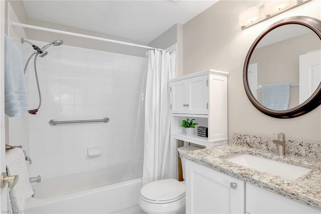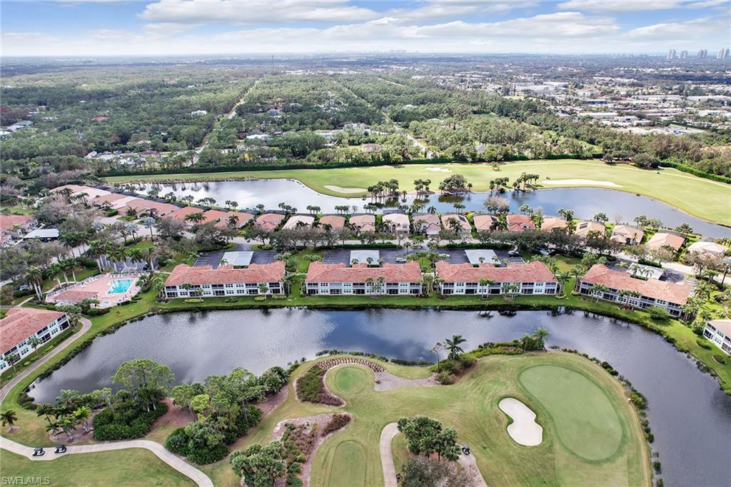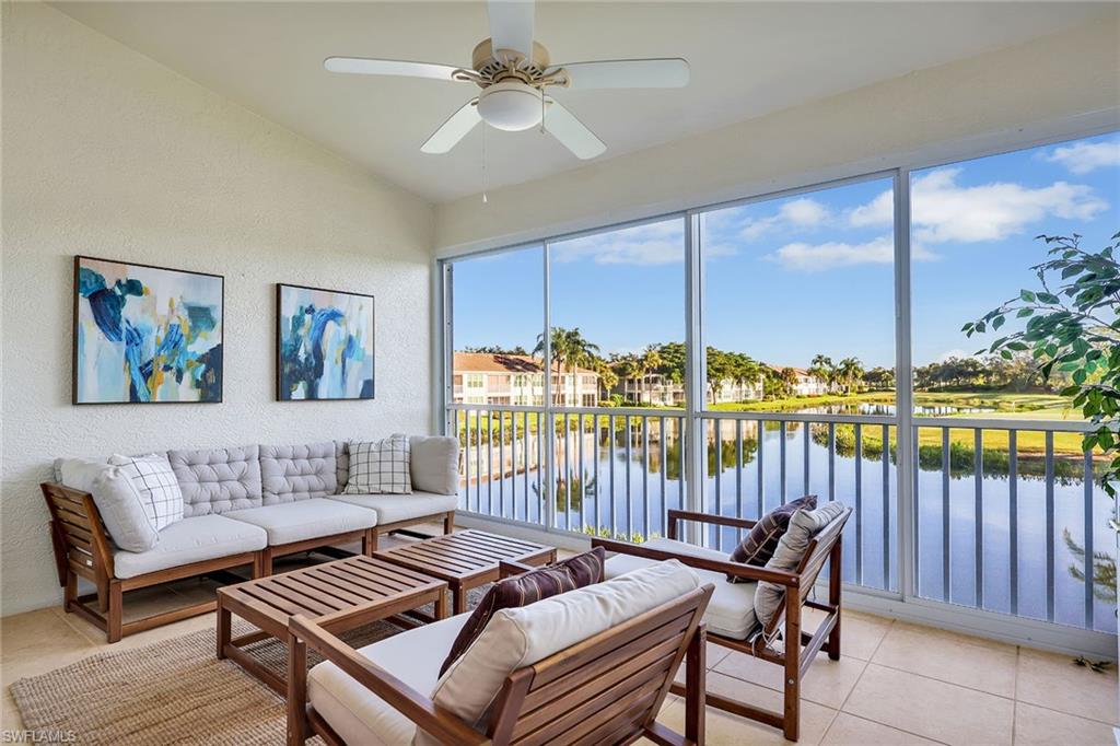On the second floor of the sought-after Sunset Stream enclave in Spring Run at The Brooks, this beautifully maintained two-bedroom, two-bath residence captures the essence of Southwest Florida living. From the moment you enter, the soaring vaulted ceilings in the great room create a sense of openness, drawing in abundant natural light and framing serene views that extend through the screened lanai to the shimmering pond and the signature par-3 sixth hole beyond. The kitchen showcases granite countertops, upgraded finishes and a desirable floorplan layout, making it as functional as it is inviting. For added peace of mind, the condominium is enhanced with hurricane-rated windows, blending style with long-term security. Ownership comes with a desired bundled golf membership, granting access to a vibrant array of amenities: an 18-hole championship course, elegant and casual dining options, a welcoming clubhouse, fitness and tennis facilities, bocce courts and more. Closer to home, residents of Sunset Stream enjoy their private pool and spa, your own dedicated, covered parking space, and ample guest parking near the front door. With arguably one of the best views the community has to offer, this residence combines tranquil retreat living with everyday convenience—all within minutes of Southwest Florida International Airport, world-class Gulf beaches, fine dining, boutique shopping and top medical facilities. Whether as a seasonal escape or a year-round residence, this property offers the ideal balance of comfort, lifestyle and location.