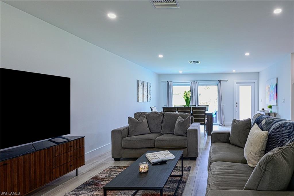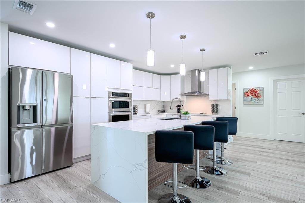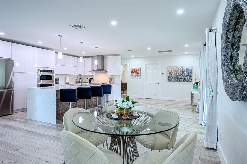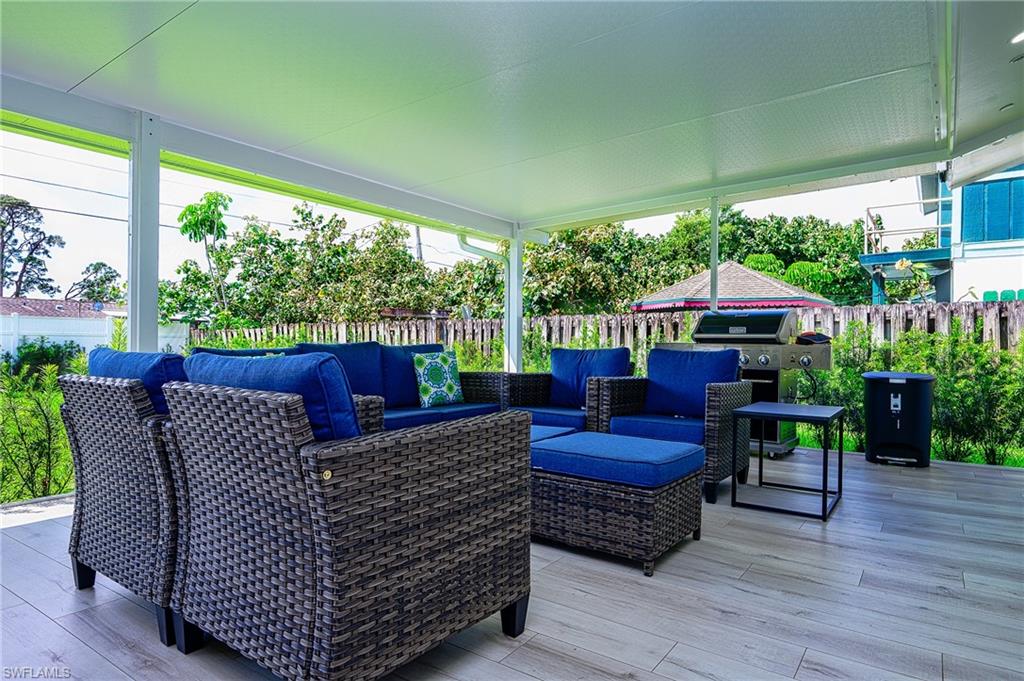 Offered turnkey furnished, this 3 bedroom, 2 bath home sits on a rare double lot in the 500 block of Naples Park. Recent upgrades include a new roof (2023), hurricane impact windows, and stylish interior renovations. The bright open layout features a modern chef’s kitchen with large island, stainless steel appliances, and updated baths. A spacious 2-car garage adds convenience, while the oversized lot offers plenty of room to create your dream pool and backyard oasis, with an already existing enclosed screened lanai. Ideally located west of US-41, just minutes to Vanderbilt Beach, Mercato, shopping, dining, and entertainment. Tenant in place through 3/31/2026.