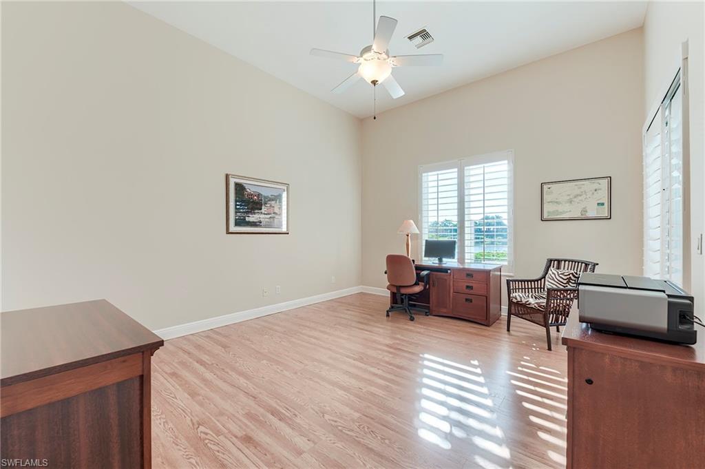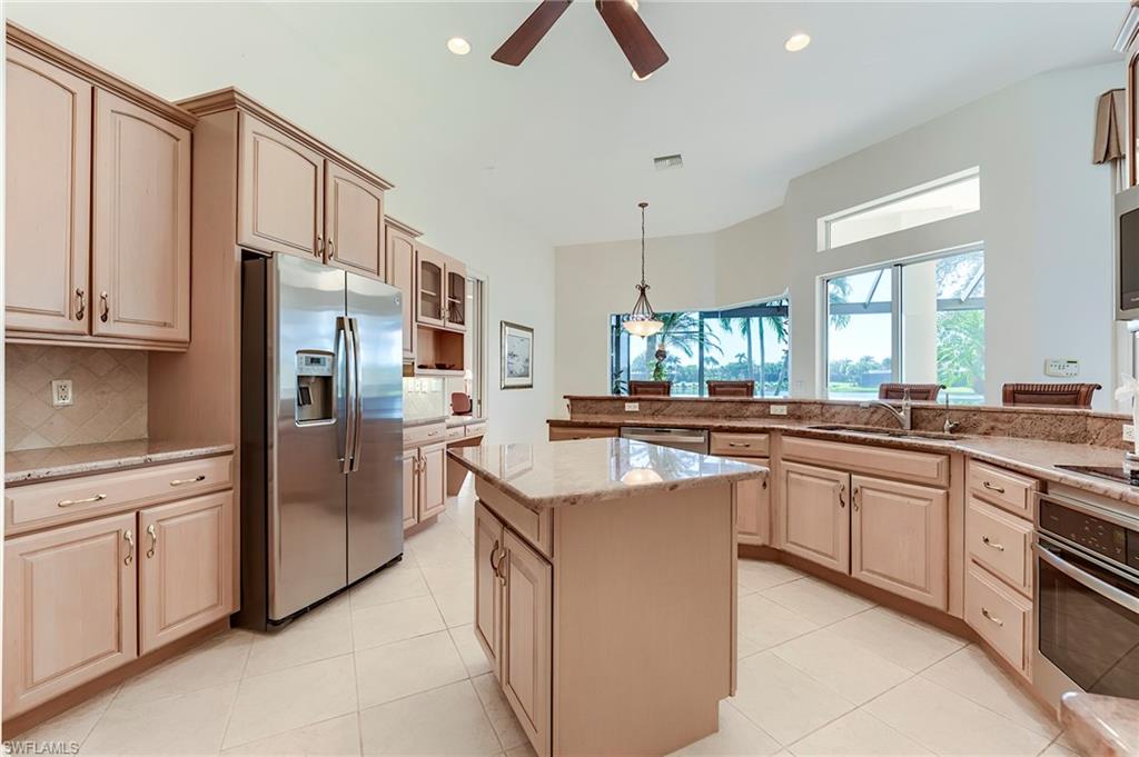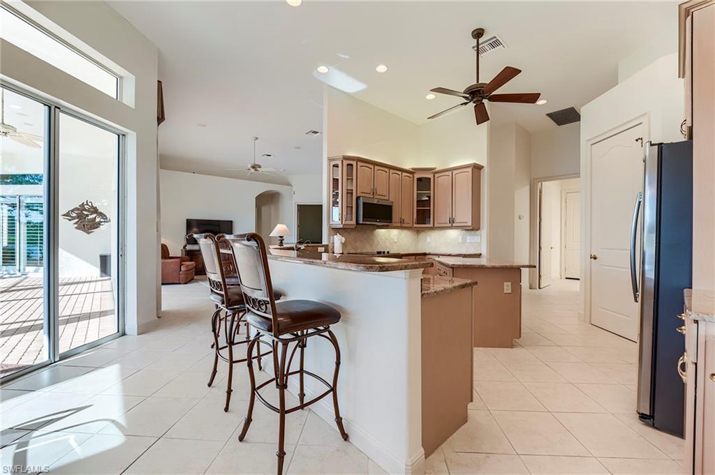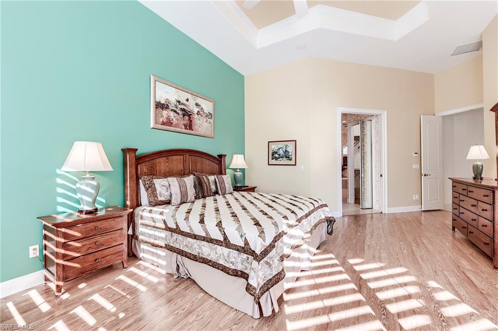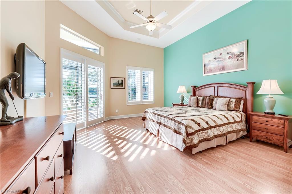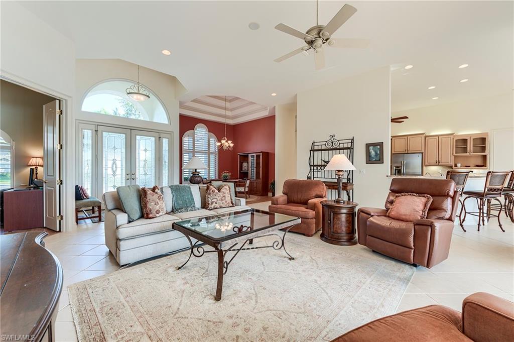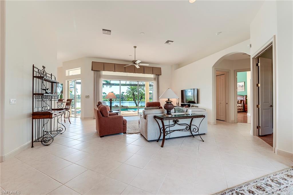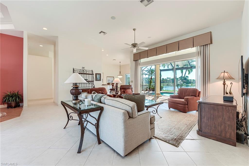 Harbourside Custom home located in the very popular Summerfield neighborhood in Shadow Wood. Full Golf Membership available to be purchased from Shadow Wood Country Club upon closing on this home. Skip the waitlist and head directly to the t-box. Ideal location for walking or biking to the Shadow Wood Clubhouse or the Commons Club. Fabulous great room floor plan features 3 bedrooms ensuite, 1/2 bath with access to the lanai, den and 2 car garage. Pocketing sliders open from the great room to the lanai with beautiful, picturesque views of the lake through the picture screen window. Relax or dine around the gas heated resort style saltwater pool and spa. Custom triple tray ceiling in dining room and coffered ceiling in the den. Kitchen complete with custom cabinetry, granite countertops, center island, eat-in-bar, morning room and walk in pantry. Split floor plan offers privacy for both guest and primary suites. New flat tile roof in 2022, 2023 AC unit in primary, 2019 hot water heater and kitchen appliances. Solar panels for pool heat and plantation shutters throughout. Shadow Wood Country Club has 54 holes of golf, social/dining, tennis and bocce. The new lifestyle Amenity Center is under construction and will include 2 resort style pools, a kid's pool, restaurant and bar, 6 indoor pickleball courts, racquet pro shop and grab and go cage. The Commons Club membership offers access to the private beach club, fitness center and spa, pickleball, social activities, private restaurant, playground, and lap pool. Great location close to airport, shopping, restaurants, beaches and health care. Add your special touches and features to this amazing home. Give me a call for your private tour today.