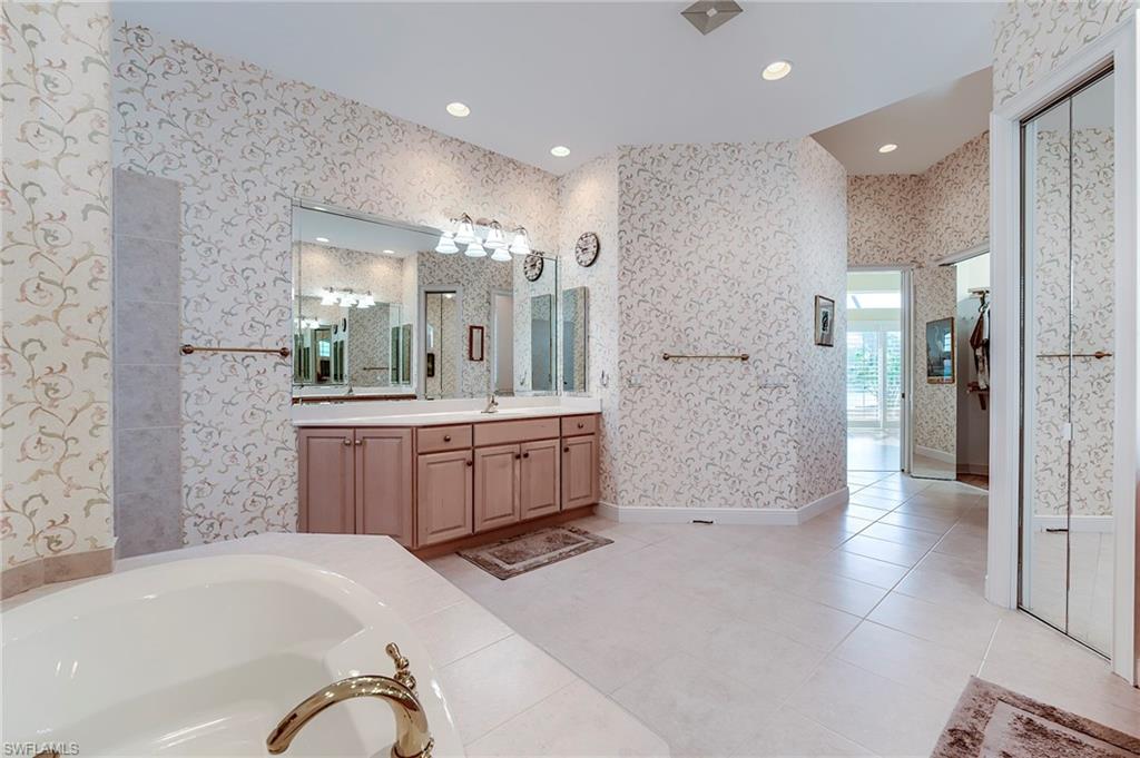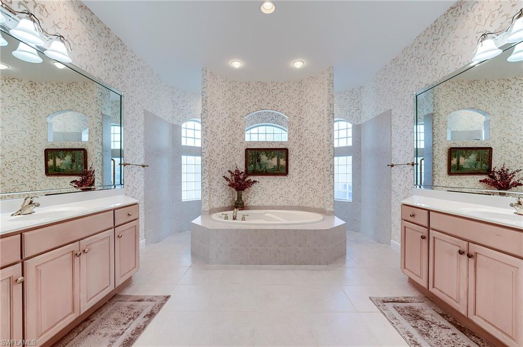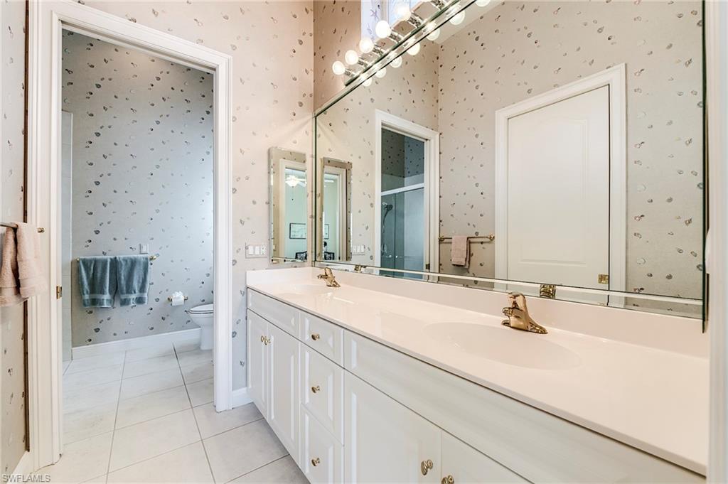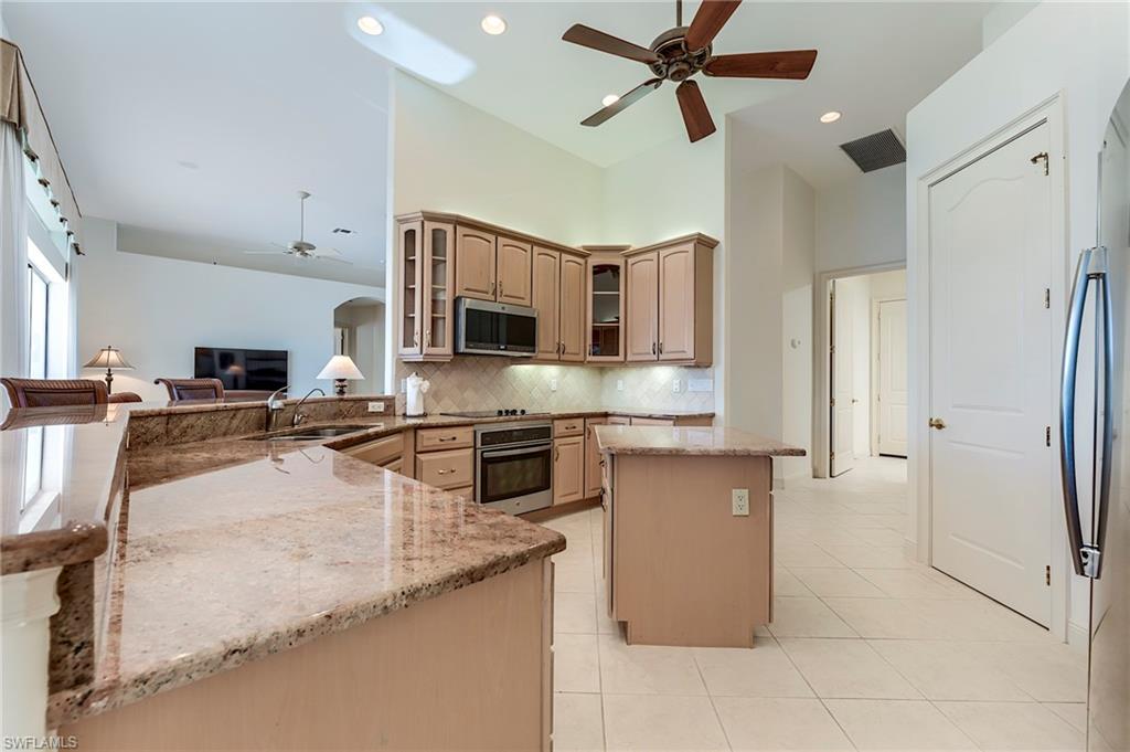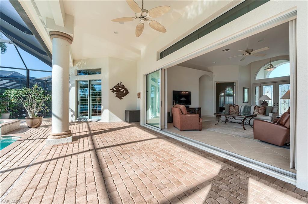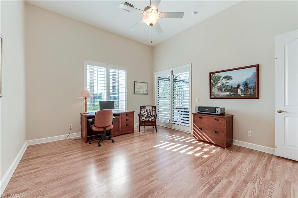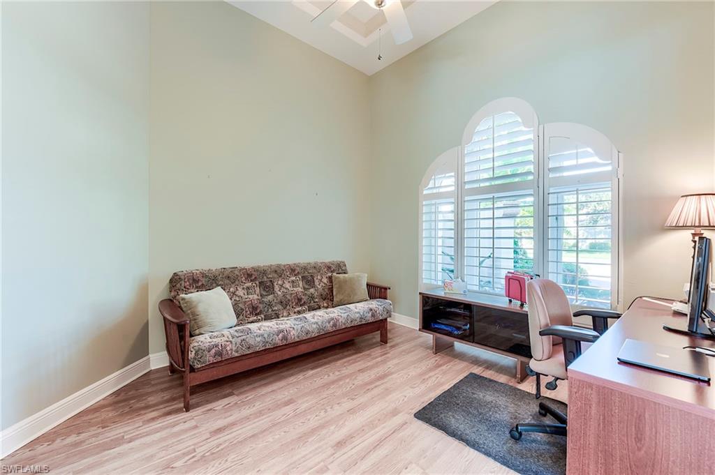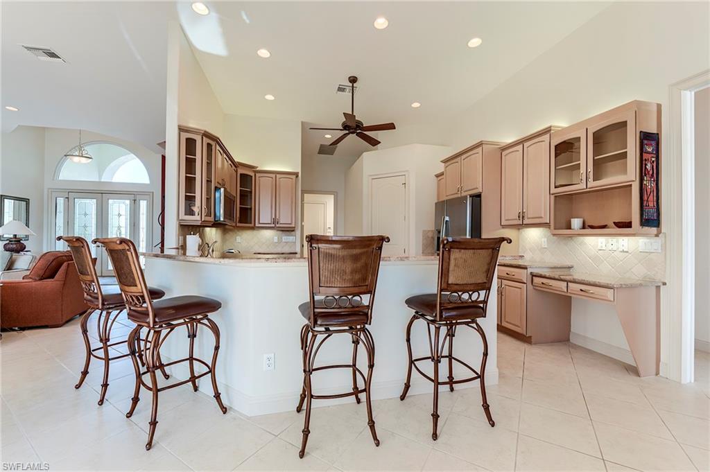 Harbourside Custom home located in the very popular Summerfield neighborhood in Shadow Wood. Full Golf Membership available to be purchased from Shadow Wood Country Club upon closing on this home. Skip the waitlist and head directly to the t-box. Ideal location for walking or biking to the Shadow Wood Clubhouse or the Commons Club. Fabulous great room floor plan features 3 bedrooms ensuite, 1/2 bath with access to the lanai, den and 2 car garage. Pocketing sliders open from the great room to the lanai with beautiful, picturesque views of the lake through the picture screen window. Relax or dine around the gas heated resort style saltwater pool and spa. Custom triple tray ceiling in dining room and coffered ceiling in the den. Kitchen complete with custom cabinetry, granite countertops, center island, eat-in-bar, morning room and walk in pantry. Split floor plan offers privacy for both guest and primary suites. New flat tile roof in 2022, 2023 AC unit in primary, 2019 hot water heater and kitchen appliances. Solar panels for pool heat and plantation shutters throughout. Shadow Wood Country Club has 54 holes of golf, social/dining, tennis and bocce. The new lifestyle Amenity Center is under construction and will include 2 resort style pools, a kid's pool, restaurant and bar, 6 indoor pickleball courts, racquet pro shop and grab and go cage. The Commons Club membership offers access to the private beach club, fitness center and spa, pickleball, social activities, private restaurant, playground, and lap pool. Great location close to airport, shopping, restaurants, beaches and health care. Add your special touches and features to this amazing home. Give me a call for your private tour today.