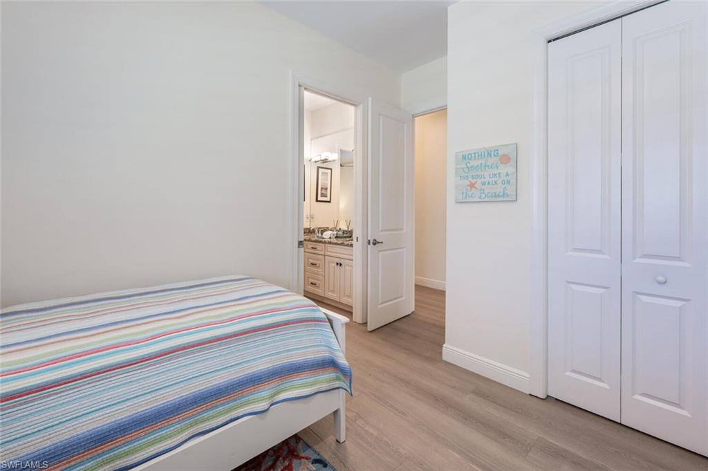 Unique courtyard home offering 3 bedrooms, 2 and a half baths, 2 car garage, pool & fully fenced yard. The open-concept layout features wood look flooring that flows effortlessly throughout with style and functionality. A gourmet kitchen takes center stage featuring an island with generous seating, stainless steel appliances, white shaker cabinets complimented by granite counters, is the perfect place to cook and entertain. Two spacious guest bedrooms adjoined by a jack and jill bath. The primary suite overlooks the pool, creating a tranquil retreat, featuring a large glass shower, dual sinks, his and hers closets. Features throughout the home include 10ft ceilings, crown molding, wood-look floors, plantation shutters, designer lighting & fans, impact doors & windows throughout. Back yard features a 36' X 28' deck perfect for entertaining. Located less than 1 mile to Vanderbilt Beach and Wiggins Pass State Park as well as upscale shopping and dining at Mercato. This property is offered turnkey furnished & is move-in ready. Whether you’re looking for your dream home or a high yield vacation rental, this Naples Park retreat offers unmatched quality and appeal. High and dry NO storm damage.