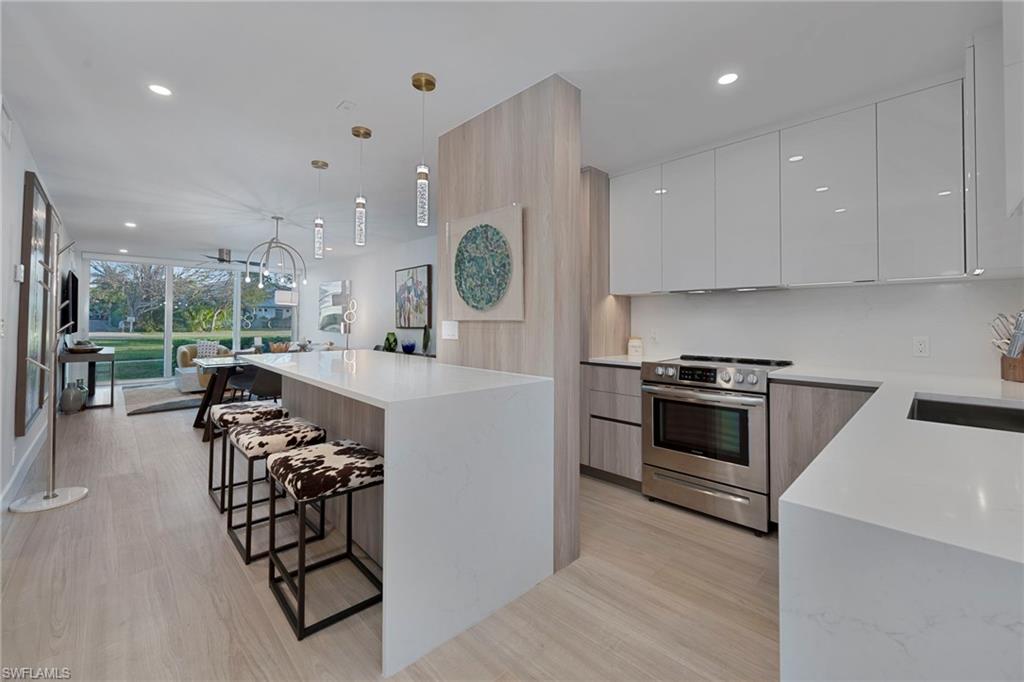 Amazing Olde Naples location—now priced under market value!!! Just six blocks to the beach, three blocks to the charming shops and dining of 3rd Street South, and six blocks to the vibrant energy of 5th Avenue! Newly renovated and completely reimagined from the ground up, this stunning Jasmine Club condo is like no other. Featuring impact-resistant doors and windows, brand-new electrical and plumbing, and gorgeous new flooring throughout, every detail has been thoughtfully updated. The open kitchen is perfect for entertaining, while the master bath boasts the only expanded shower in the building for a true spa-like retreat. A washer and dryer have also been added for ultimate convenience—a rare find here. Sold turnkey furnished, all you need to bring is your toothbrush. Nestled within a well-maintained 55+ community, this residence offers a one-of-a-kind opportunity to enjoy the best of the Naples lifestyle year-round.