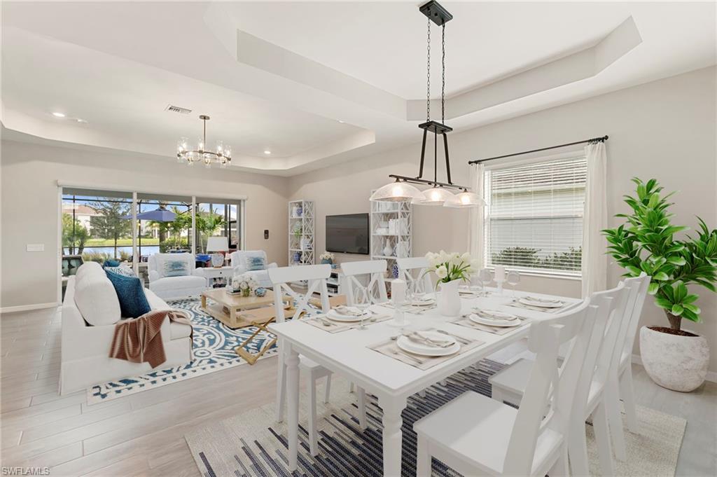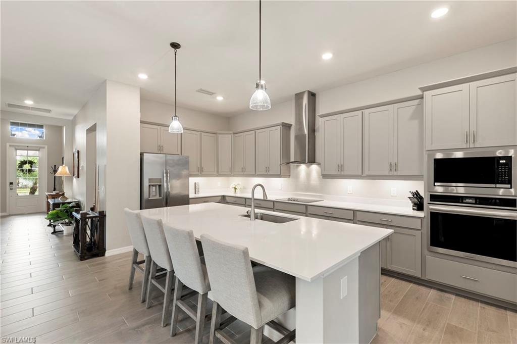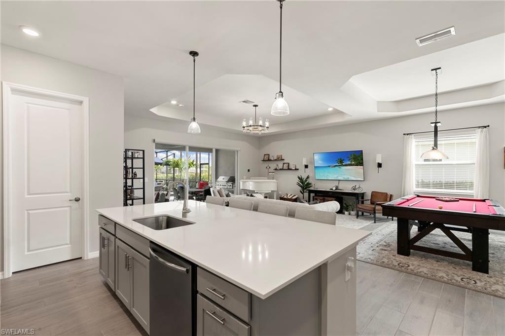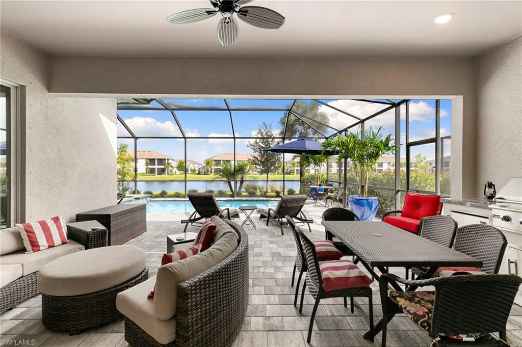 Welcome to 5789 Kingston Place, where modern elegance meets serene lakeside living in the heart of Ave Maria. Built in 2023, this better-than-new home blends contemporary style, thoughtful upgrades, and Florida charm with sparkling lake views and a private pool. Freshly painted throughout and featuring newly updated kitchen cabinets, the home feels warm and refreshed from the moment you enter. Tile flooring flows seamlessly through the open-concept layout, combining durability with modern appeal. The split-bedroom design ensures privacy, while one bedroom easily functions as a den with stylish dual pocket doors. Step outside to your upgraded patio, complete with a fully equipped outdoor kitchen, perfect for al fresco dining, entertaining friends, or simply unwinding poolside against the backdrop of tranquil lake views and northern exposure. Additional highlights include manual storm shutters for peace of mind, a spacious primary suite, and a bright, airy living area designed for both comfort and flow. Located in Ave Maria’s vibrant, amenity-rich community, residents enjoy access to resort-style pools, fitness centers, tennis and pickleball courts, walking trails, and the charming Town Center with shops and dining just minutes away. This home truly offers the best of Southwest Florida living, move-in ready, beautifully upgraded, and perfectly positioned to enjoy the Ave Maria lifestyle.