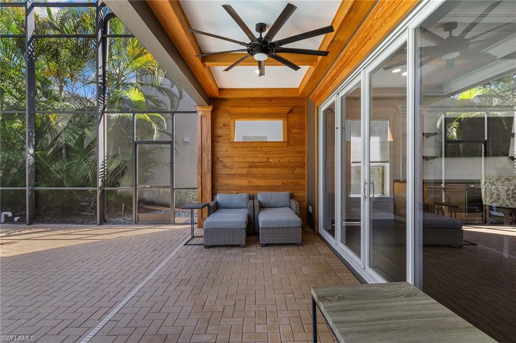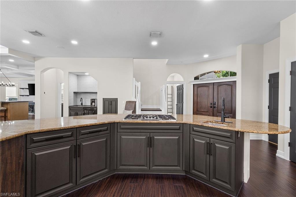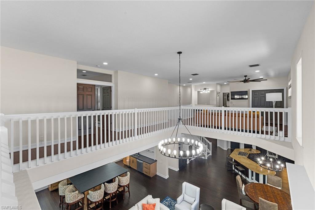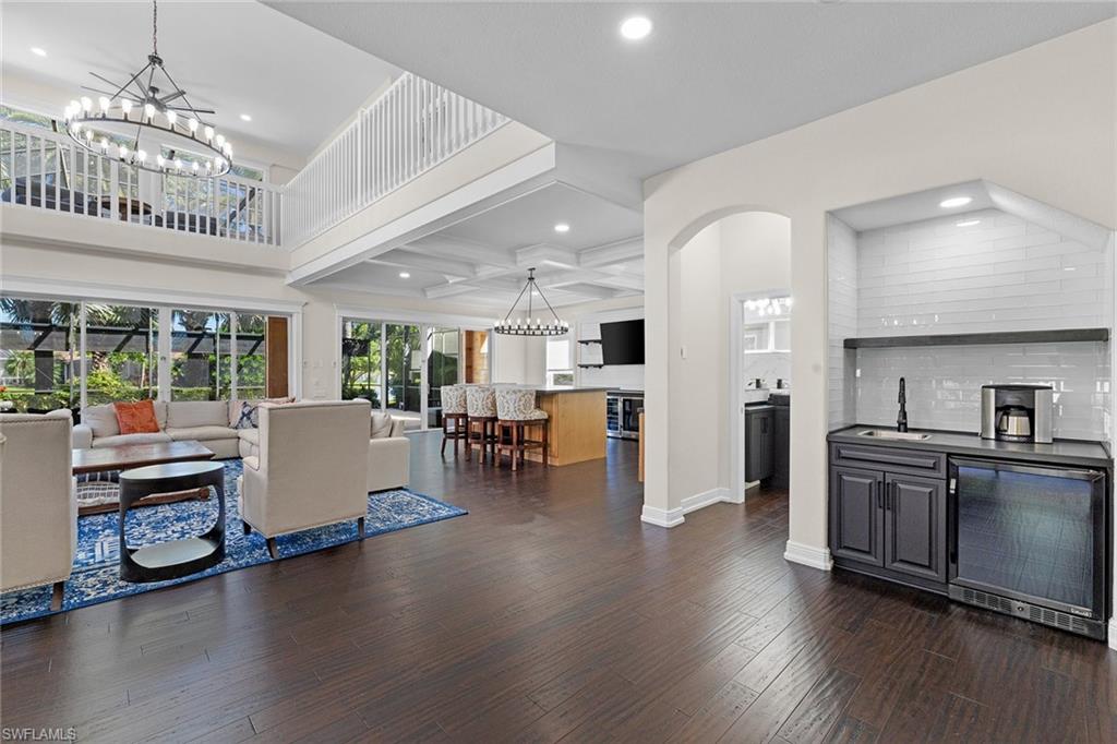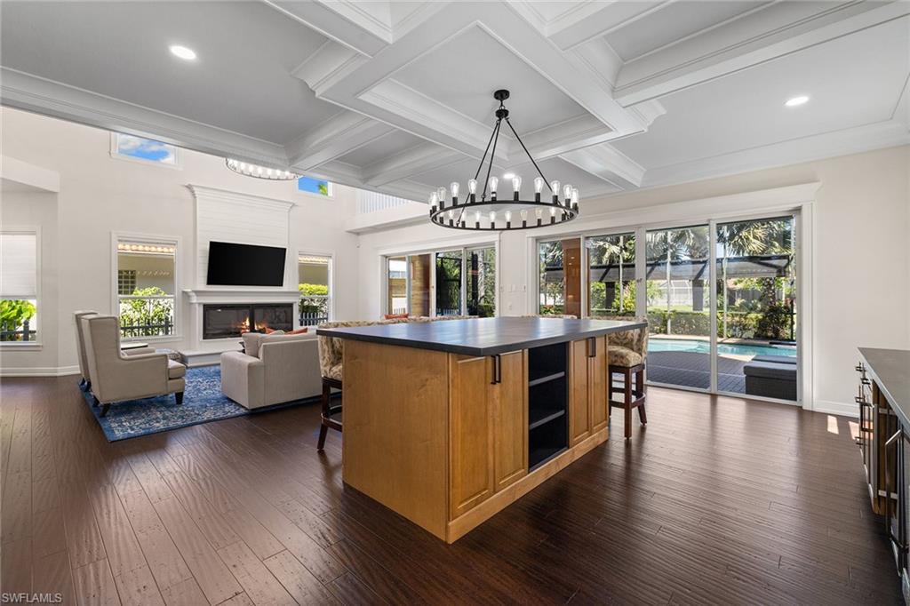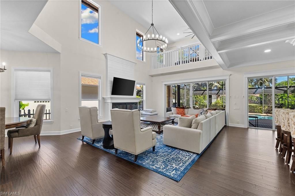 This recently renovated furnished residence in the sought-after Lely Resort offers 3,100 square feet of elegant living space with four bedrooms and three full baths. Designed for both daily comfort and sophisticated entertaining, the home features an expansive kitchen anchored by a 20-foot island, granite countertops, custom cabinetry, a gas cooktop, high-end stainless steel appliances and a coffee bar with a beverage cooler. A second gathering room provides an additional 8-by-5-foot island, a built-in ice maker, a wine cooler and a secondary dishwasher, creating a seamless setting for hosting. Throughout the home, wood flooring, recessed lighting and two fireplaces add warmth and style. The first-floor bedroom provides convenience and privacy for guests, while the upstairs suites include a spacious primary retreat with a spa-inspired bath. The outdoor living space is enhanced by a soaring screened lanai with paver decking, tongue-and-groove accents, ceiling fans, and privacy screens. Overlooking the peaceful lake, the heated pool offers a tranquil backdrop for relaxation. Other key updates include impact windows and doors, a whole-home generator, a buried propane gas tank, a whole-home water filtration system, custom garage cabinet organization and much more! Residents may also take advantage of optional membership at the award-winning Players Club and Spa, which includes resort-style pools, a fitness center, dining venues, tennis, pickleball, and more. Lely Resort also offers three championship golf courses. The home is minutes from the beaches of Naples and Marco Island as well as the cultural and dining attractions of Fifth Avenue South.