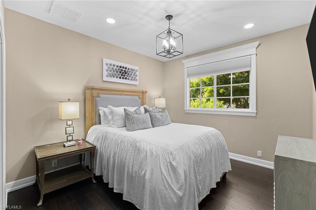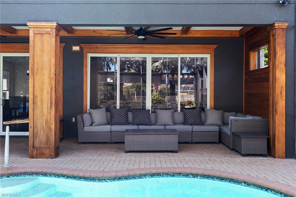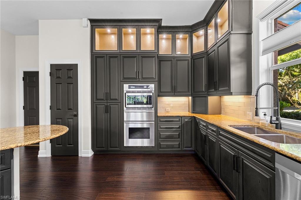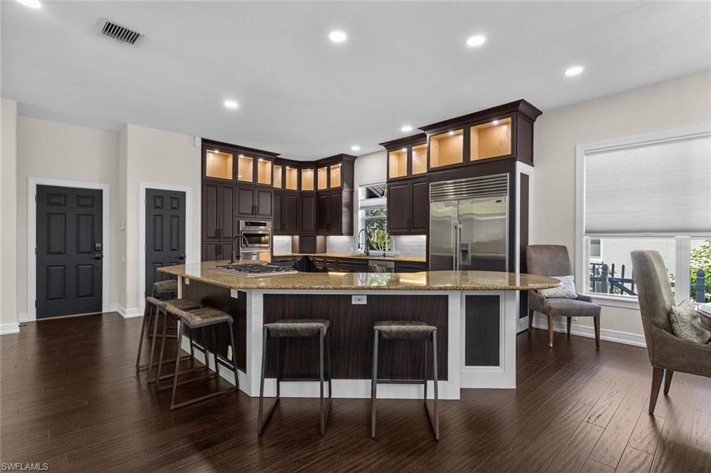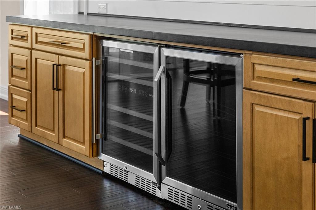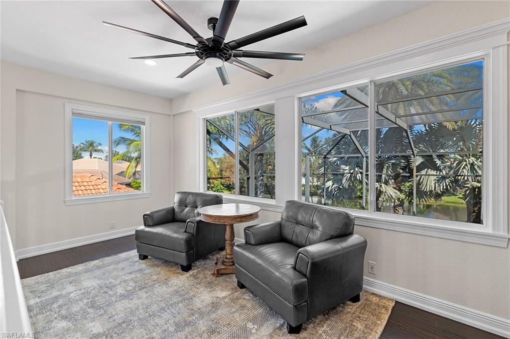 This recently renovated furnished residence in the sought-after Lely Resort offers 3,100 square feet of elegant living space with four bedrooms and three full baths. Designed for both daily comfort and sophisticated entertaining, the home features an expansive kitchen anchored by a 20-foot island, granite countertops, custom cabinetry, a gas cooktop, high-end stainless steel appliances and a coffee bar with a beverage cooler. A second gathering room provides an additional 8-by-5-foot island, a built-in ice maker, a wine cooler and a secondary dishwasher, creating a seamless setting for hosting. Throughout the home, wood flooring, recessed lighting and two fireplaces add warmth and style. The first-floor bedroom provides convenience and privacy for guests, while the upstairs suites include a spacious primary retreat with a spa-inspired bath. The outdoor living space is enhanced by a soaring screened lanai with paver decking, tongue-and-groove accents, ceiling fans, and privacy screens. Overlooking the peaceful lake, the heated pool offers a tranquil backdrop for relaxation. Other key updates include impact windows and doors, a whole-home generator, a buried propane gas tank, a whole-home water filtration system, custom garage cabinet organization and much more! Residents may also take advantage of optional membership at the award-winning Players Club and Spa, which includes resort-style pools, a fitness center, dining venues, tennis, pickleball, and more. Lely Resort also offers three championship golf courses. The home is minutes from the beaches of Naples and Marco Island as well as the cultural and dining attractions of Fifth Avenue South.